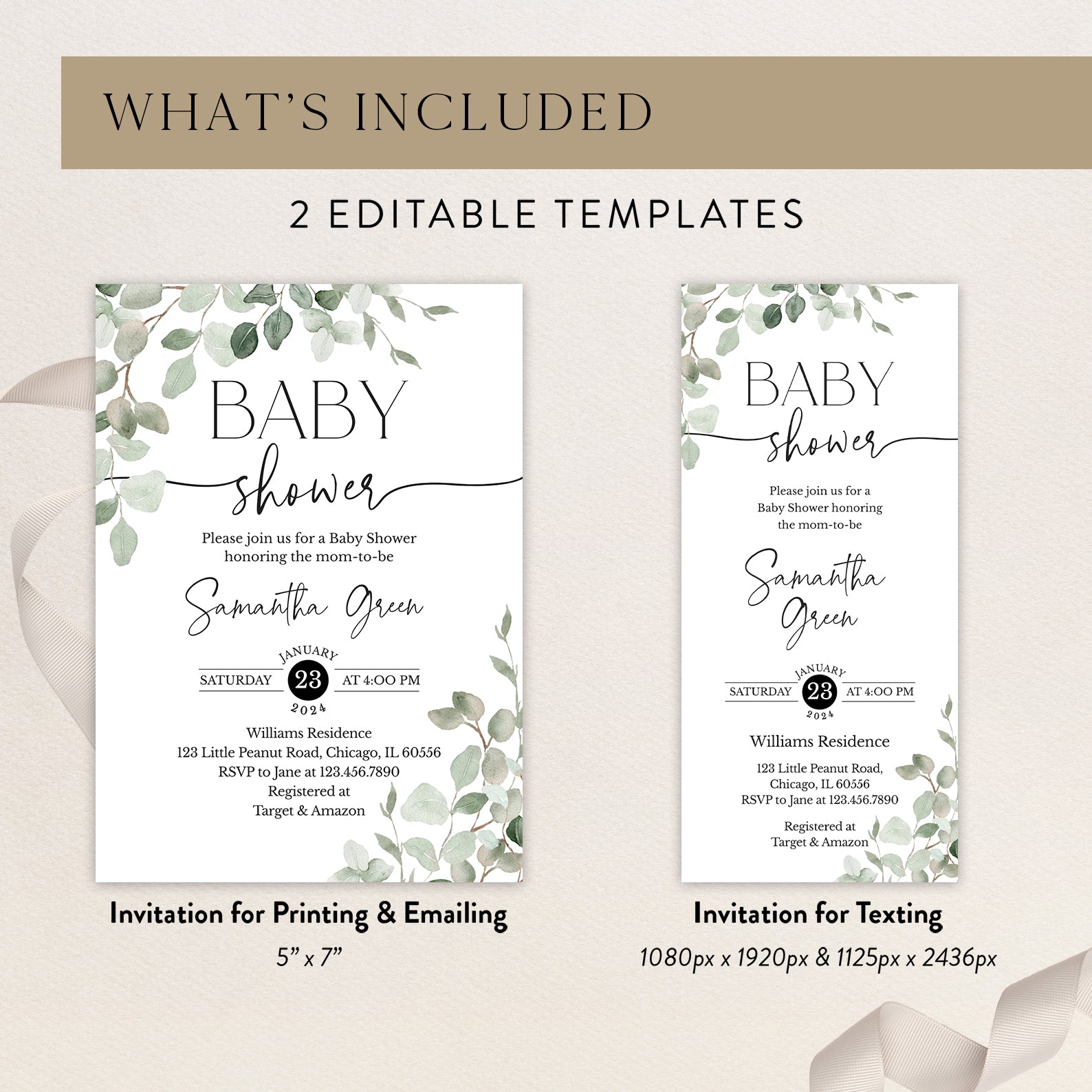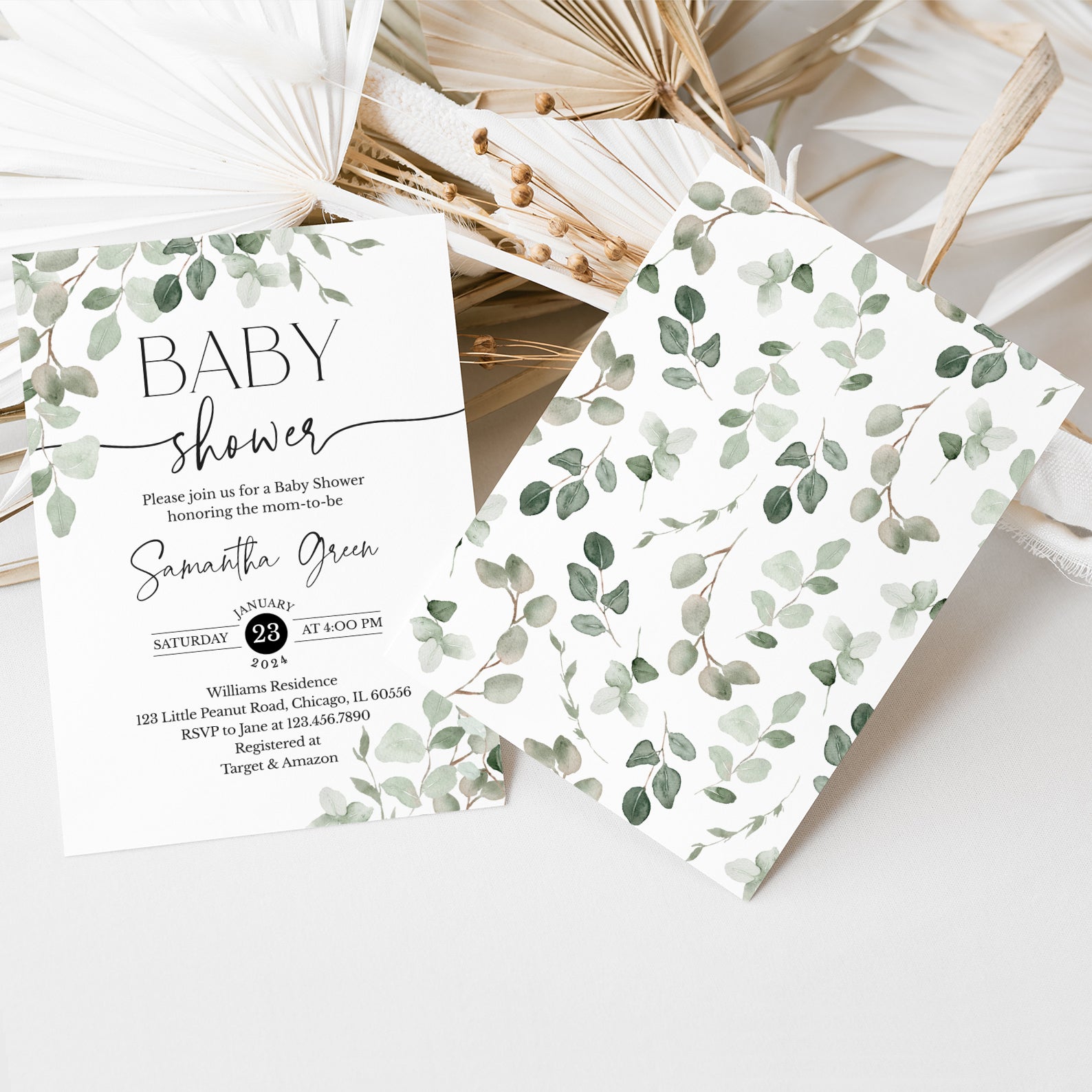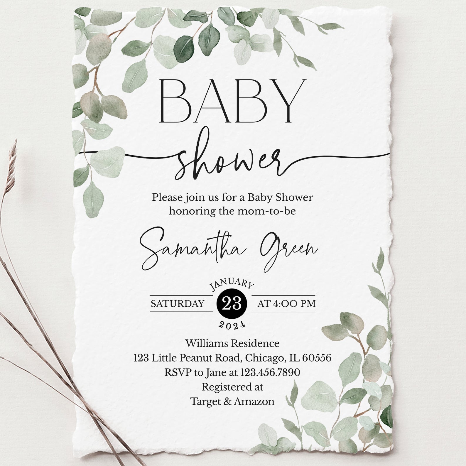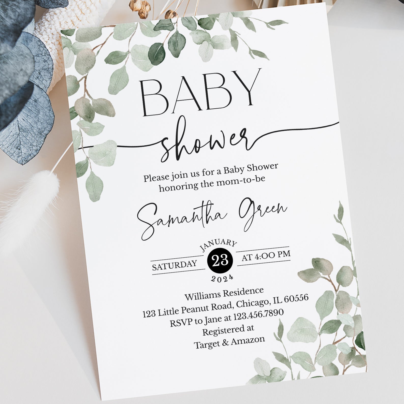 - Purchase this Greenery Baby Shower Invitation: Elegant Leaf Design template