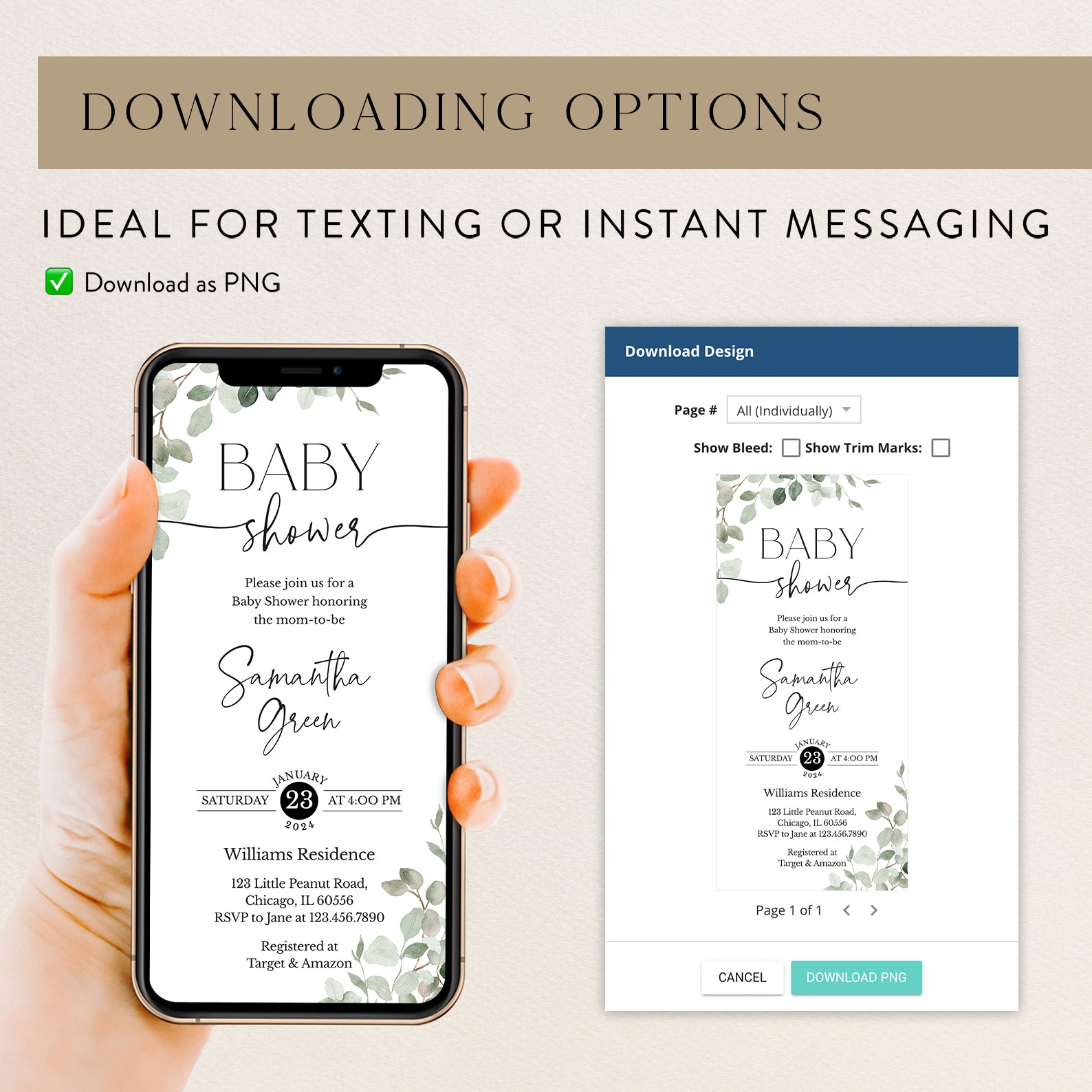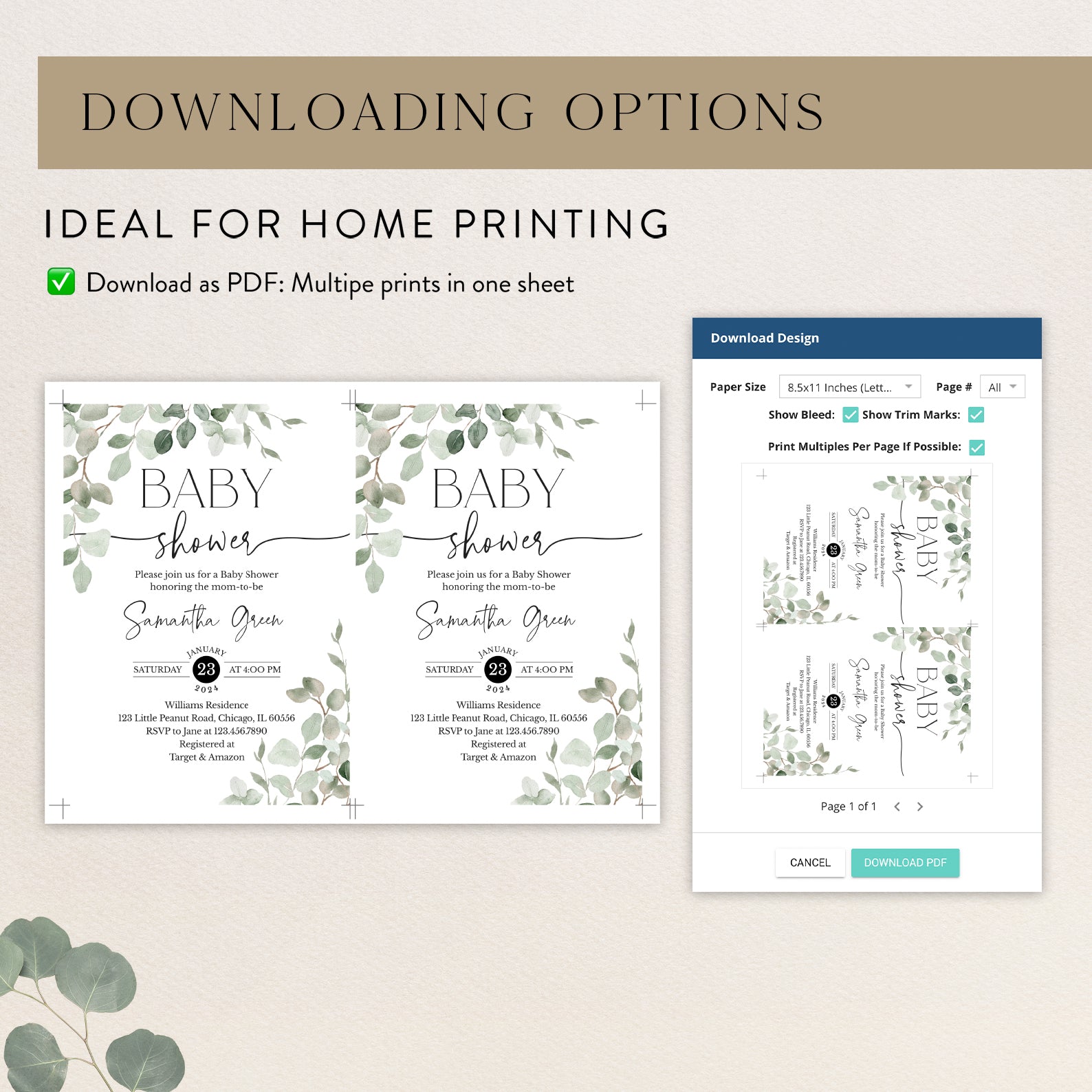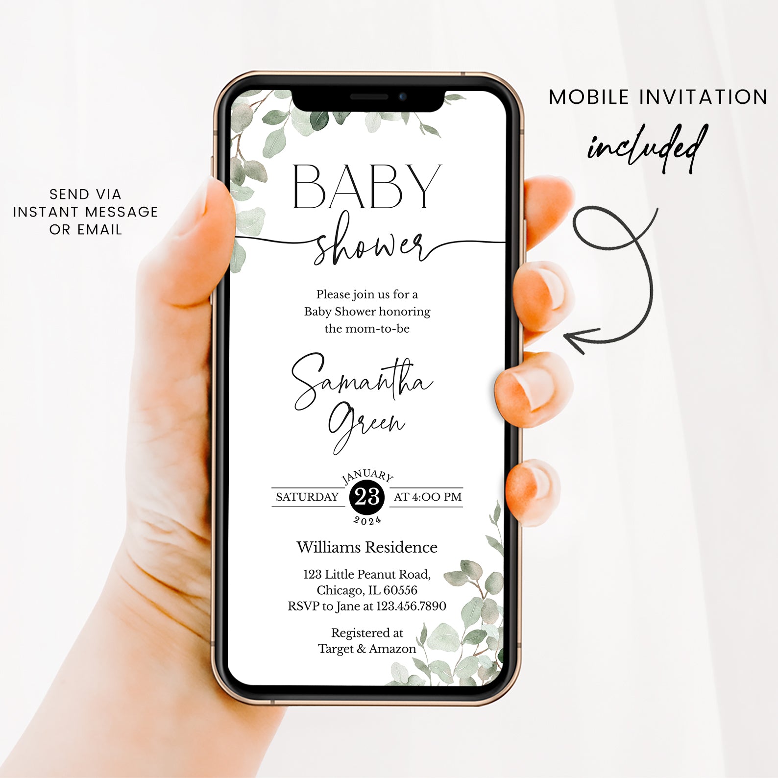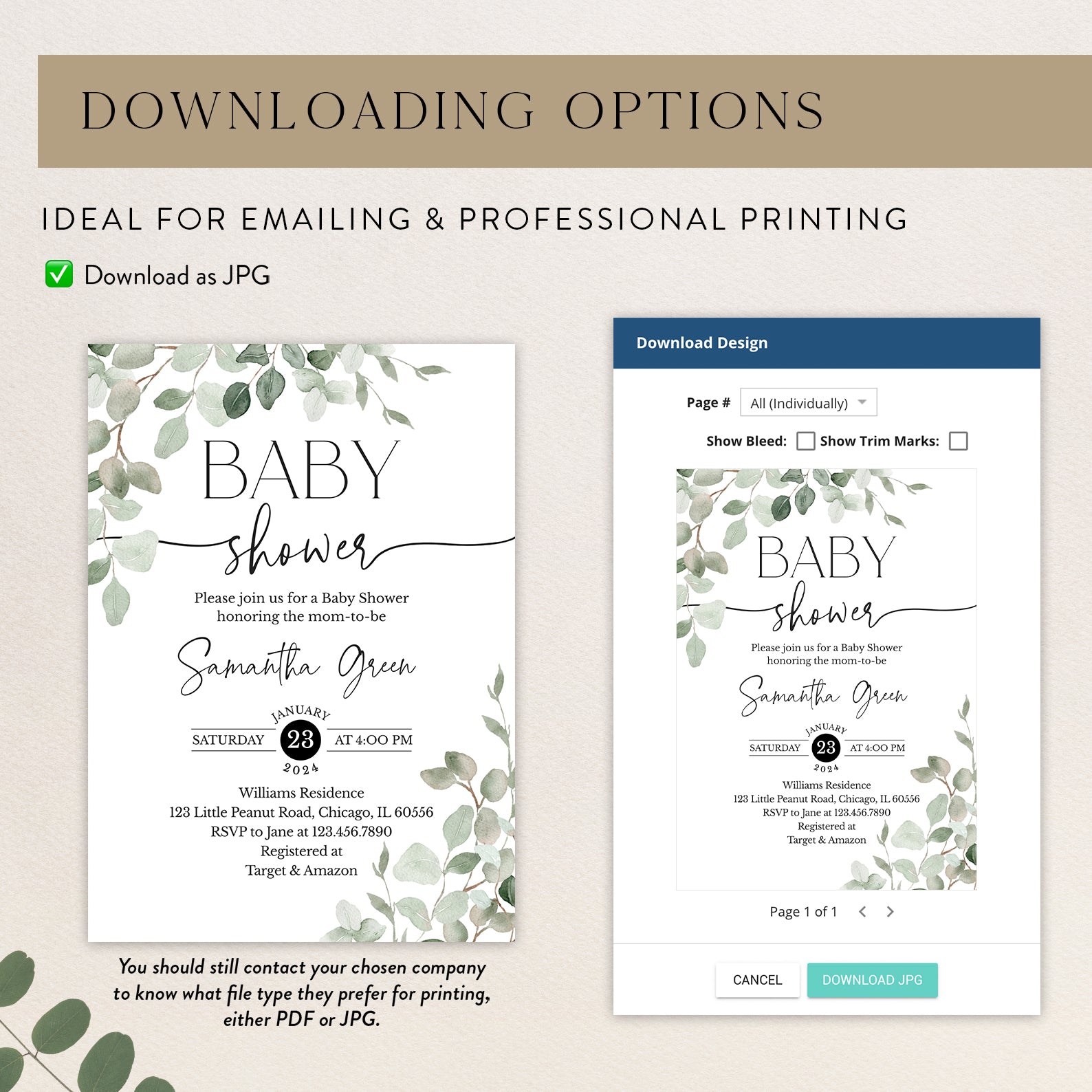 - Purchase this Greenery Baby Shower Invitation: Elegant Leaf Design template