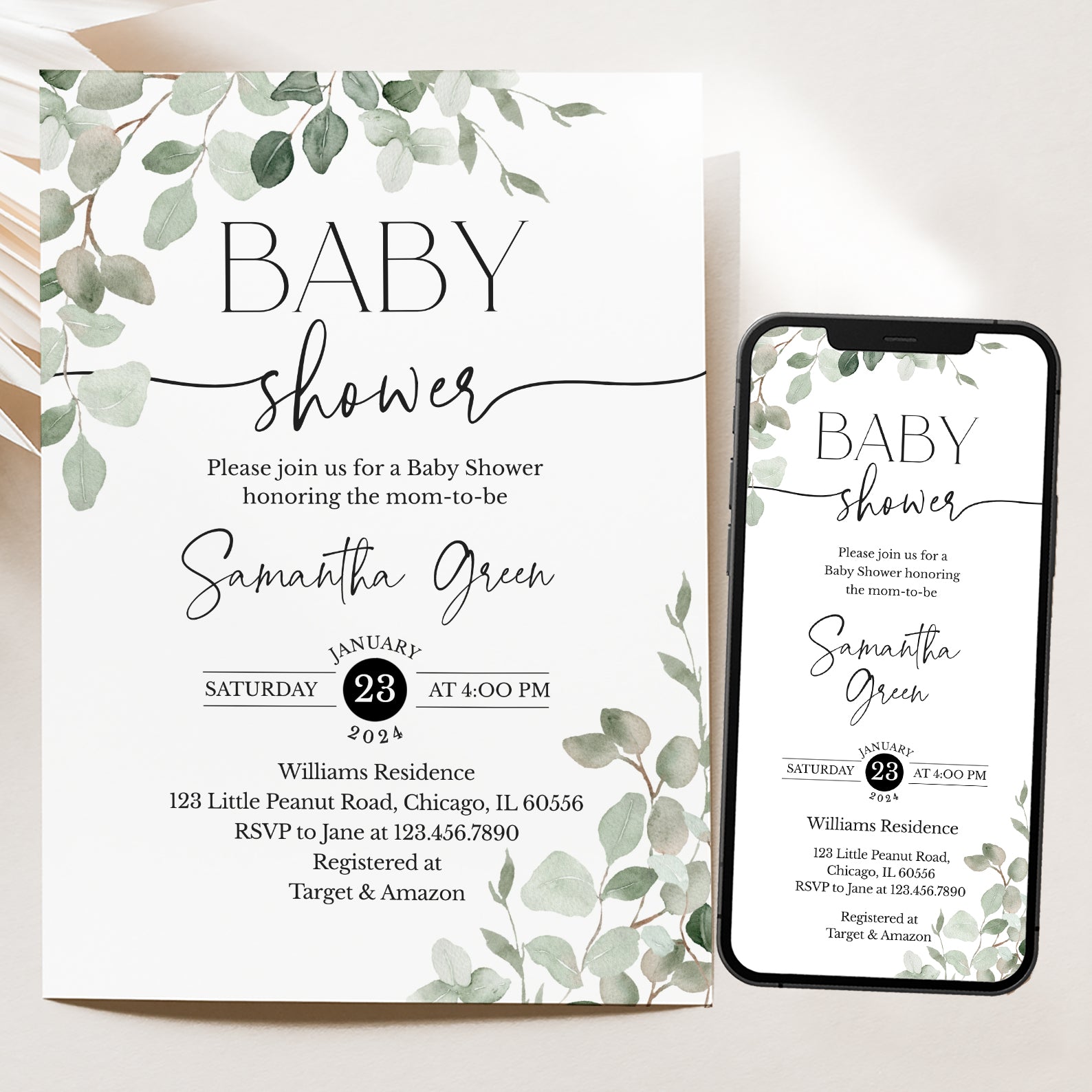 Greenery Baby Shower Invitation: Elegant Leaf Design