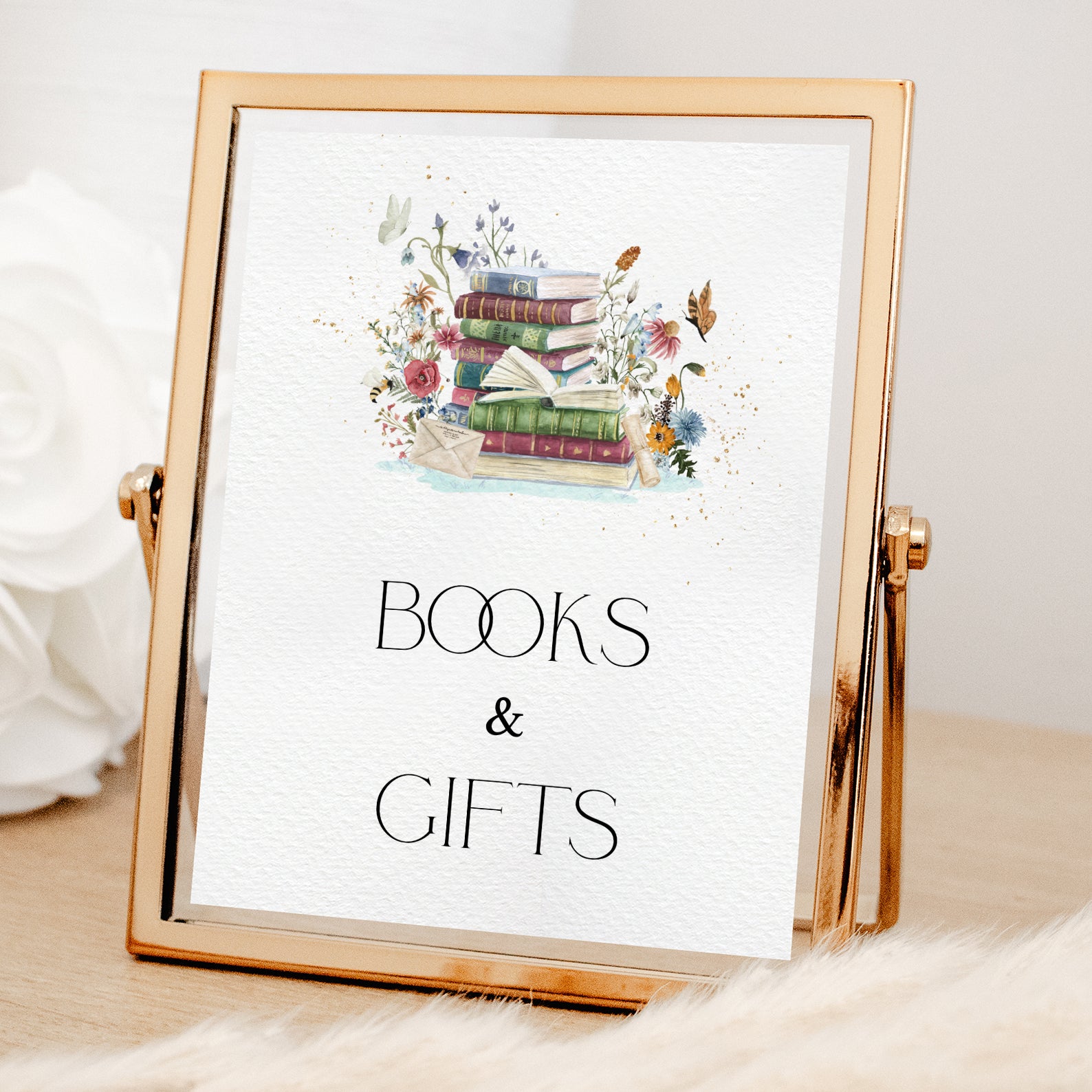 - Purchase this Minimalist Baby Shower Table Sign Books & Wildflowers Theme template