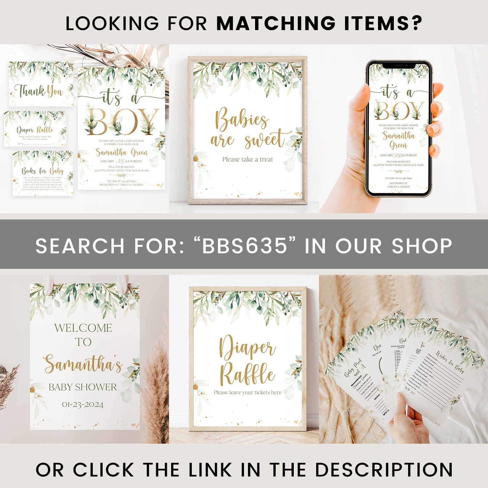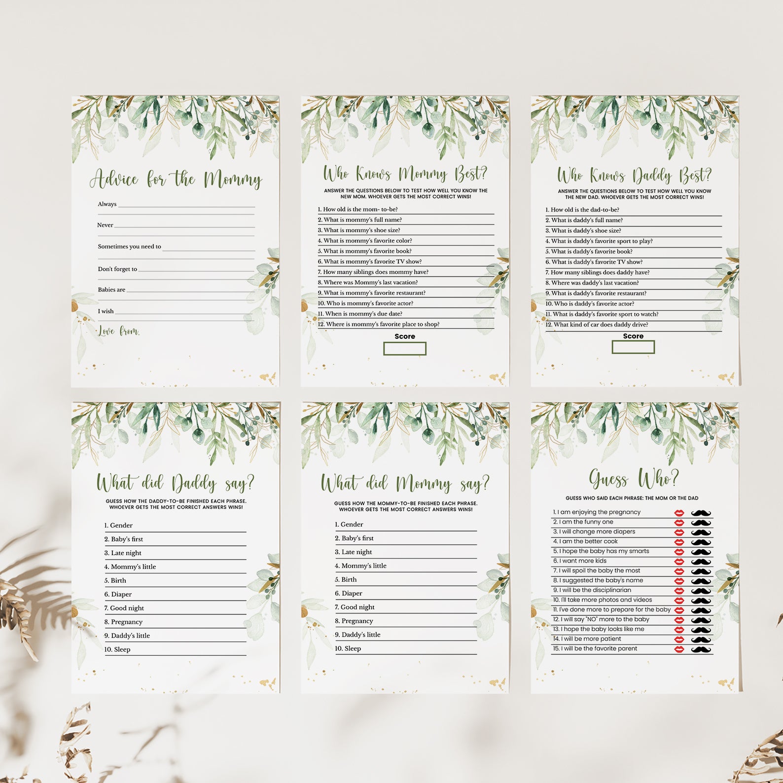 - Purchase this Stylish Green & Gold It’s a Boy Baby Shower Game Bundle template