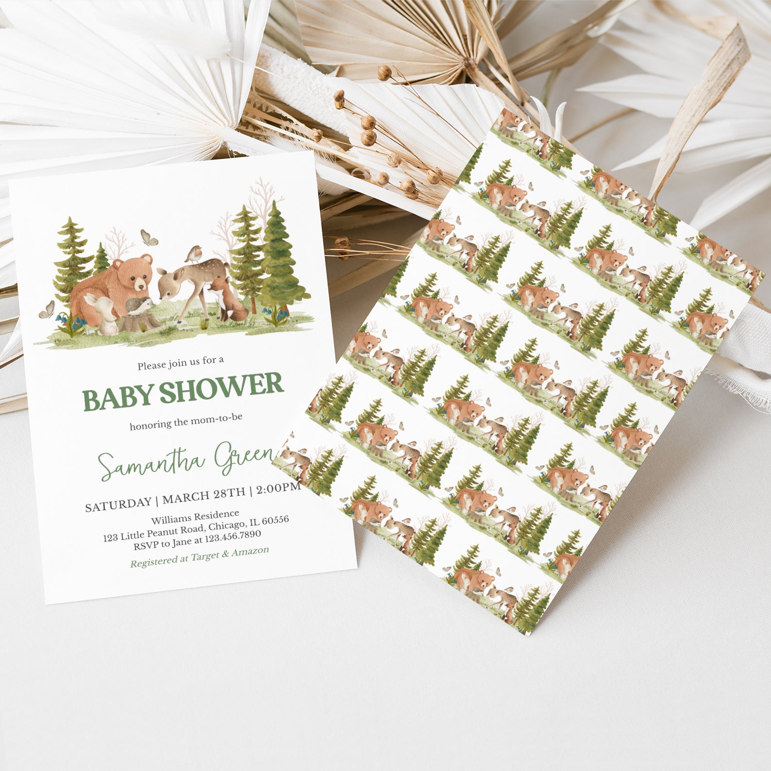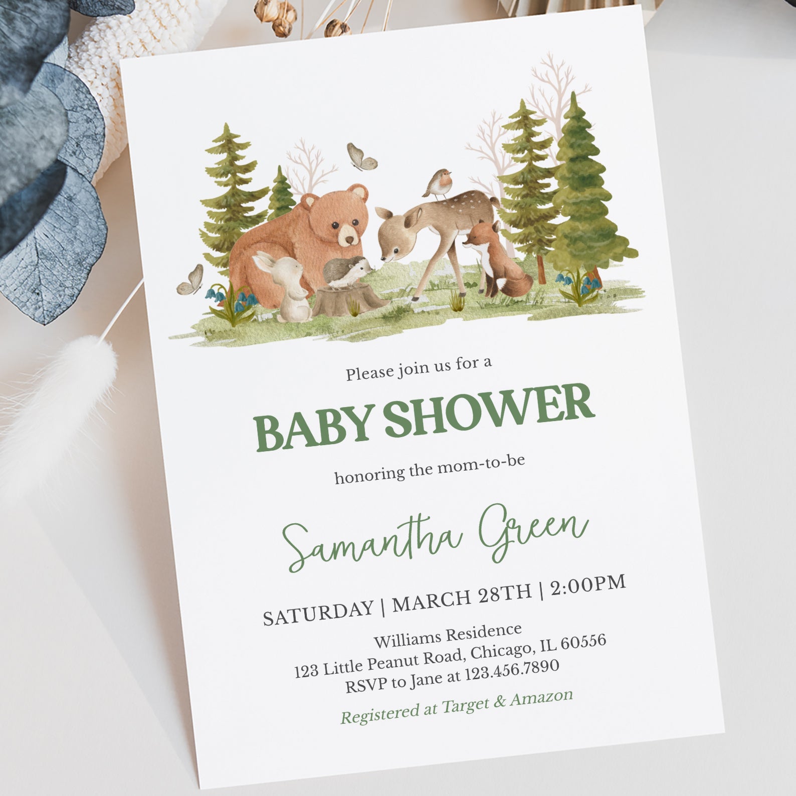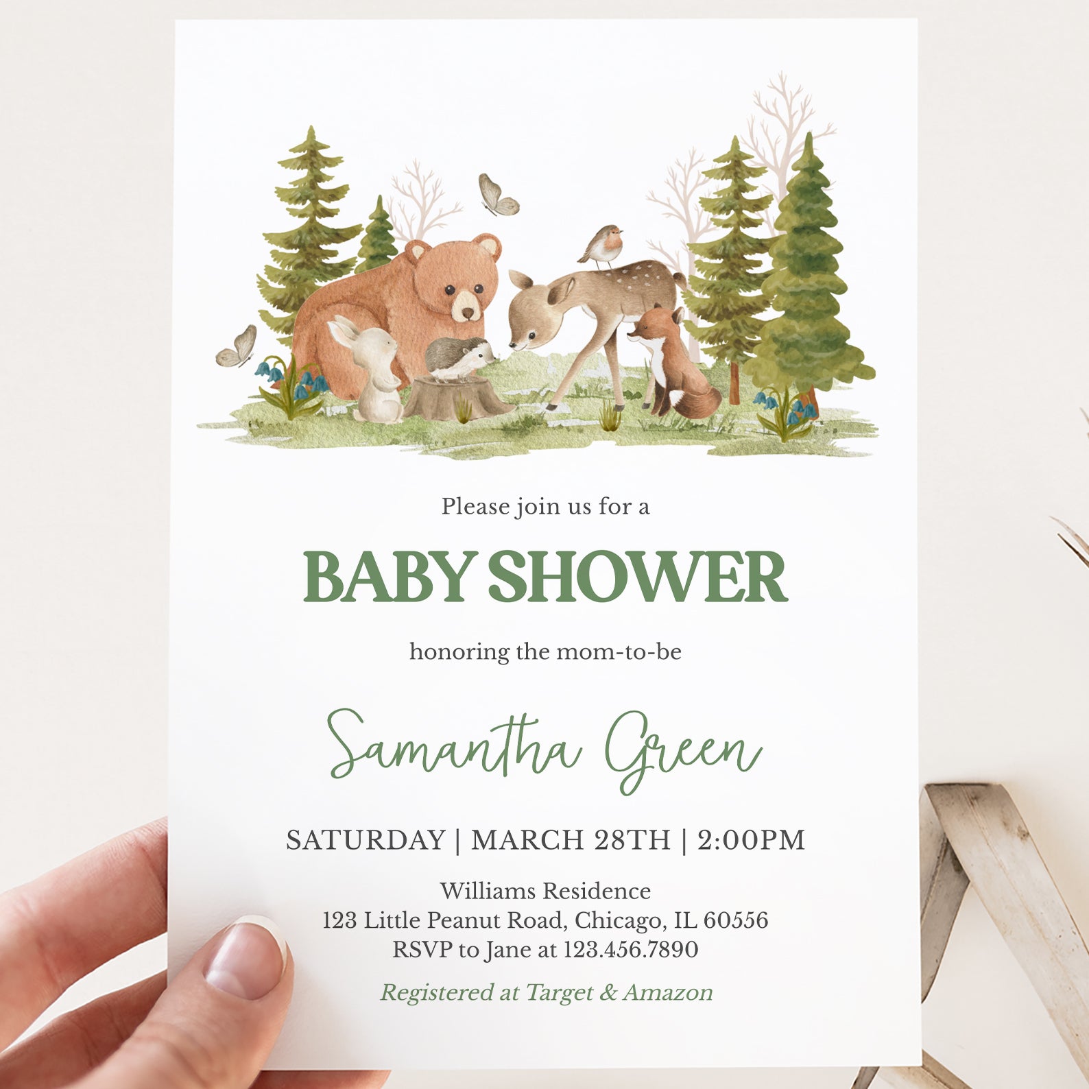- Purchase this Woodland Baby Shower Invitation with Cute Forest Animals template