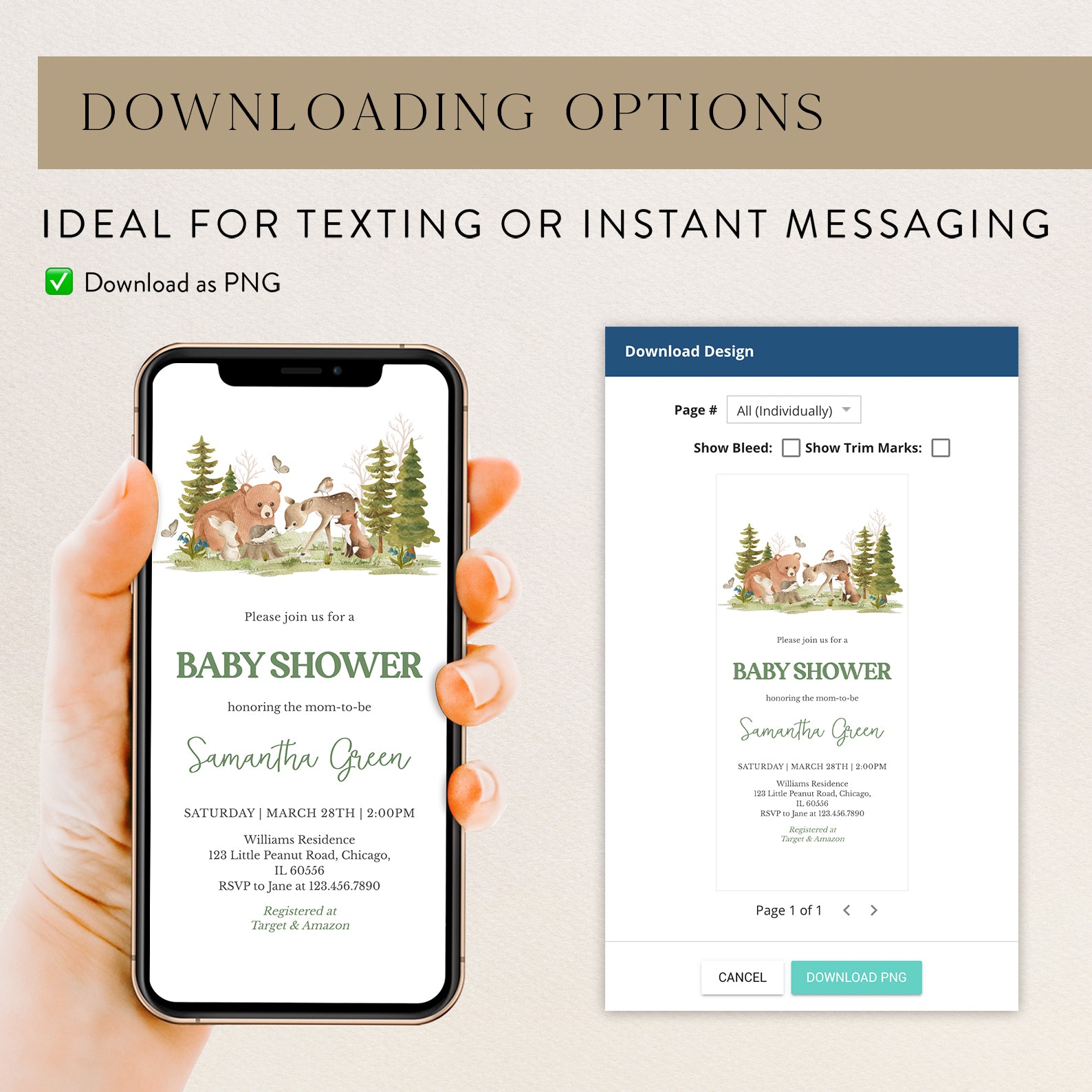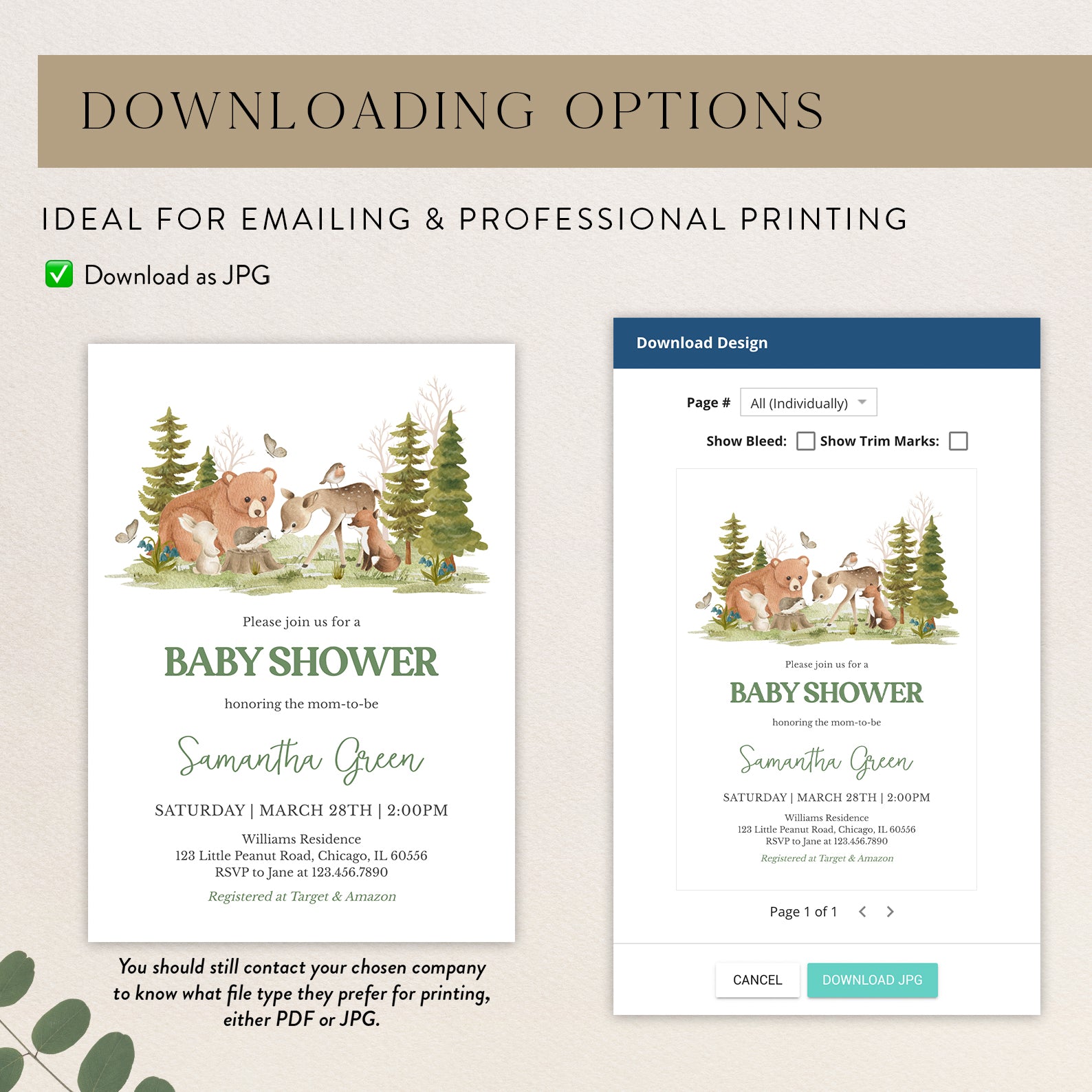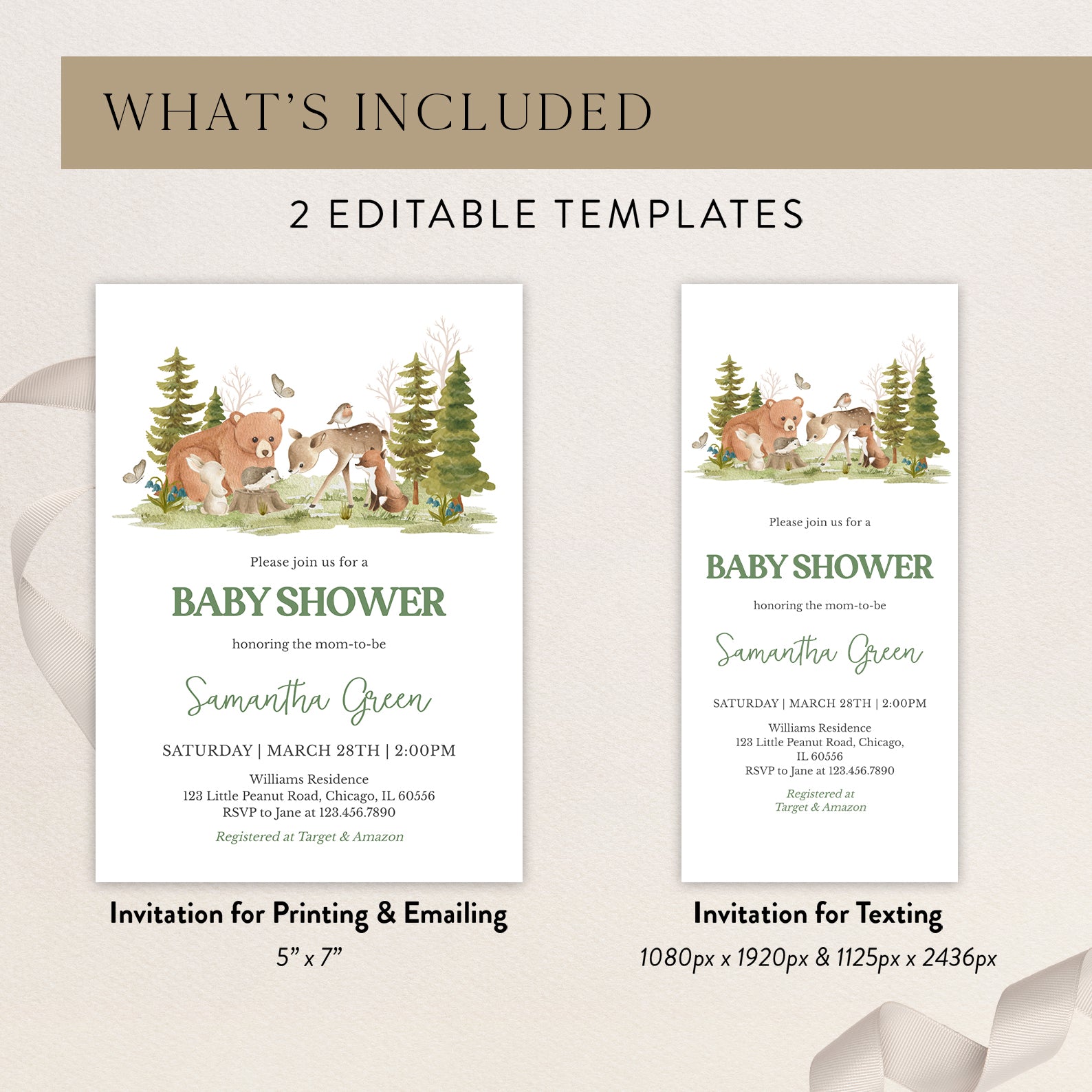 - Purchase this Woodland Baby Shower Invitation with Cute Forest Animals template