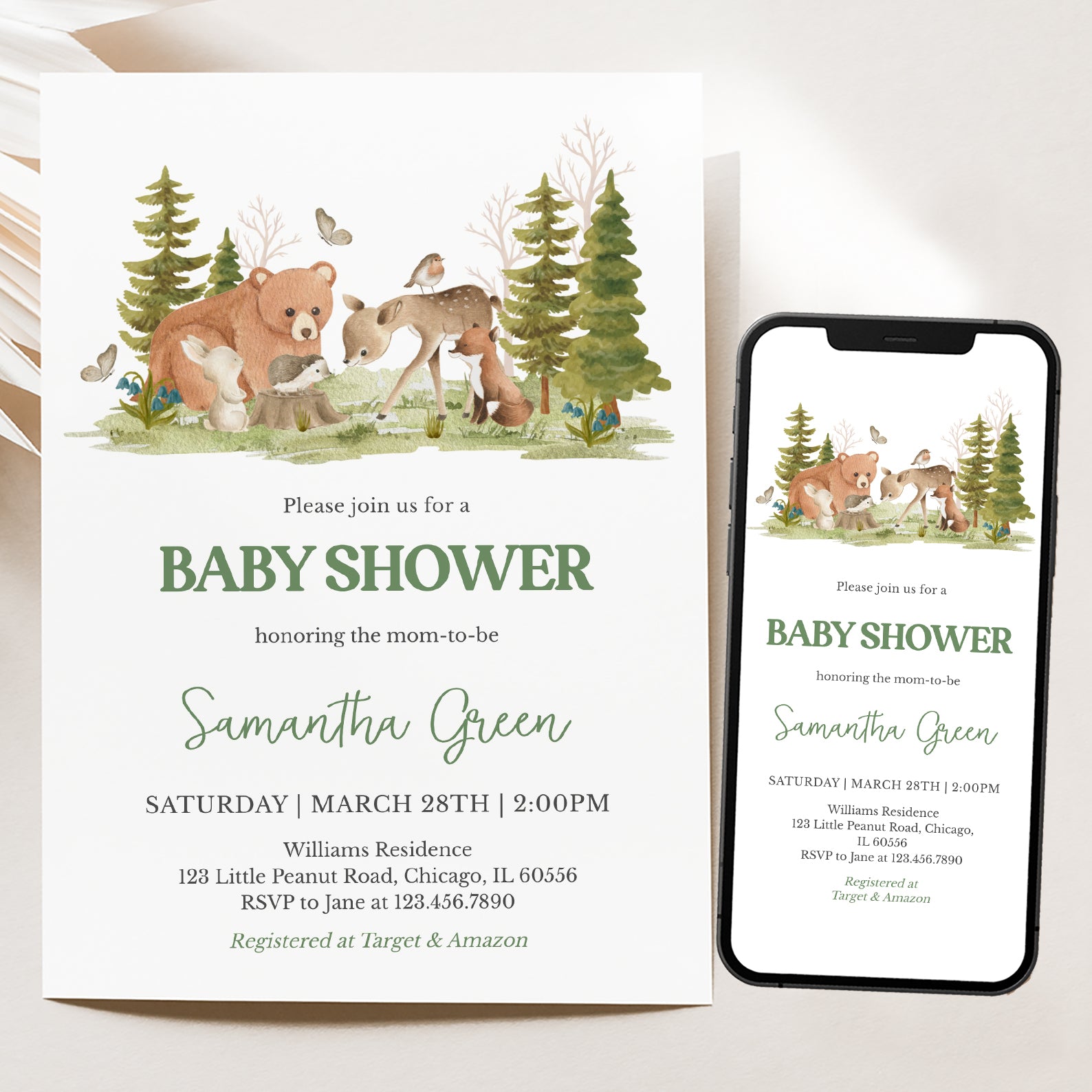 Woodland Baby Shower Invitation with Cute Forest Animals