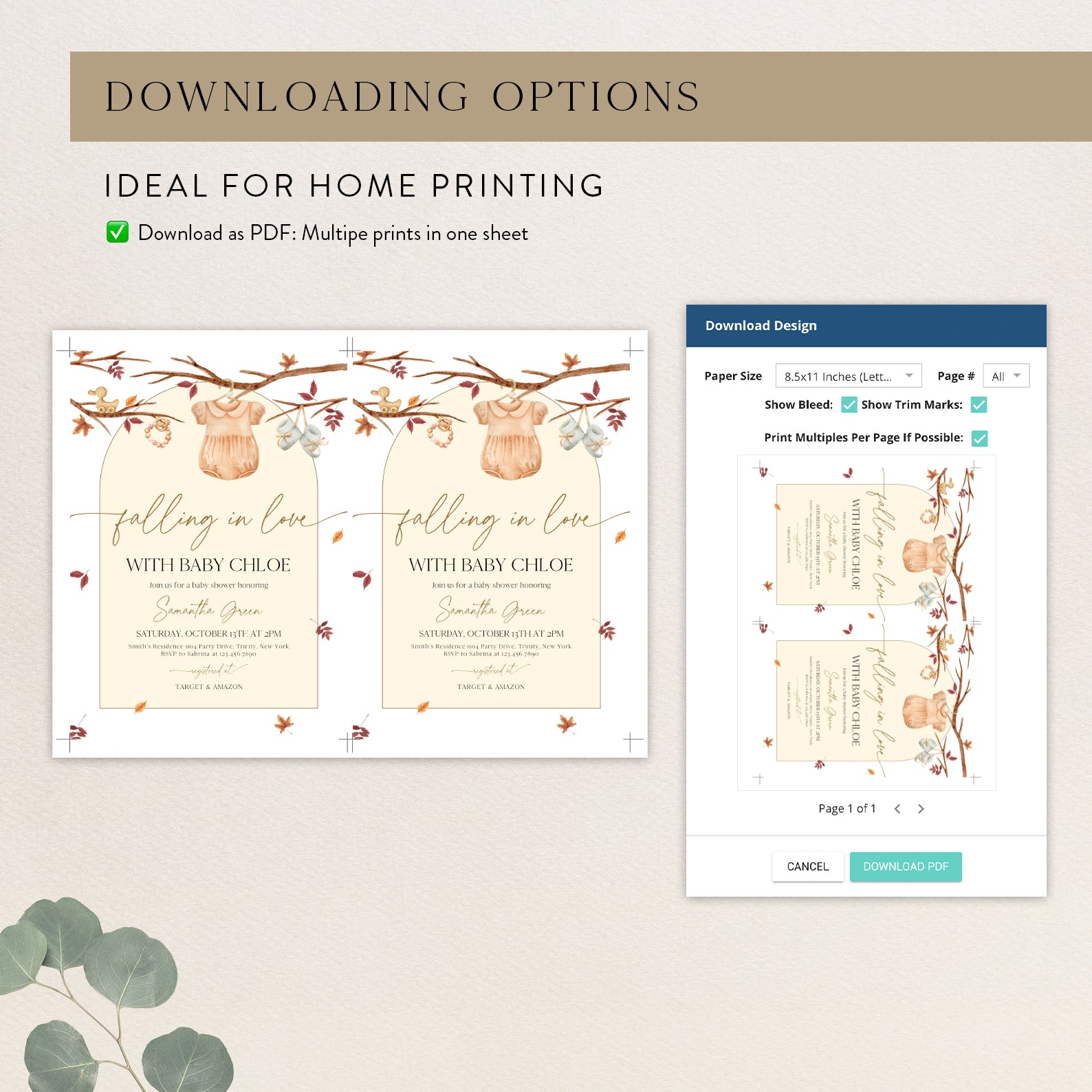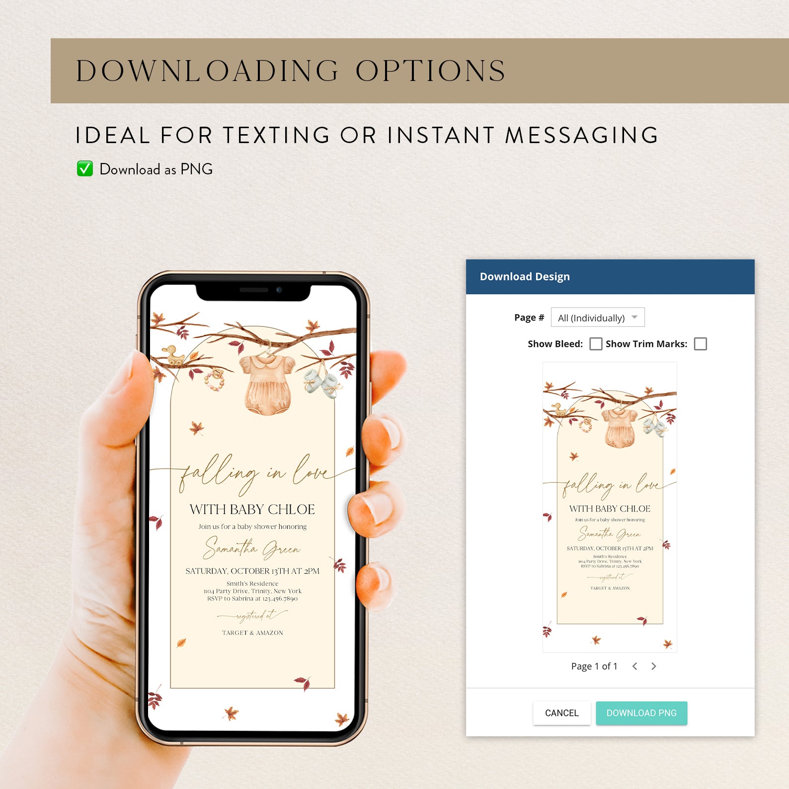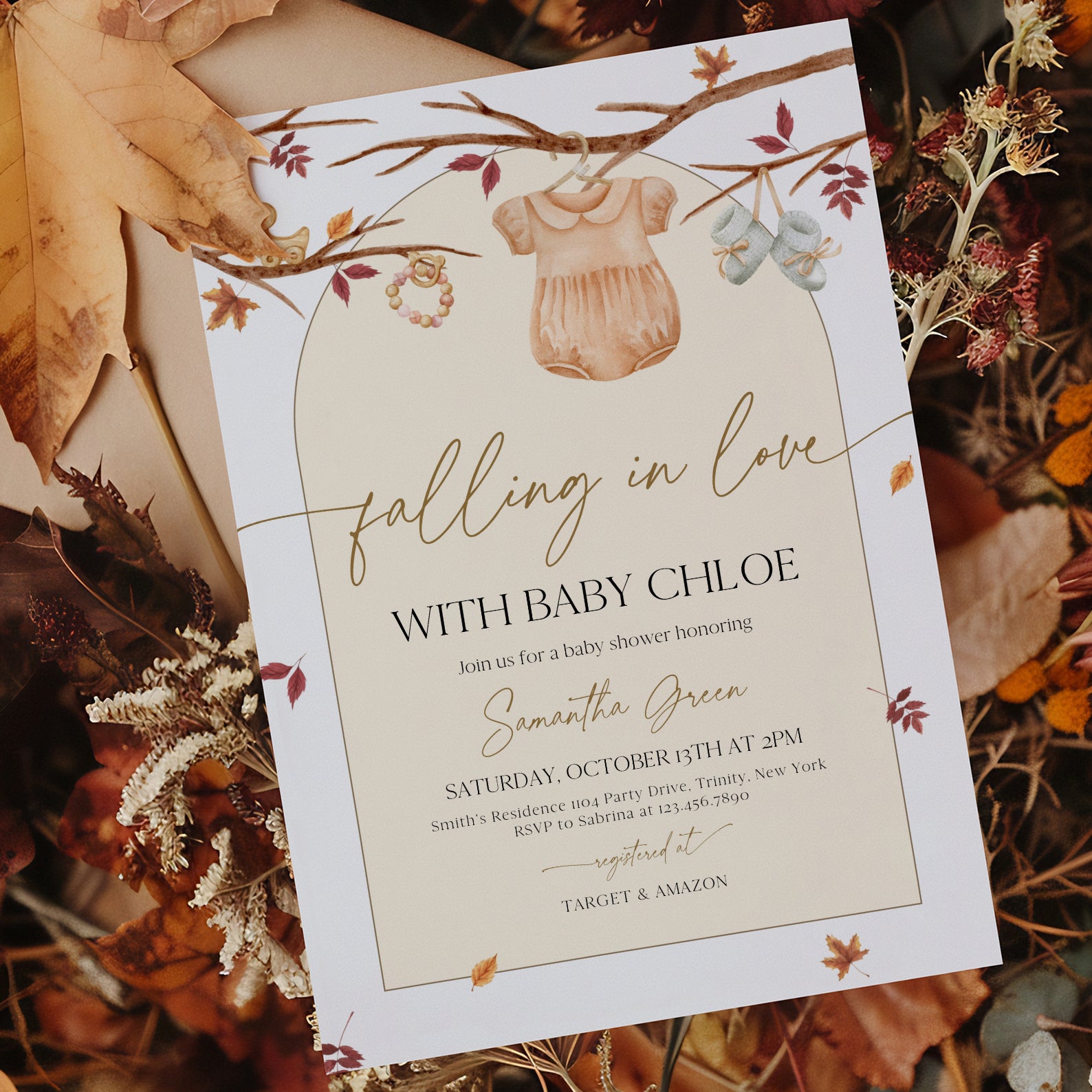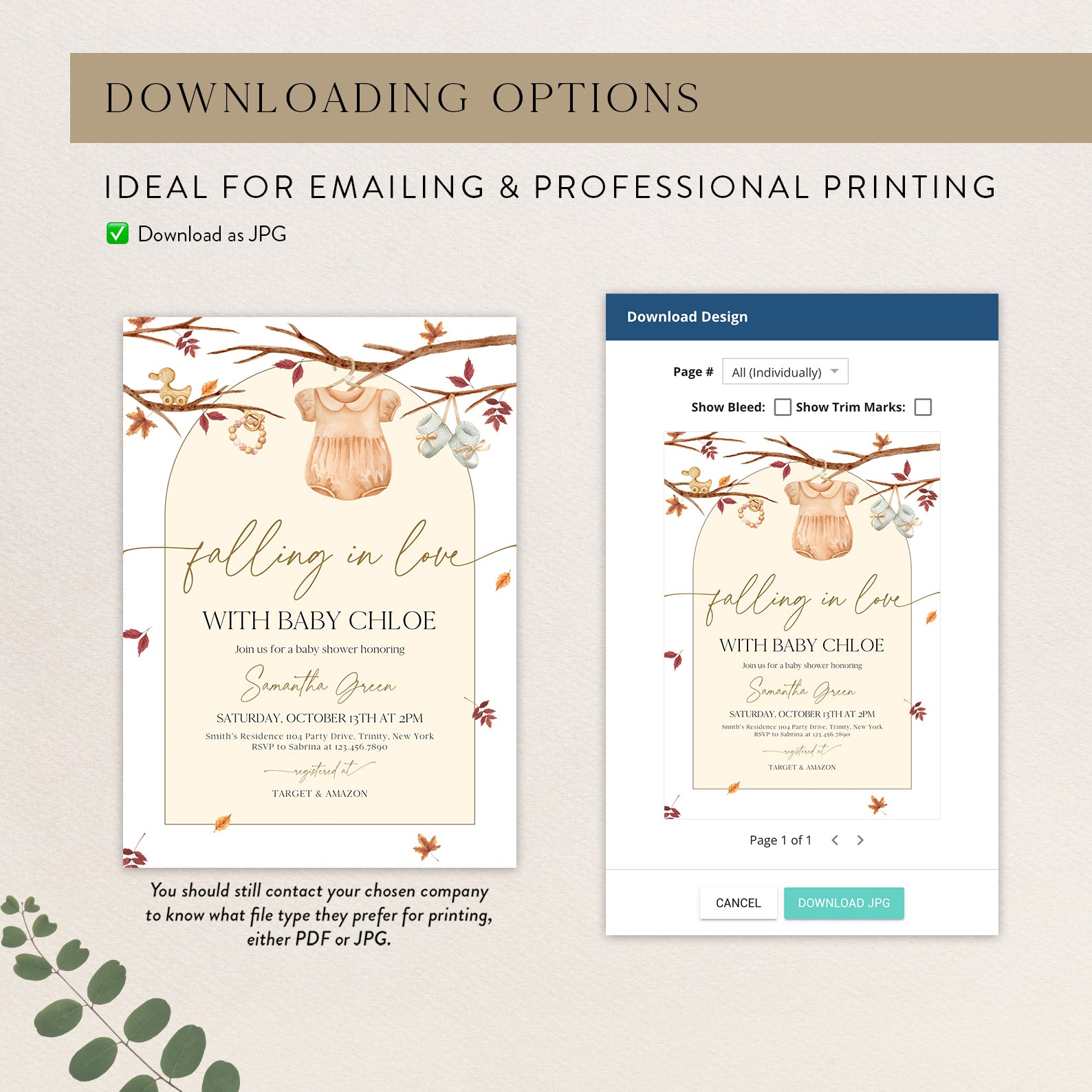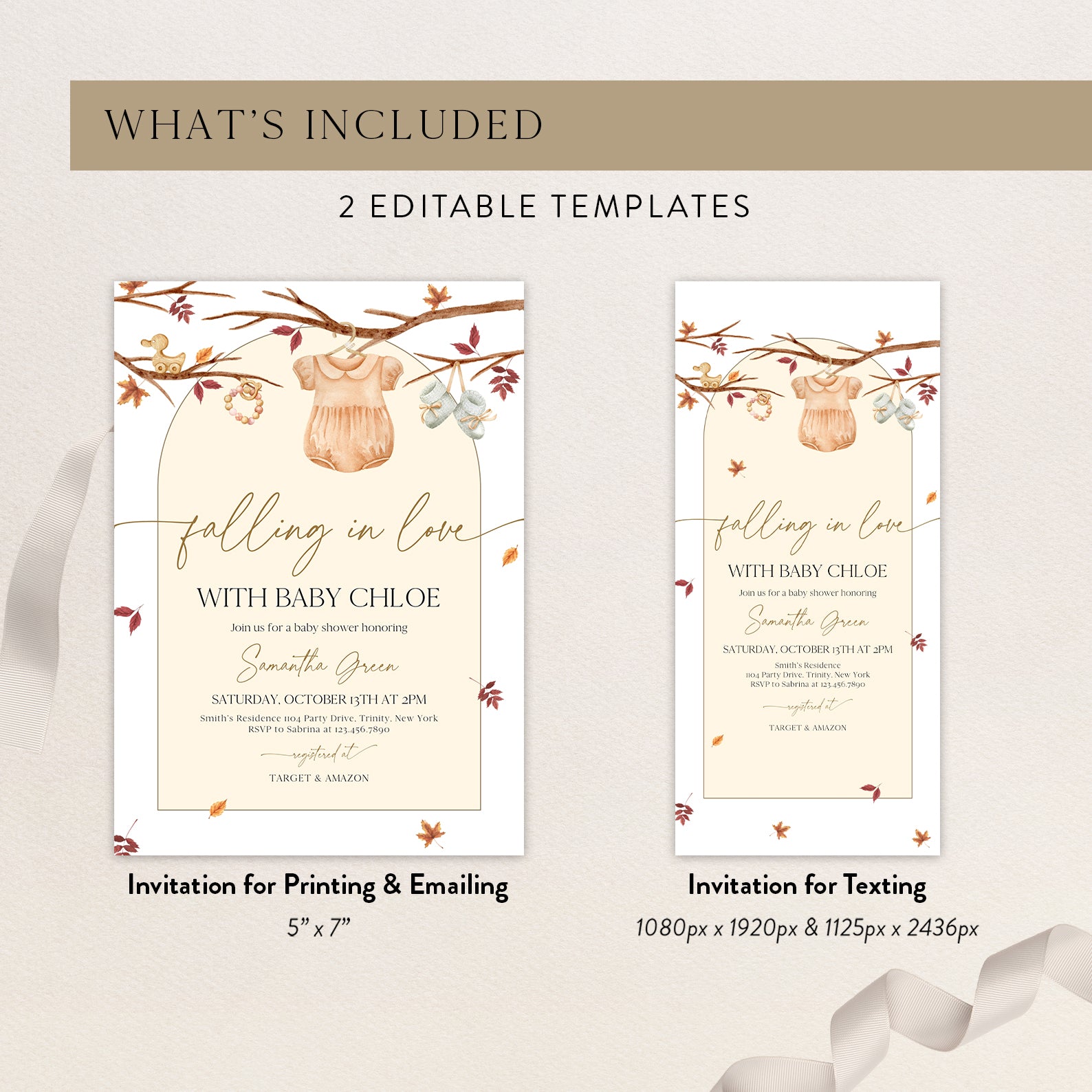 - Purchase this Fall Baby Shower Invite: Orange Baby Dress & Leaves template