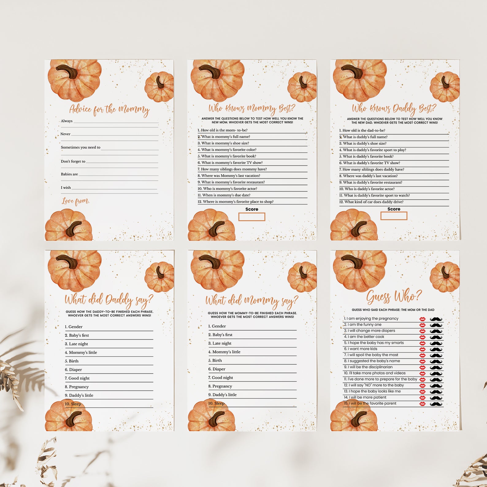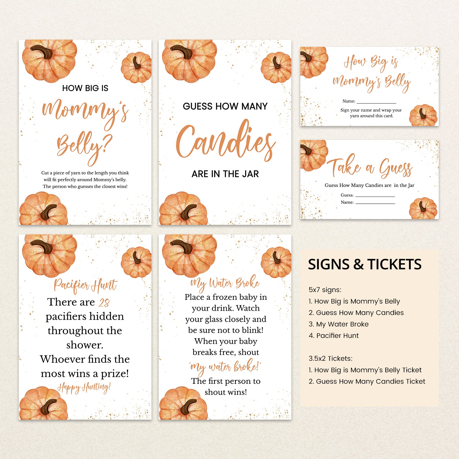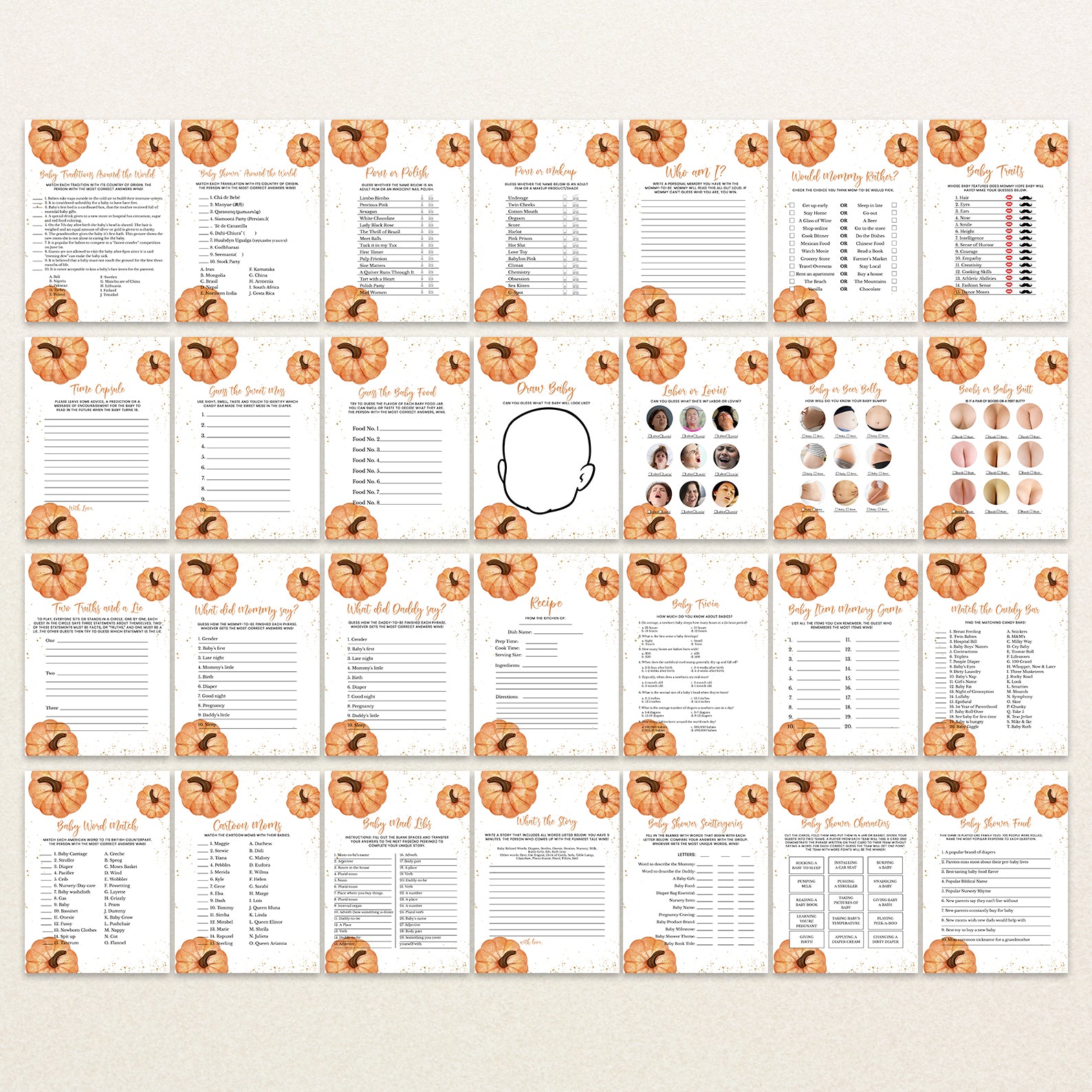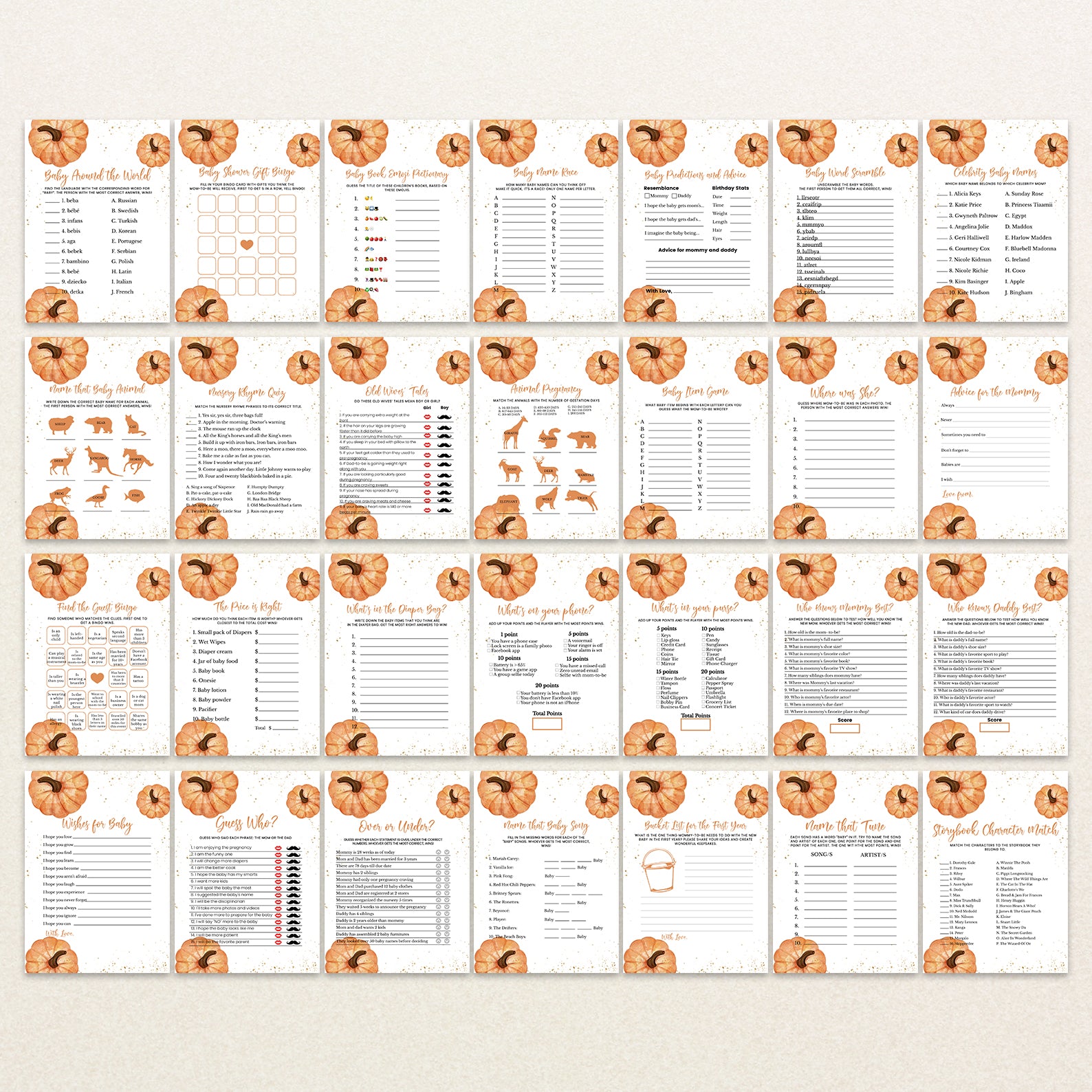 - Purchase this A Little Pumpkin Fall Baby Shower Game Bundle with Gold & Pumpkins template