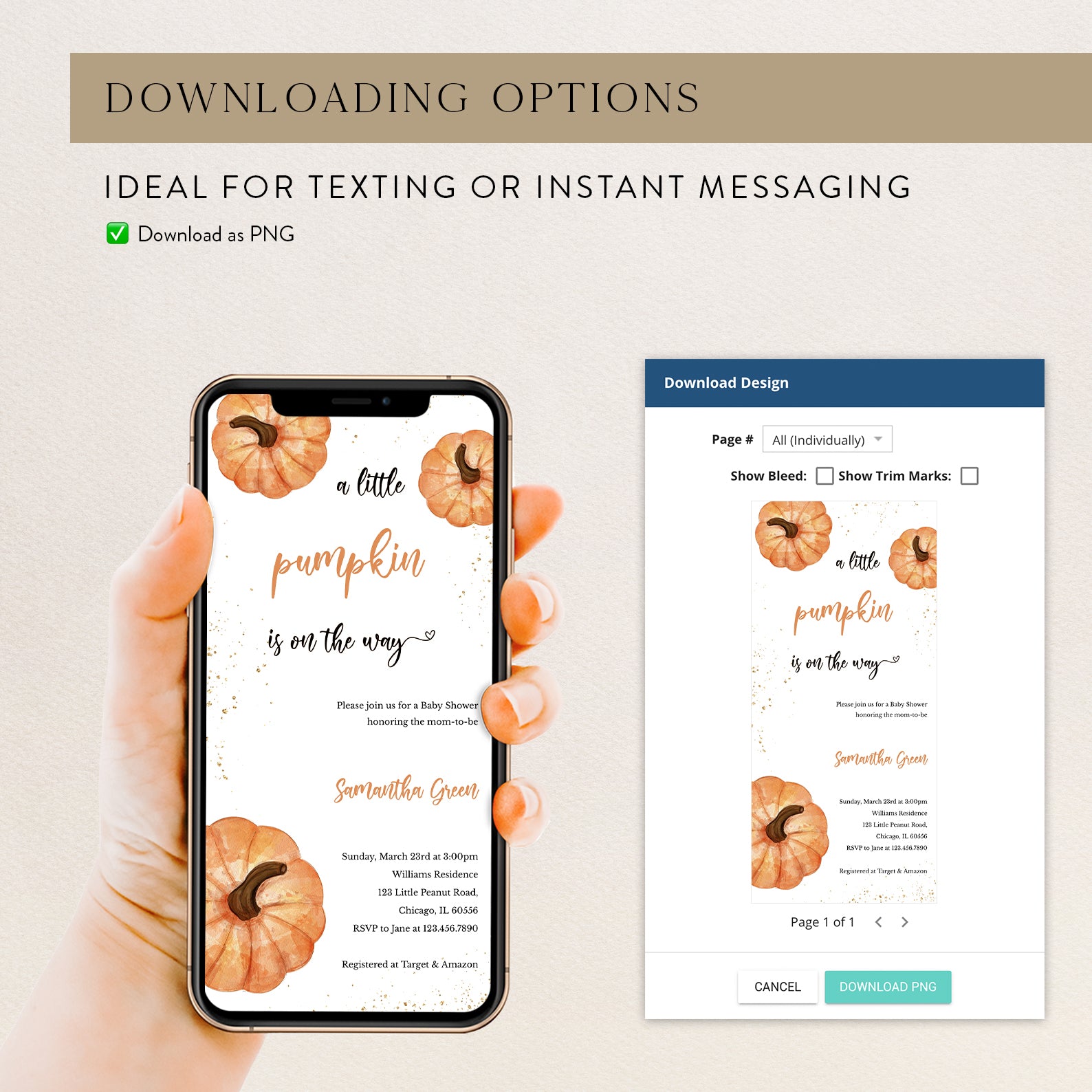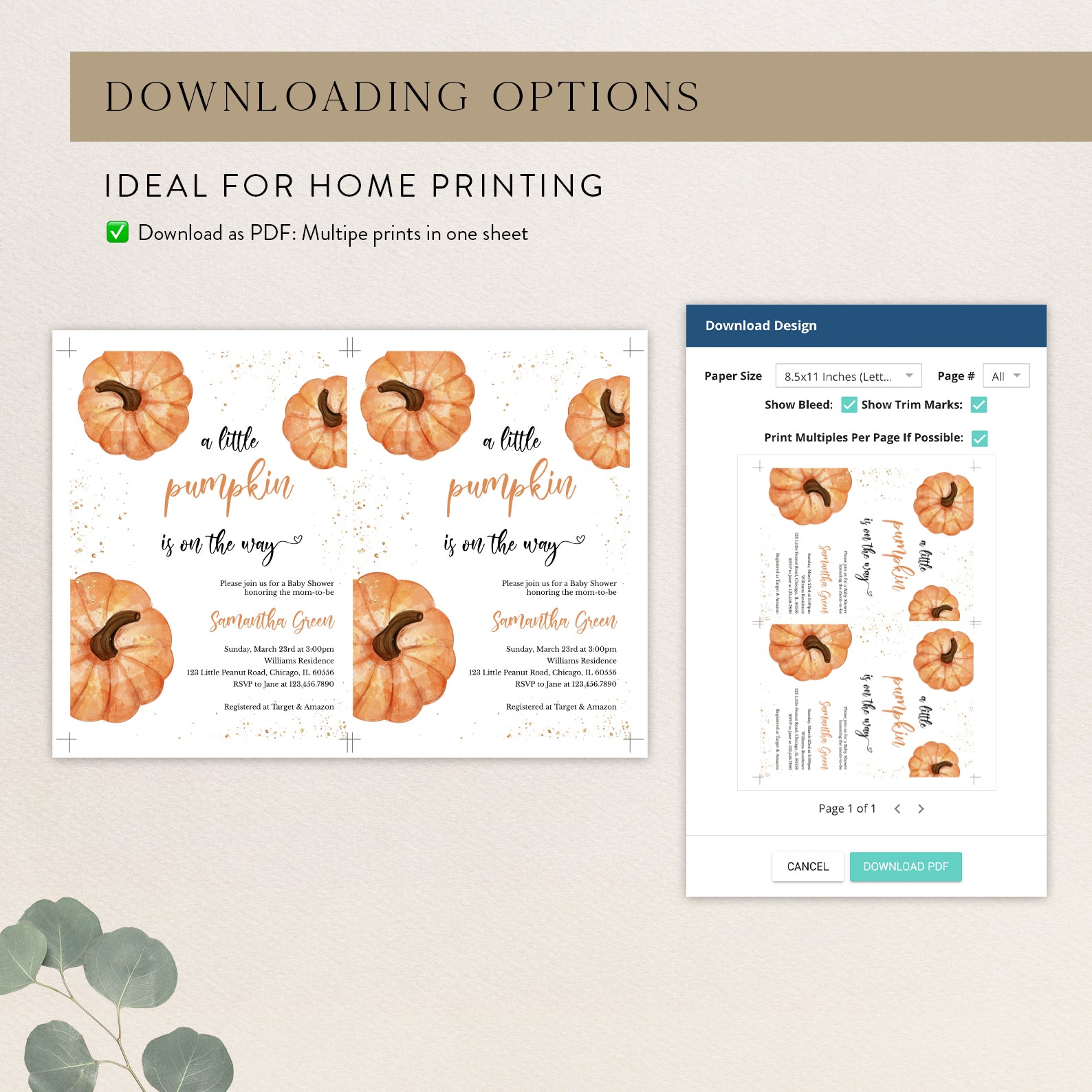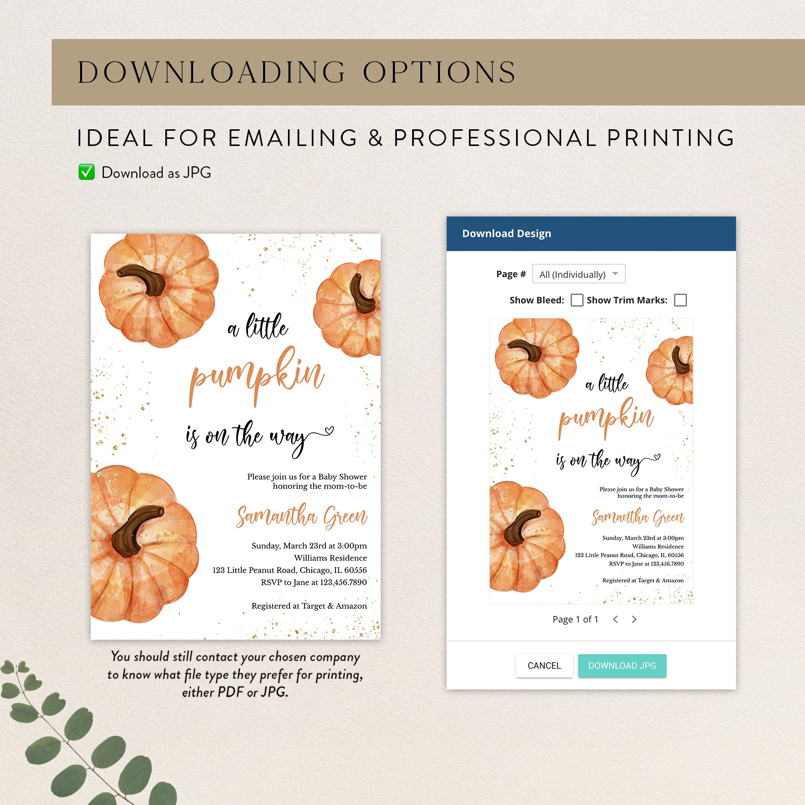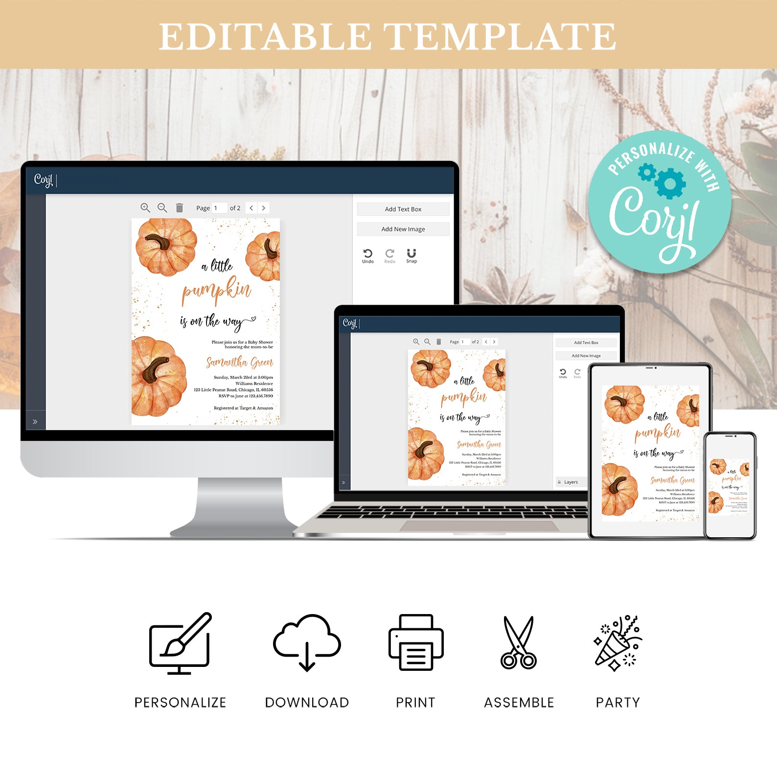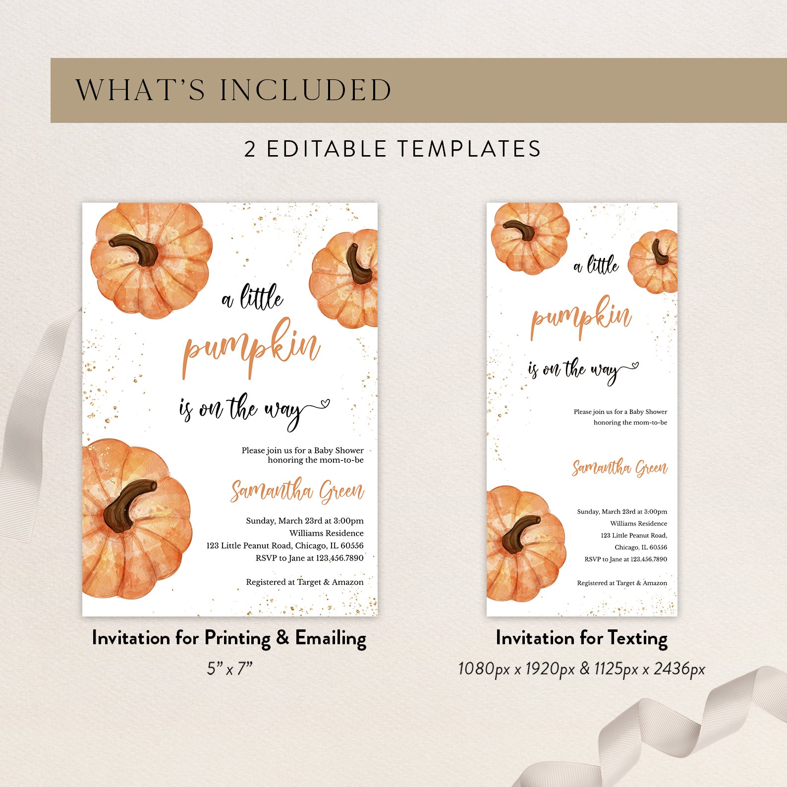 1. Purchase this A Little Pumpkin Fall Baby Shower Invite with Gold & Pumpkins template