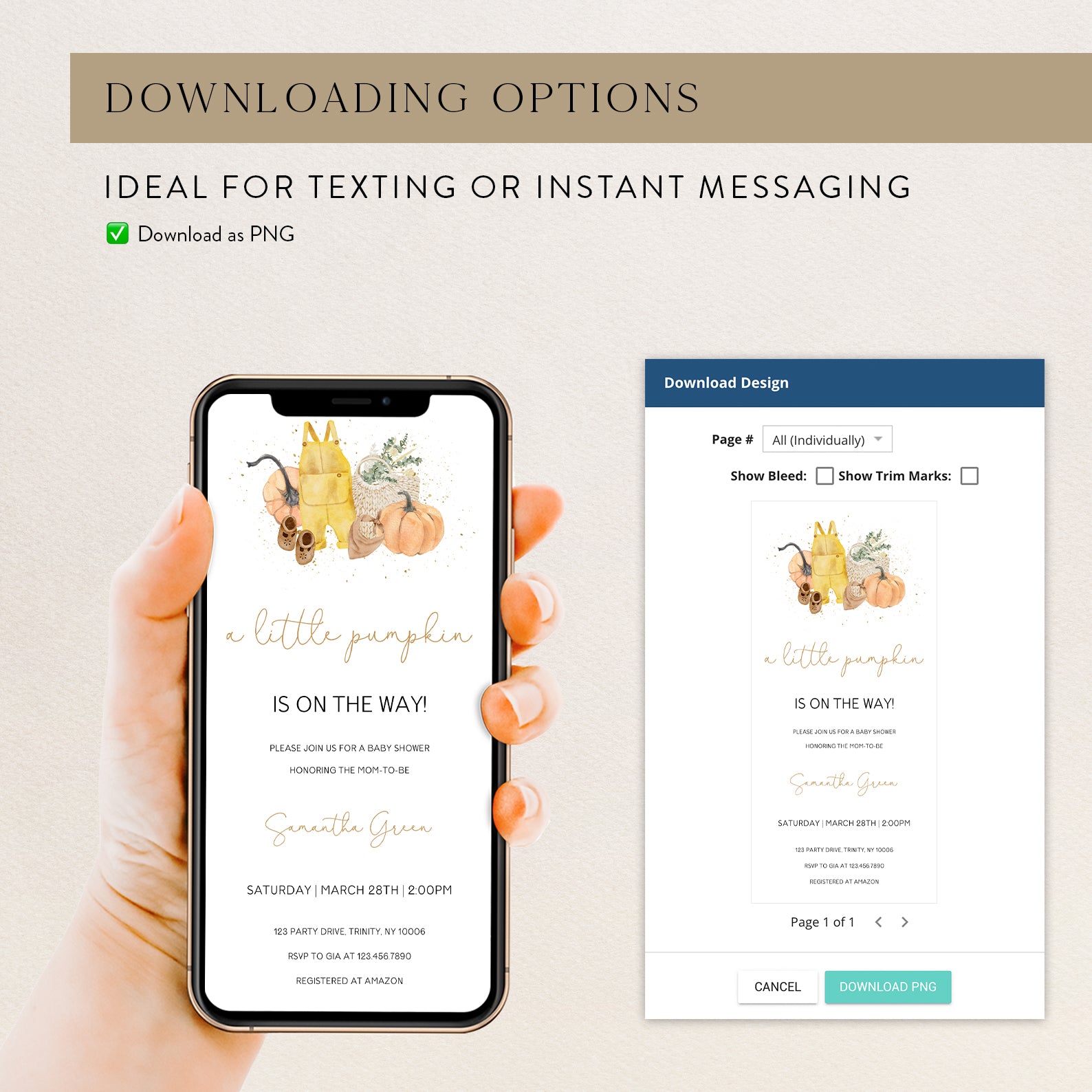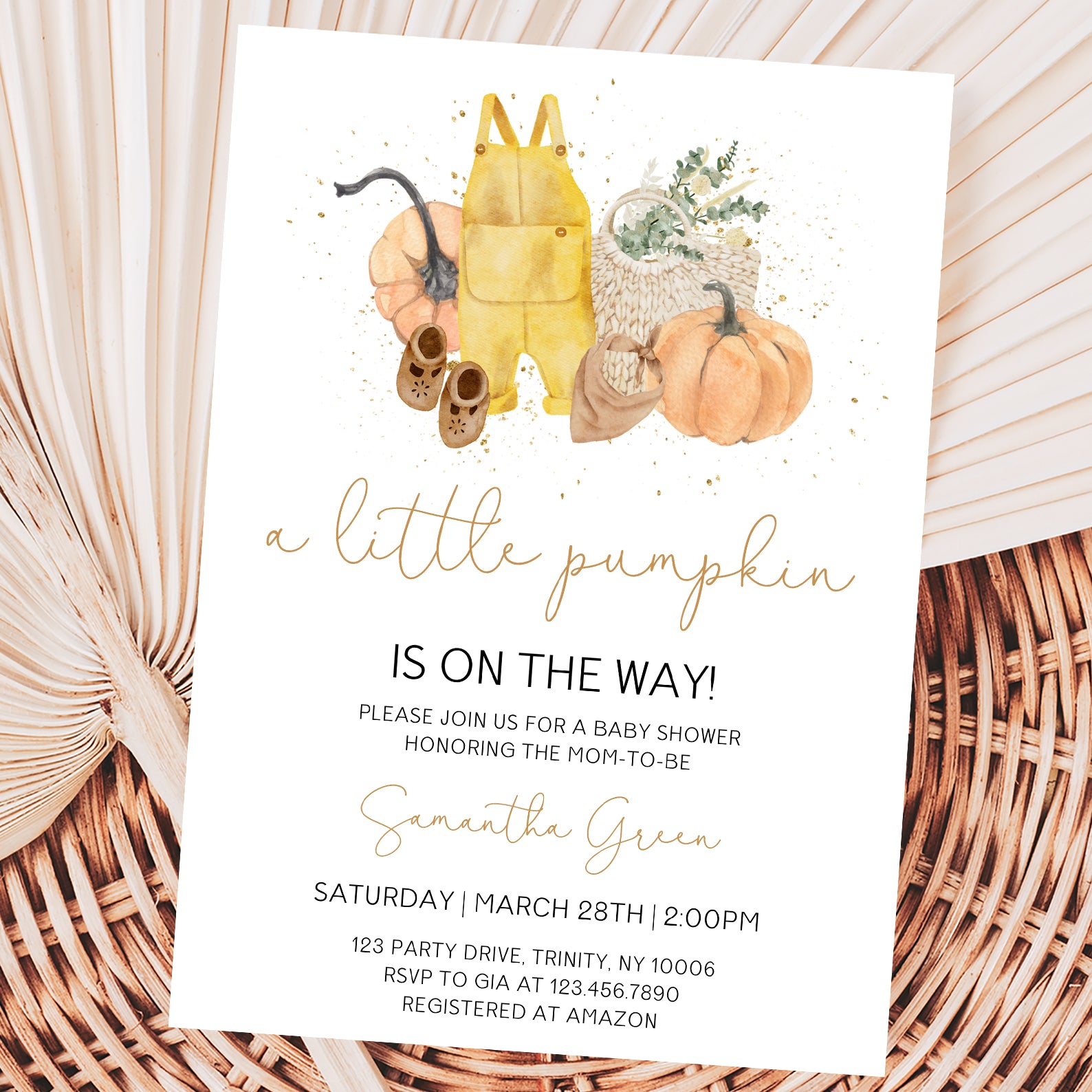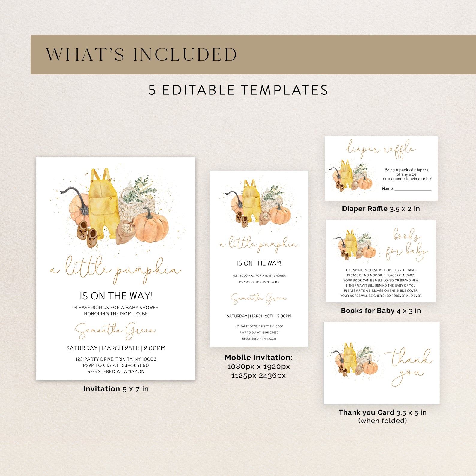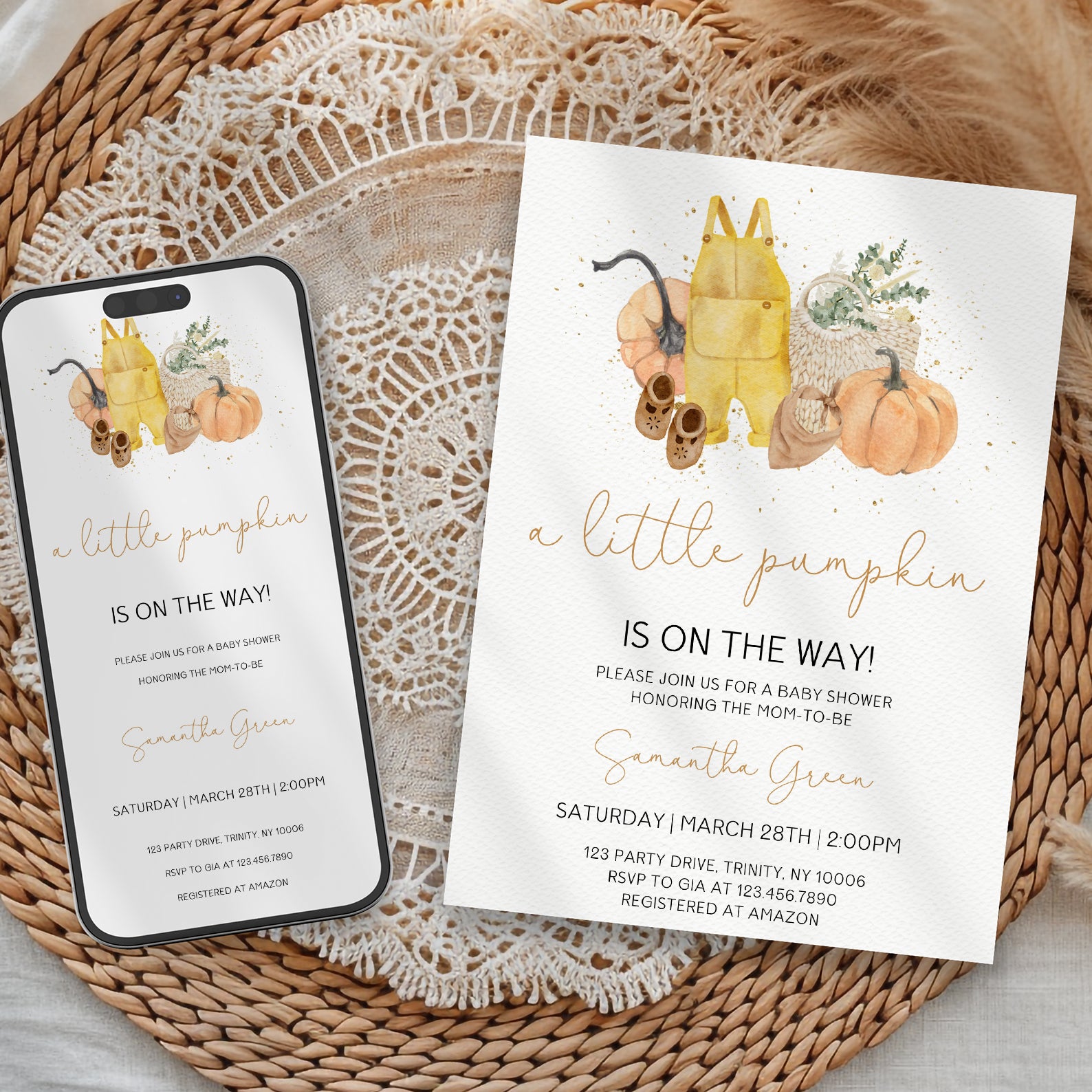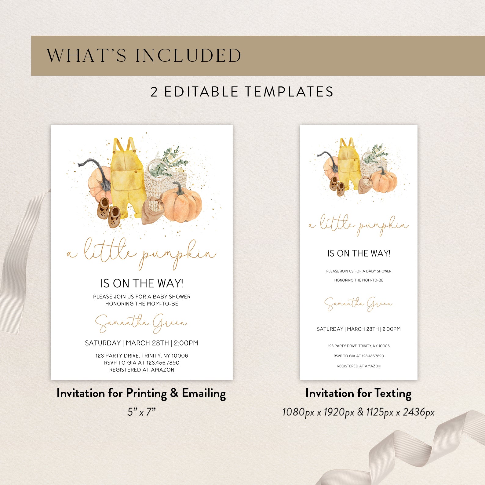 - Purchase this A Little Pumpkin Is on the Way Fall Baby Shower Digital Invite Bundle template