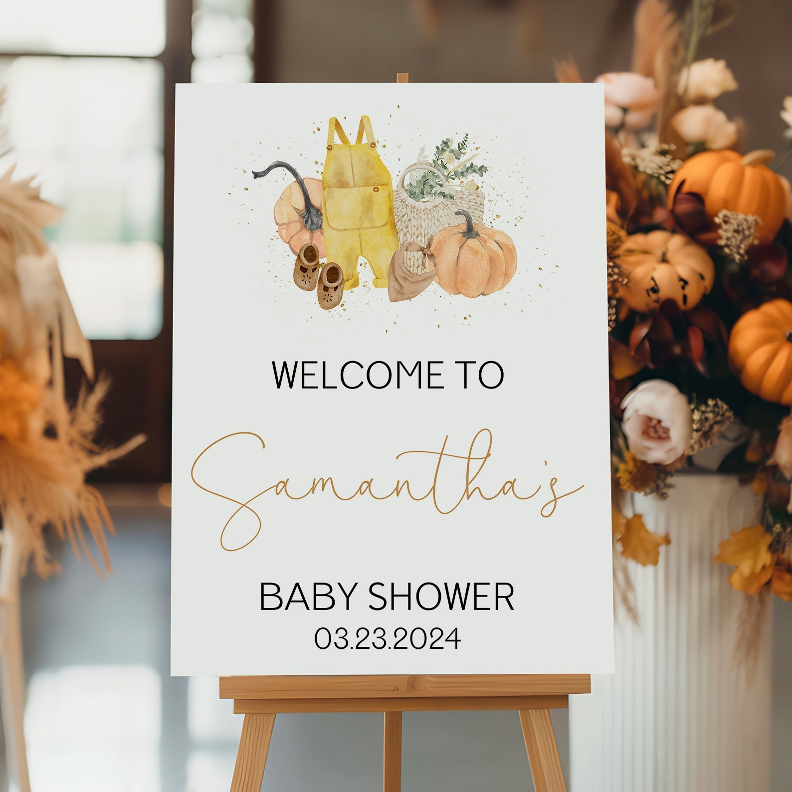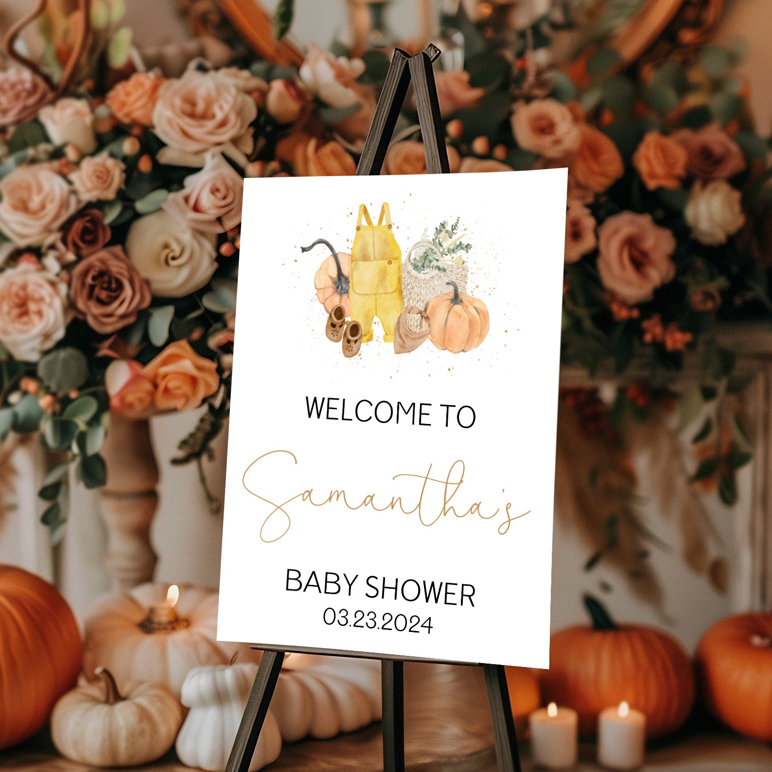 - Purchase this A Little Pumpkin Is on the Way Fall Baby Shower Digital Welcome Sign template