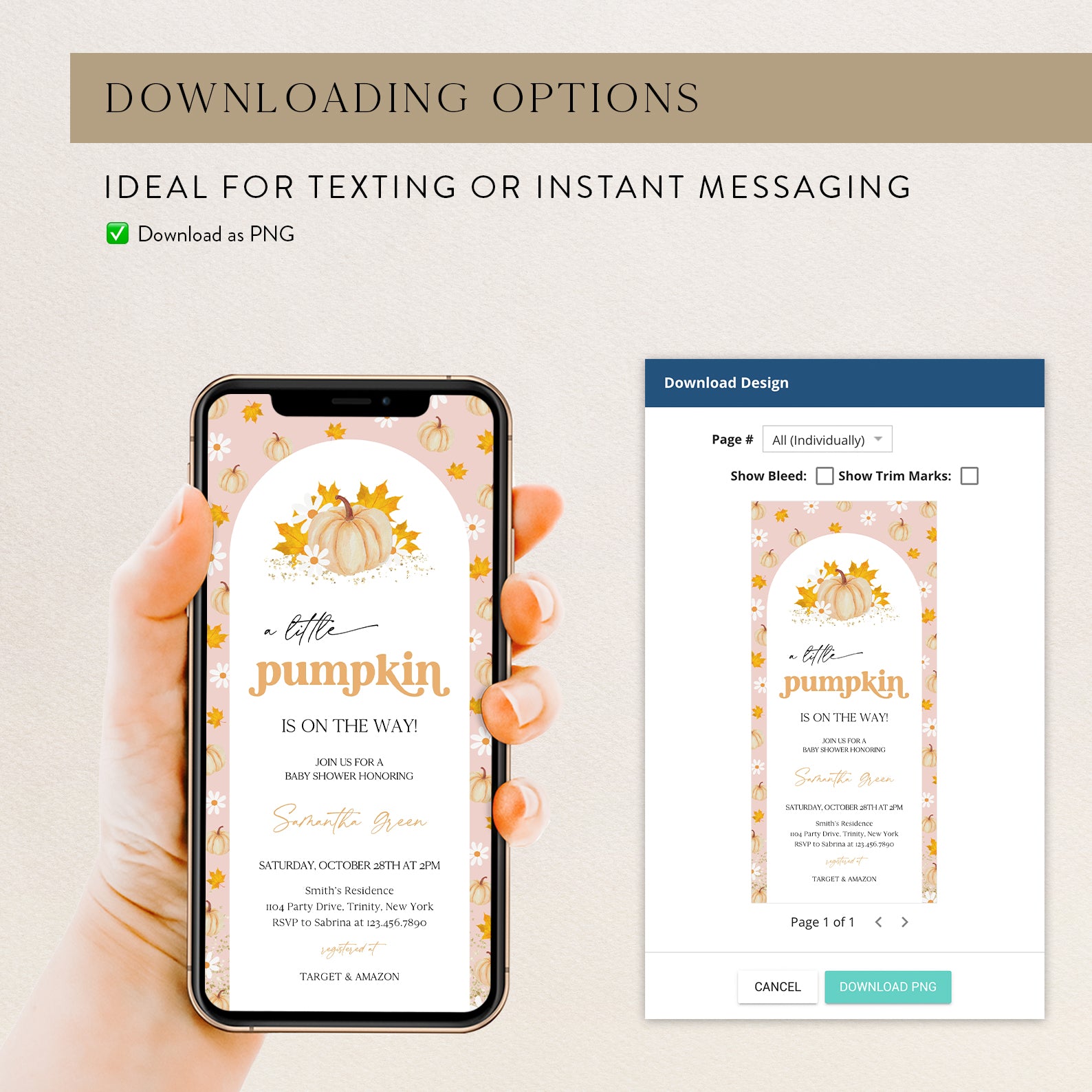 - Purchase this A Little Pumpkin Is on the Way: Fall Pumpkin Pattern Invite Bundle template