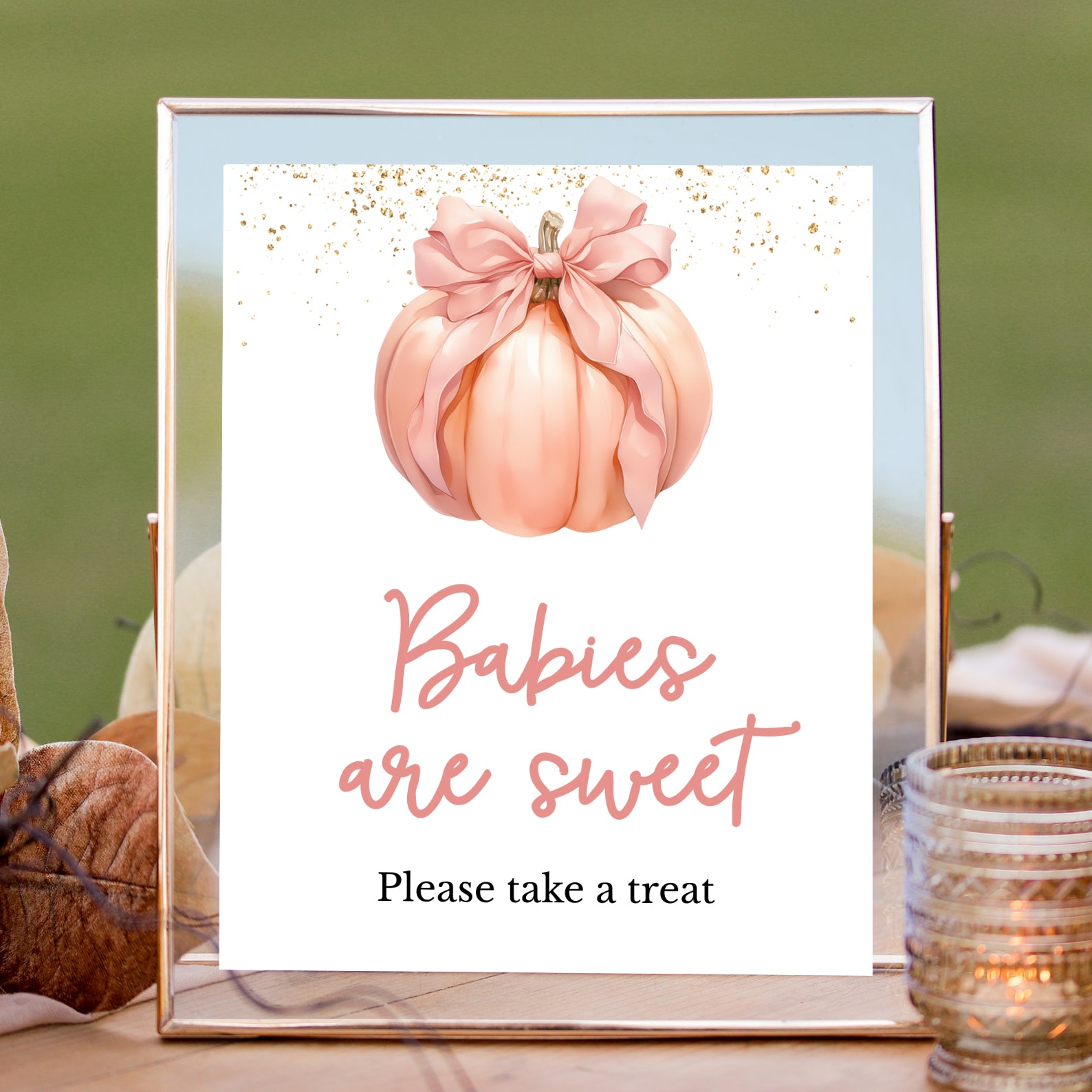 - Purchase this A Little Pumpkin Is On the Way: Pink Fall Baby Table Sign template