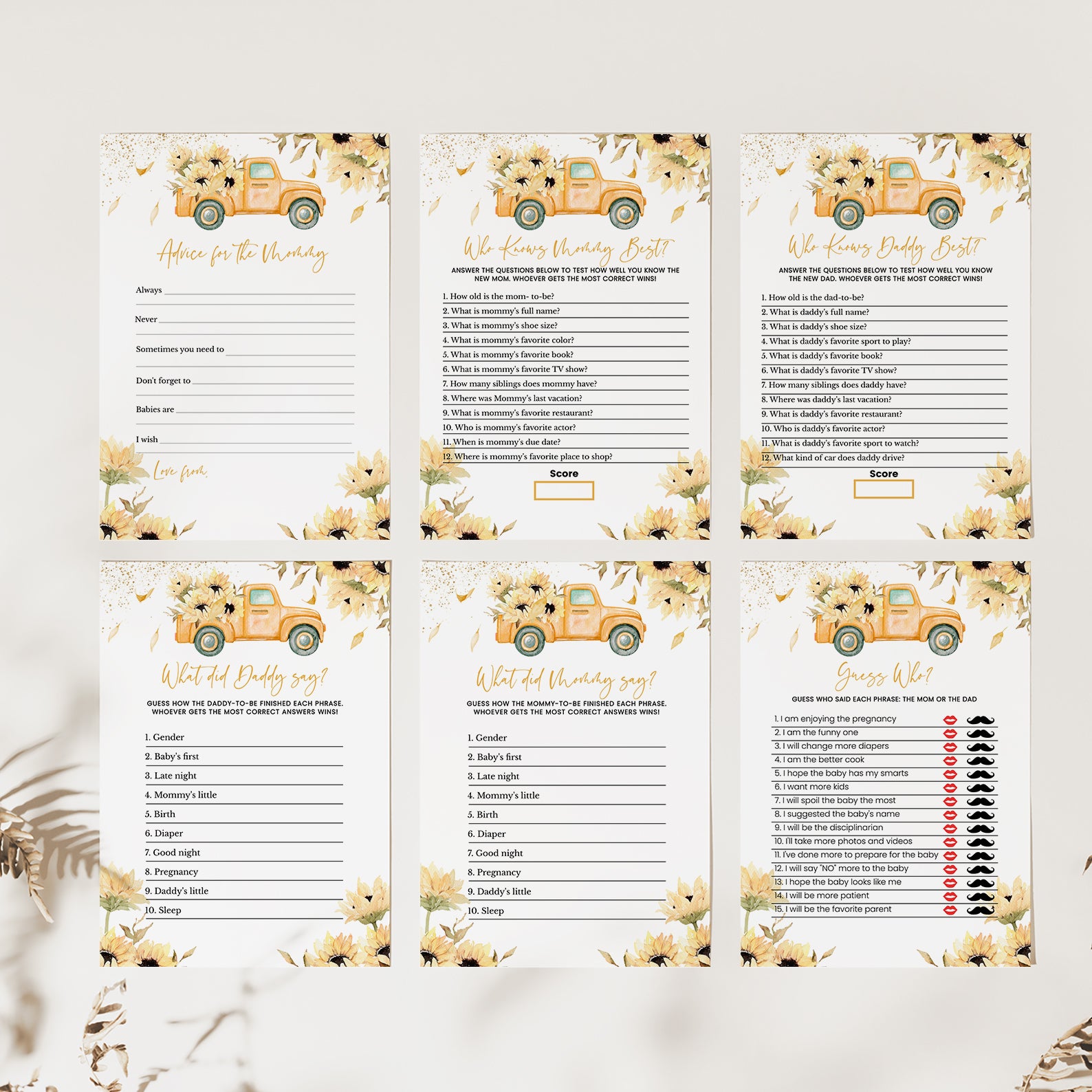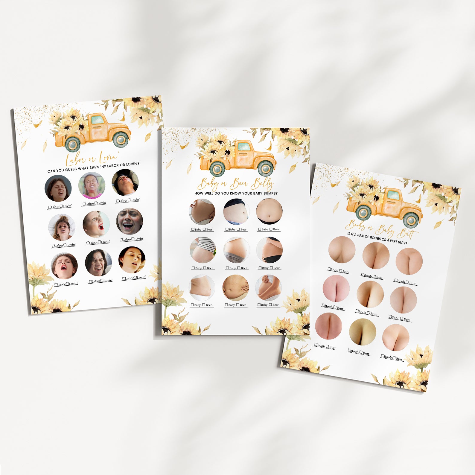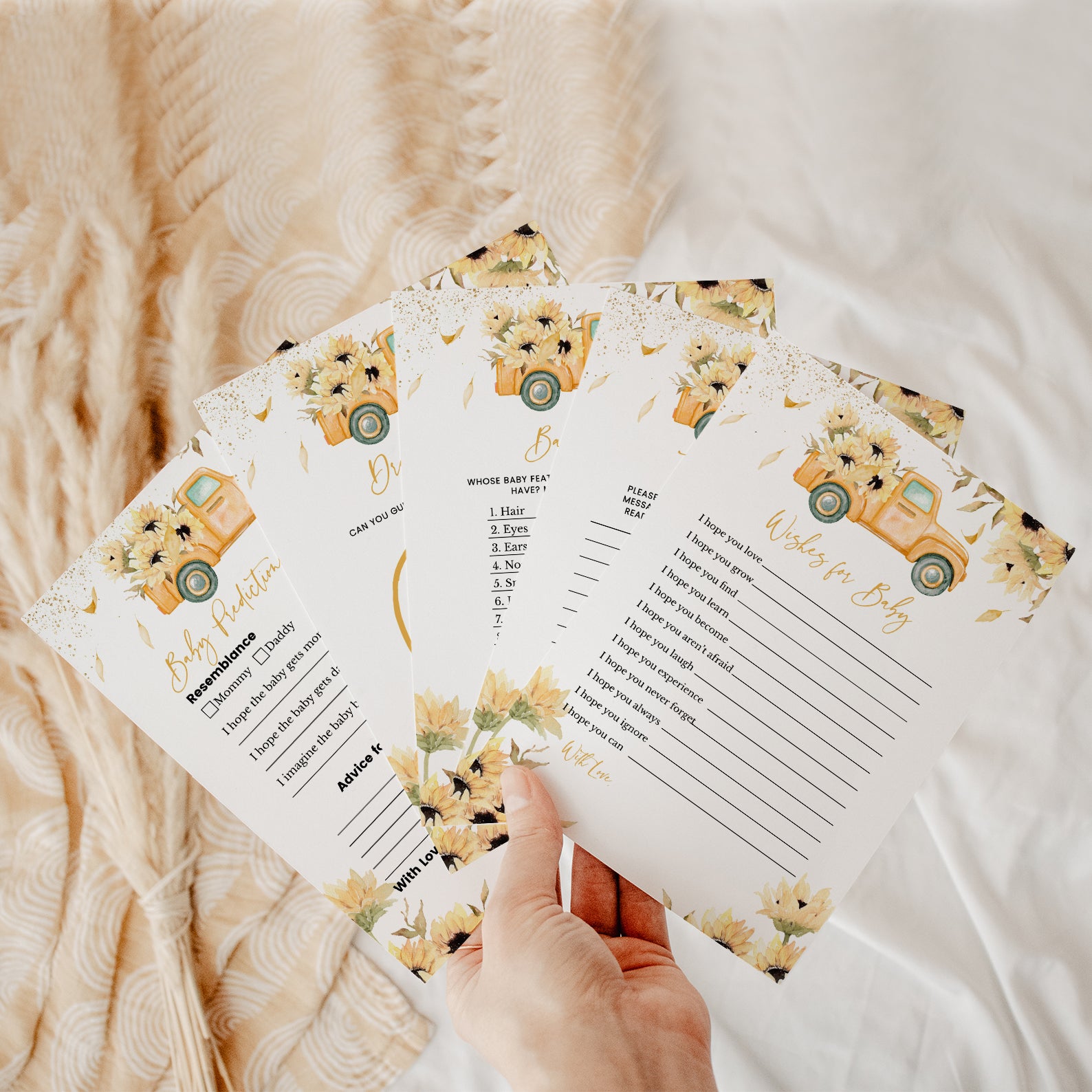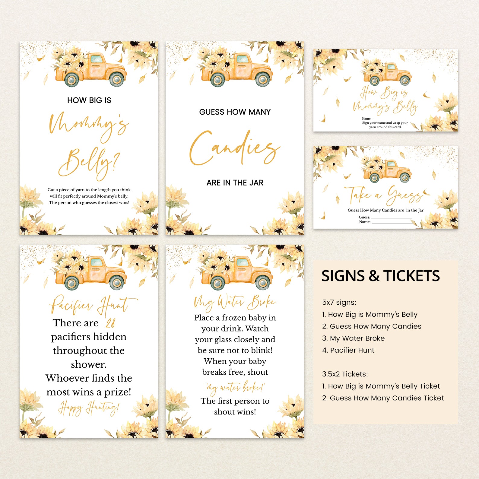 - Purchase this A Little Sunflower is on the Way’ Yellow Fall Baby Game Bundle template