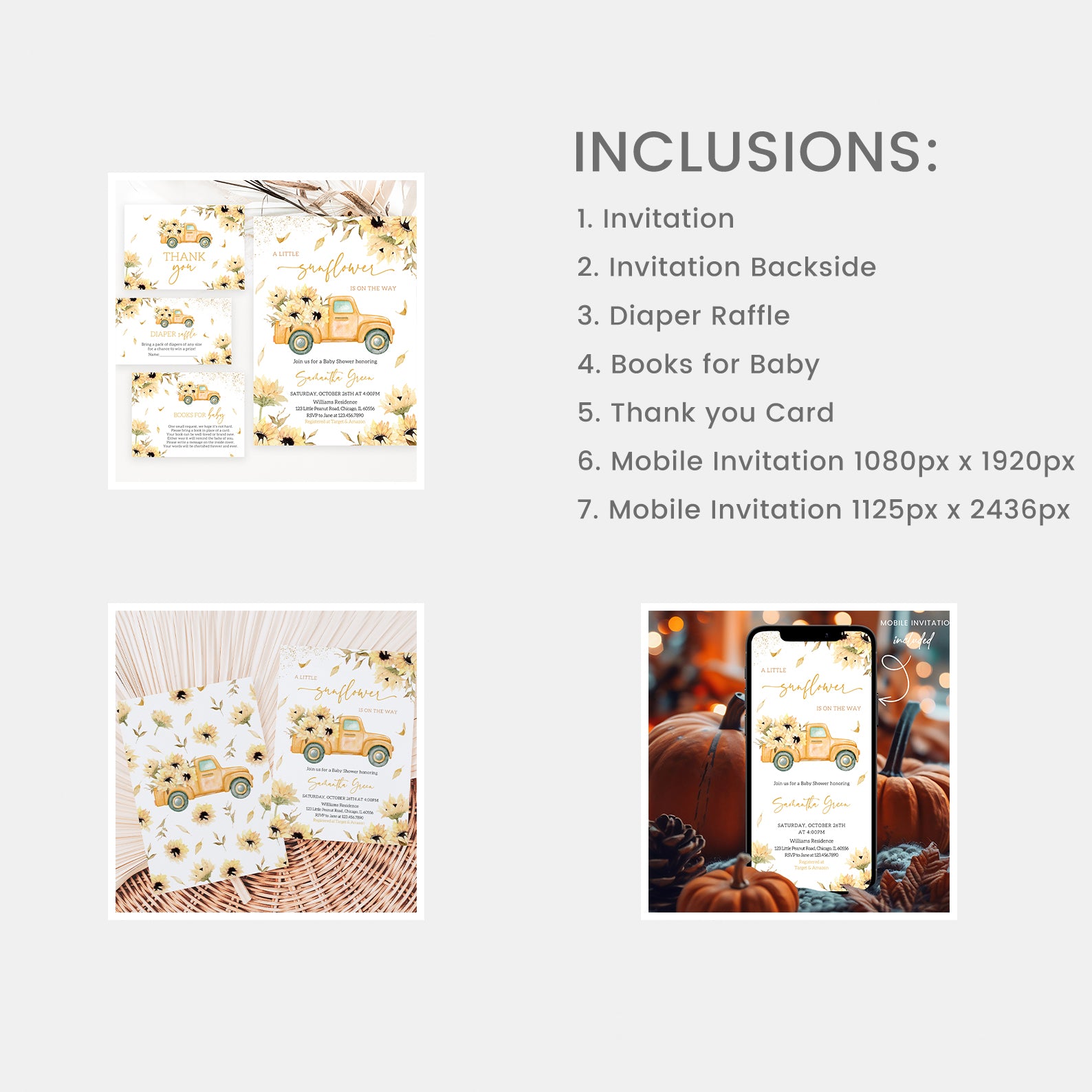 - Purchase this A Little Sunflower is on the Way’ Yellow Fall Baby Mega Bundle template