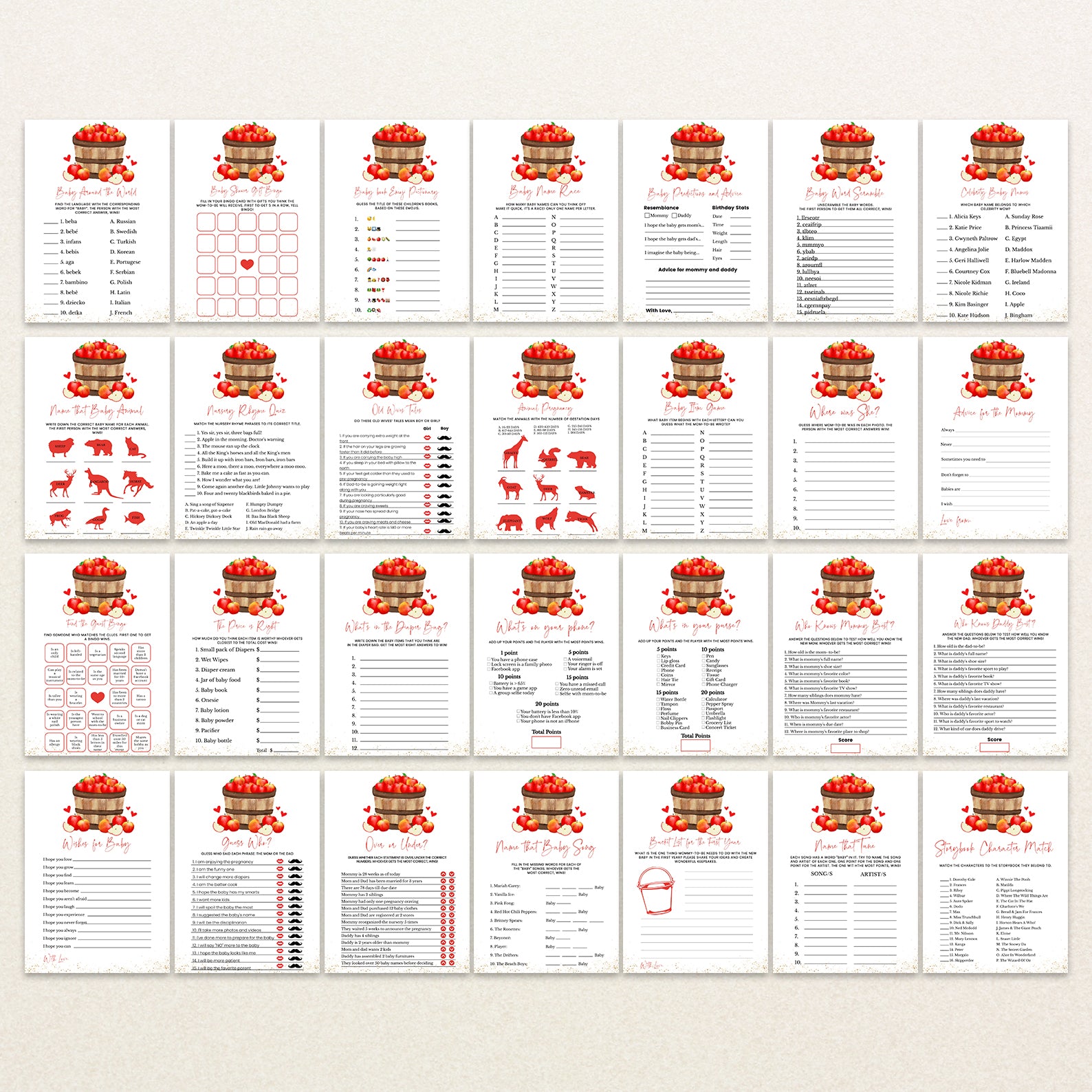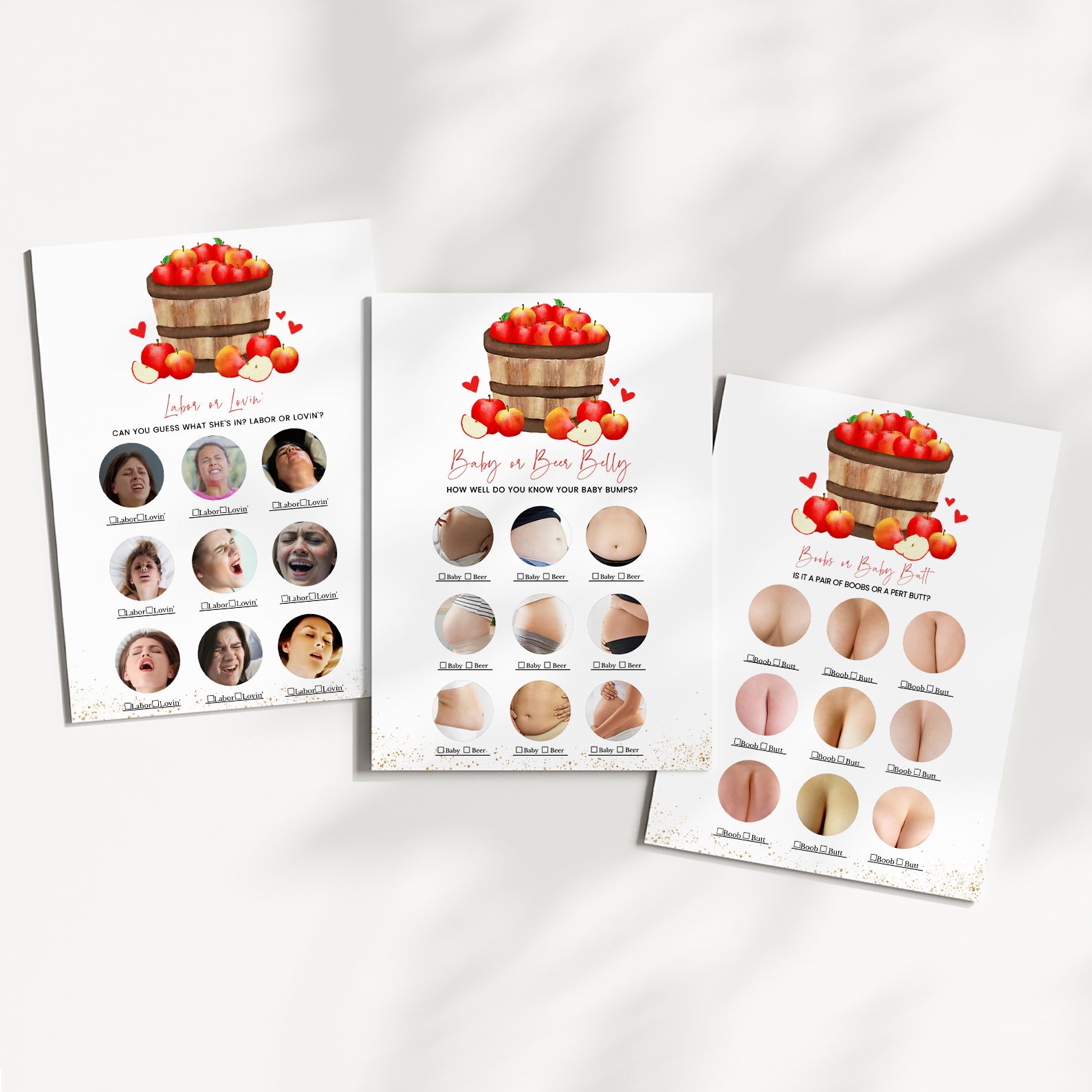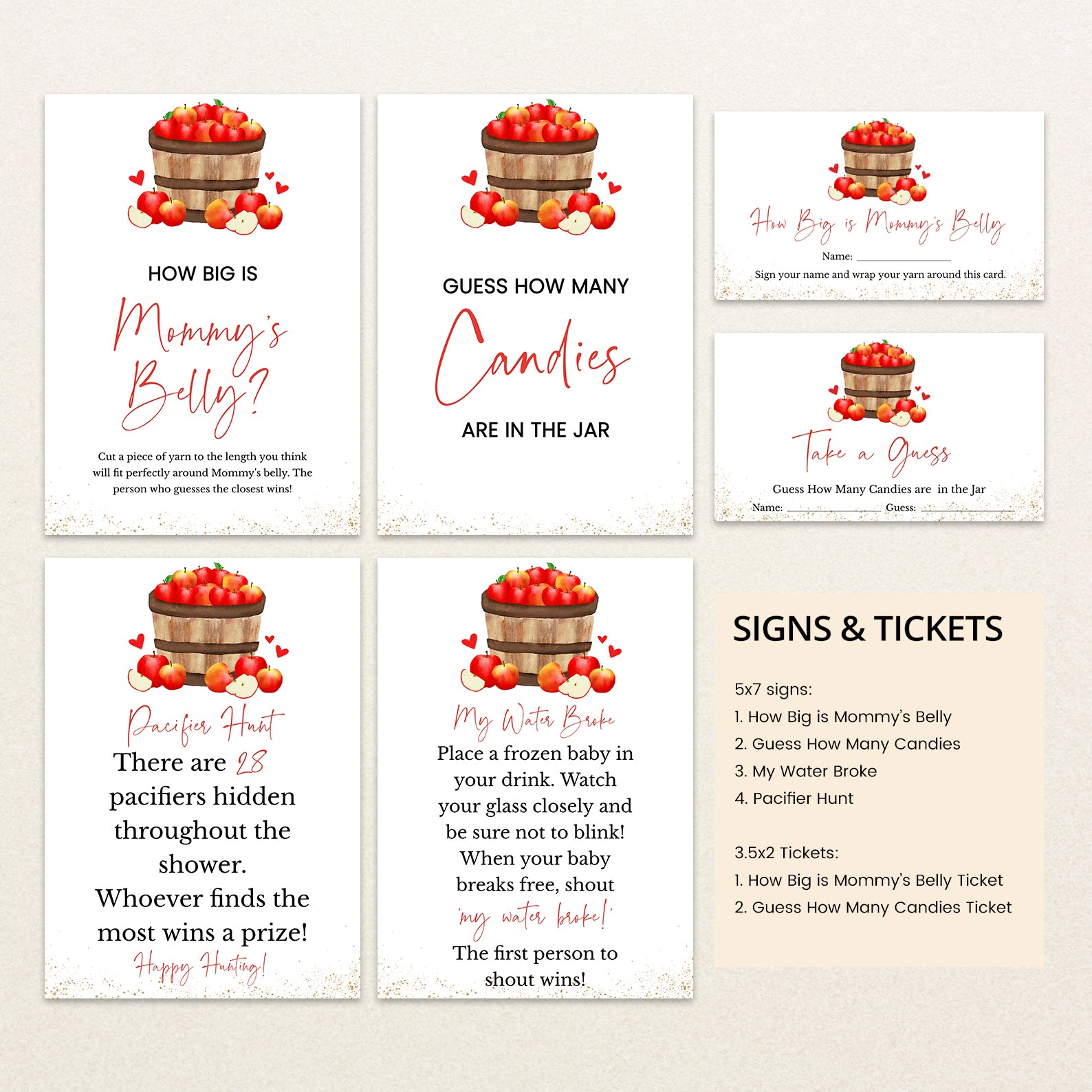Apples in Barrel & Gold Accents Fall Baby Shower Game Bundle
