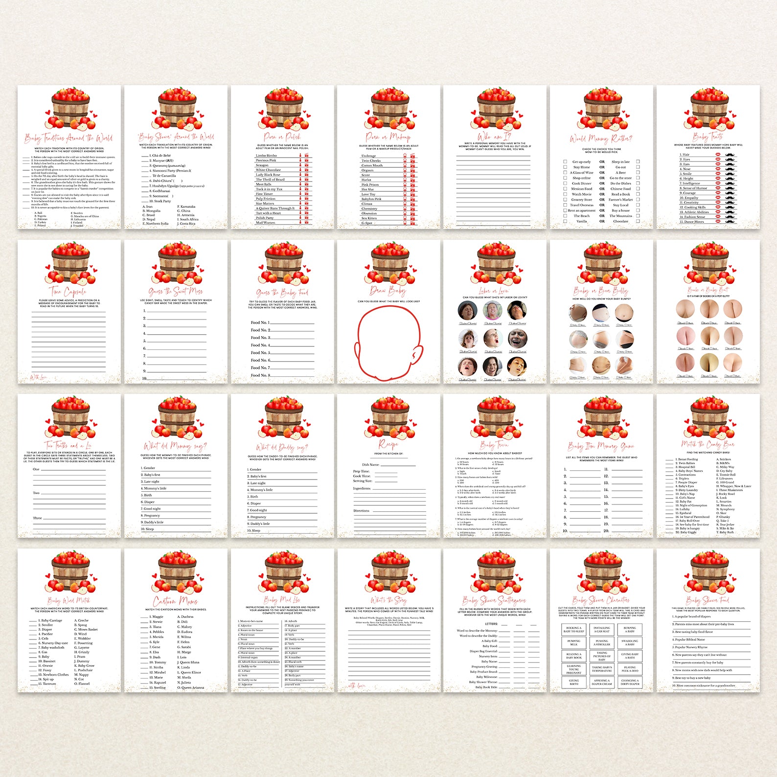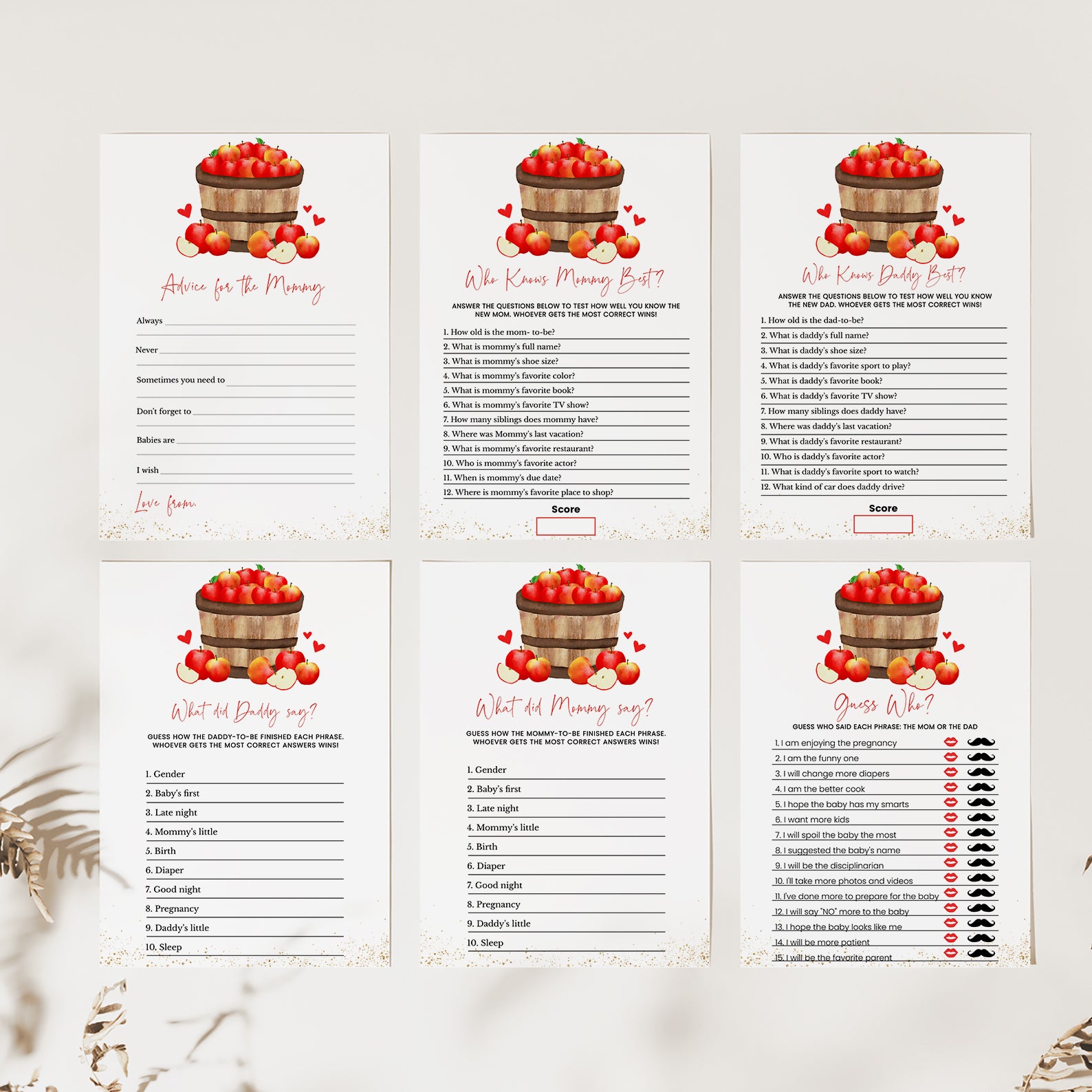 - Purchase this Apples in Barrel & Gold Accents Fall Baby Shower Game Bundle template