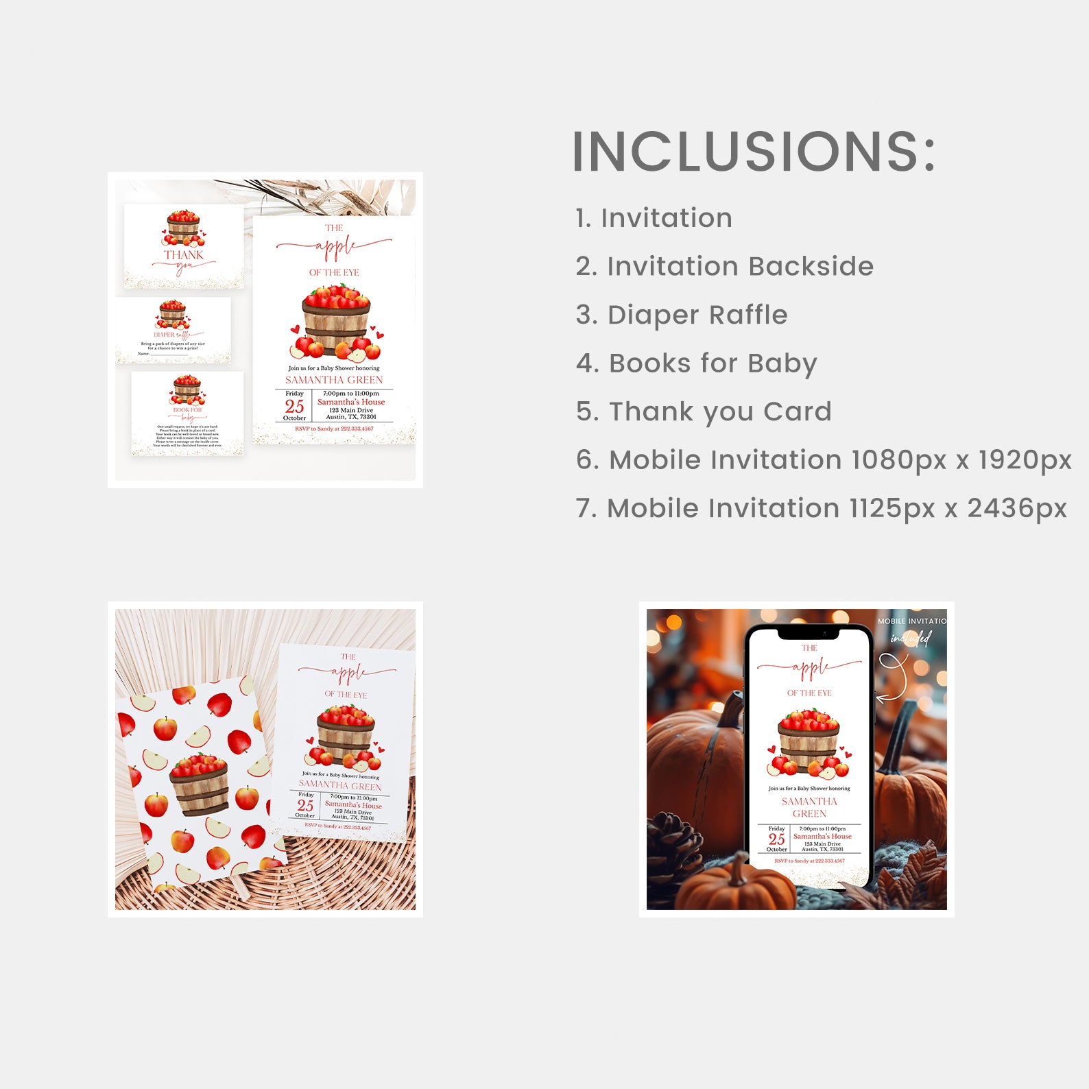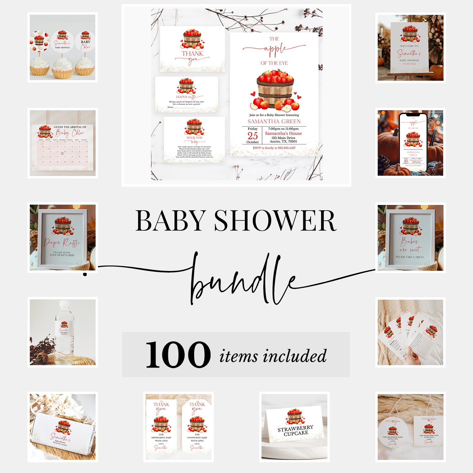 - Purchase this Apples in Barrel & Gold Accents Fall Baby Shower Mega Bundle template