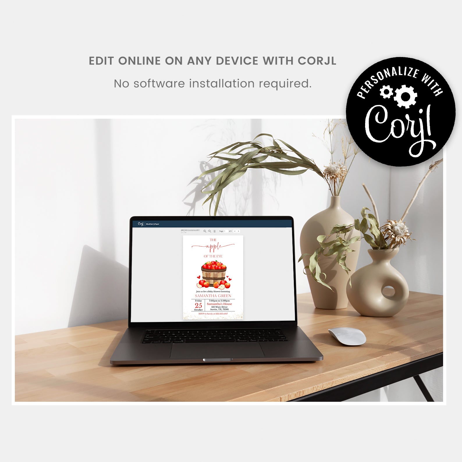 After purchase, you will receive an email from Corjl containing a link to edit and download your template.