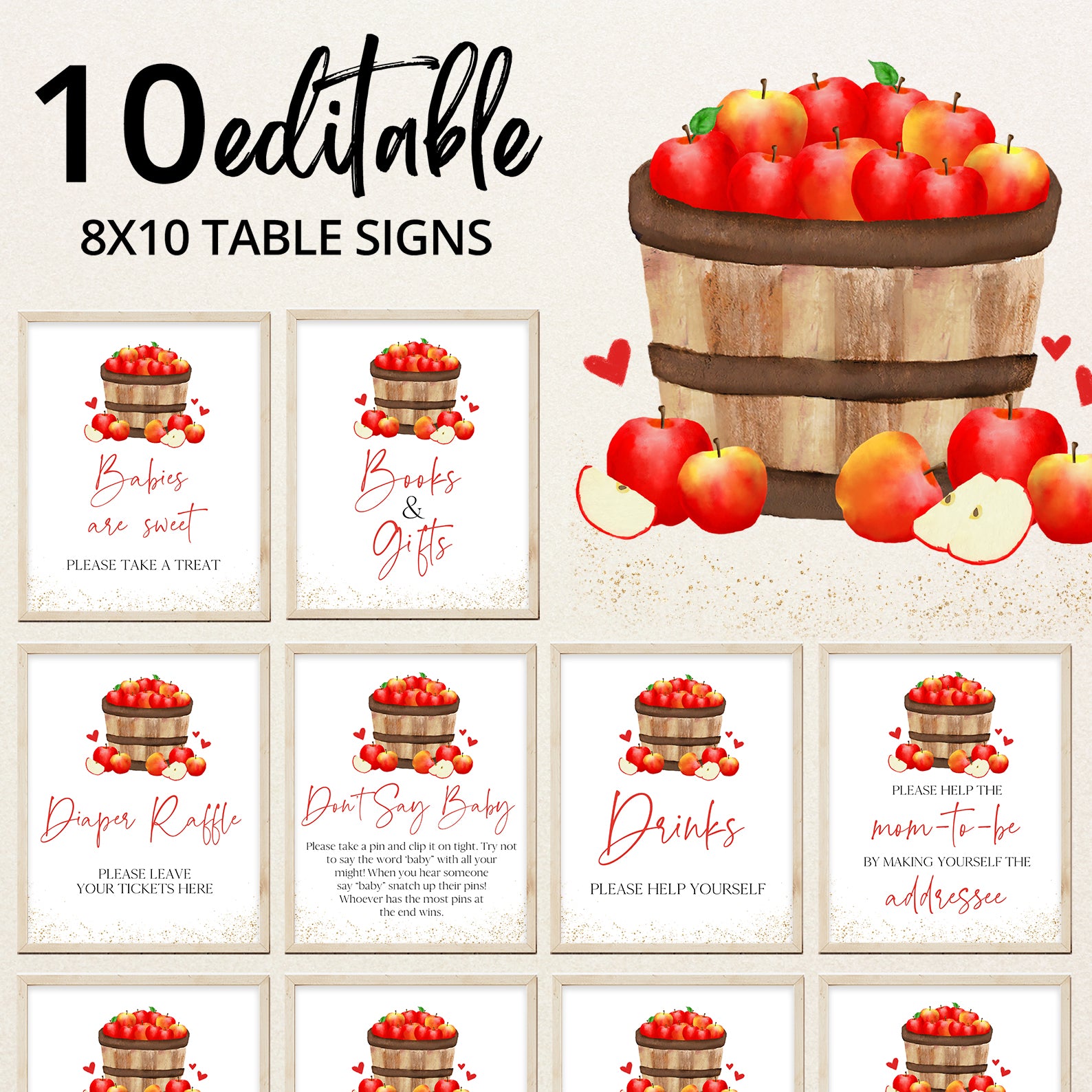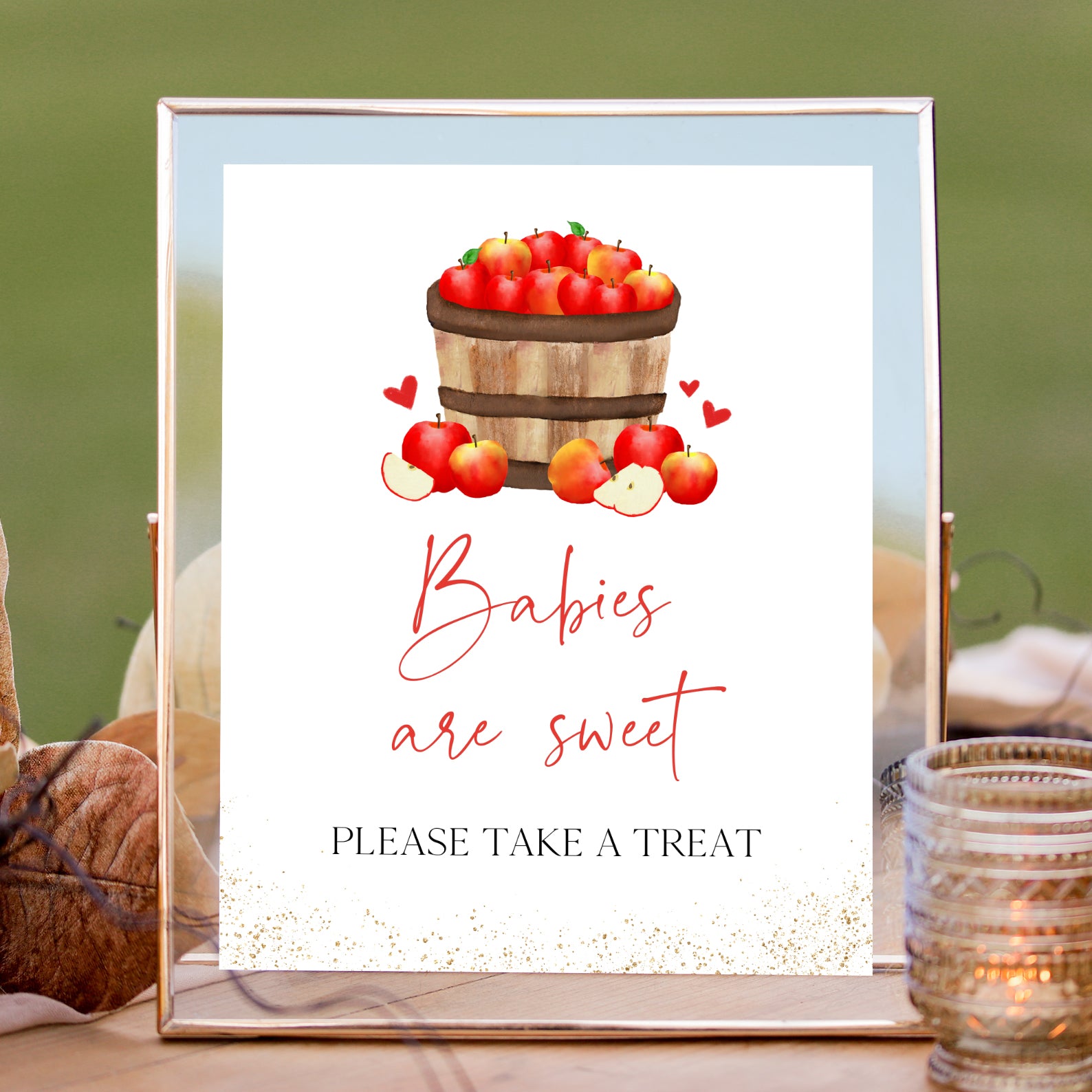 - Purchase this Apples in Barrel & Gold Accents Fall Baby Shower Table Sign template