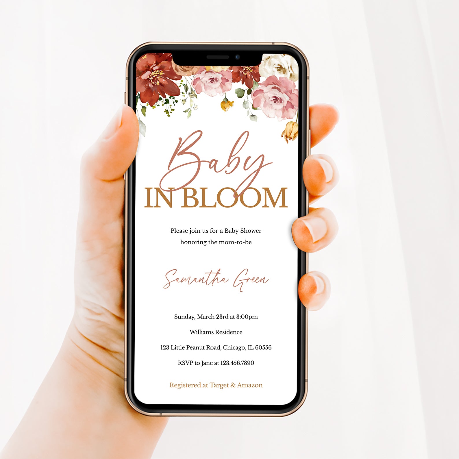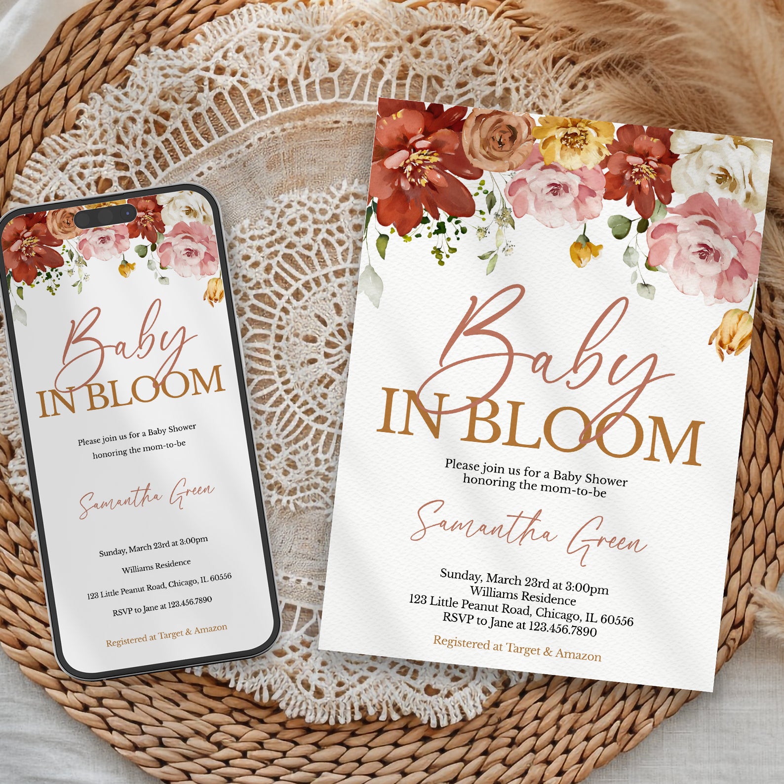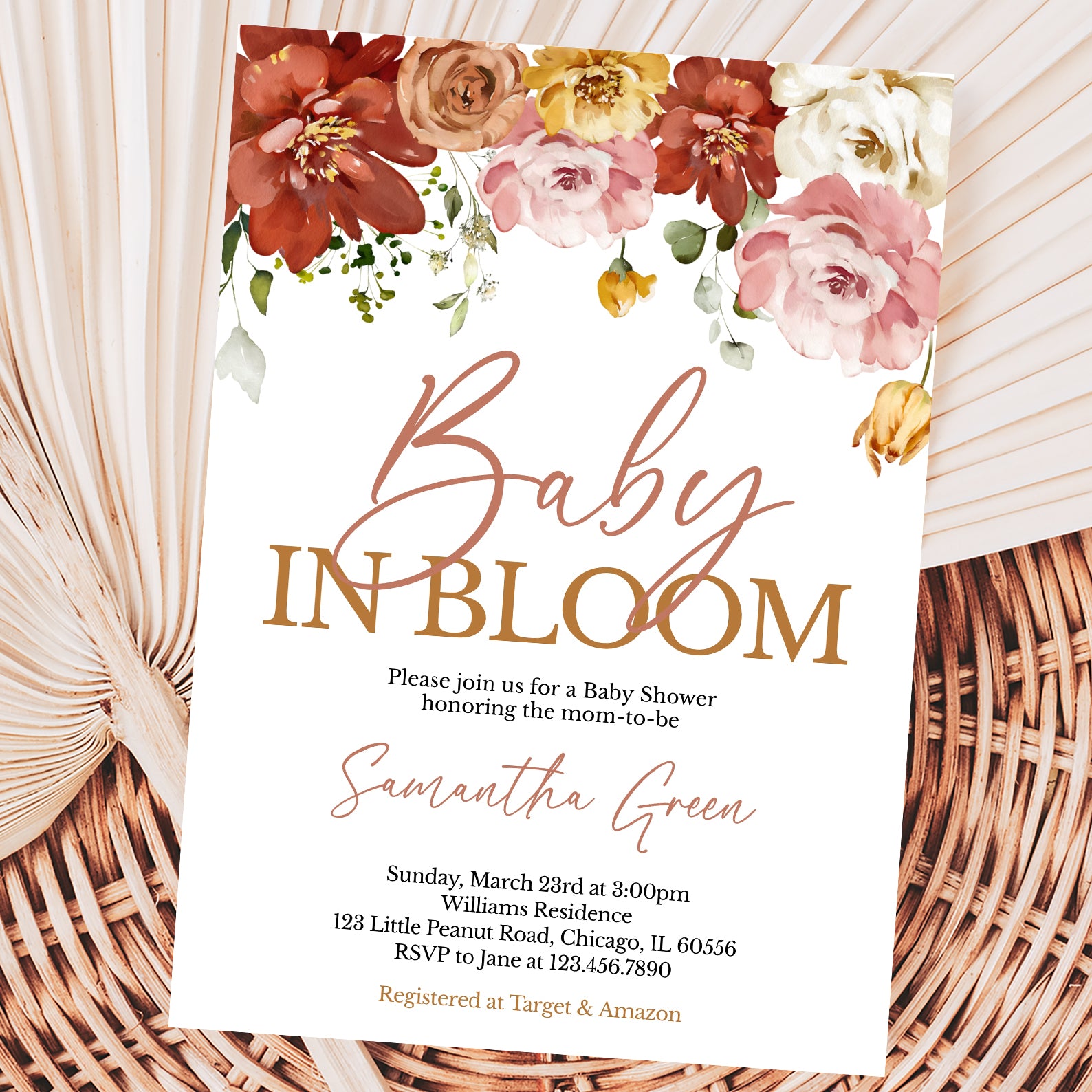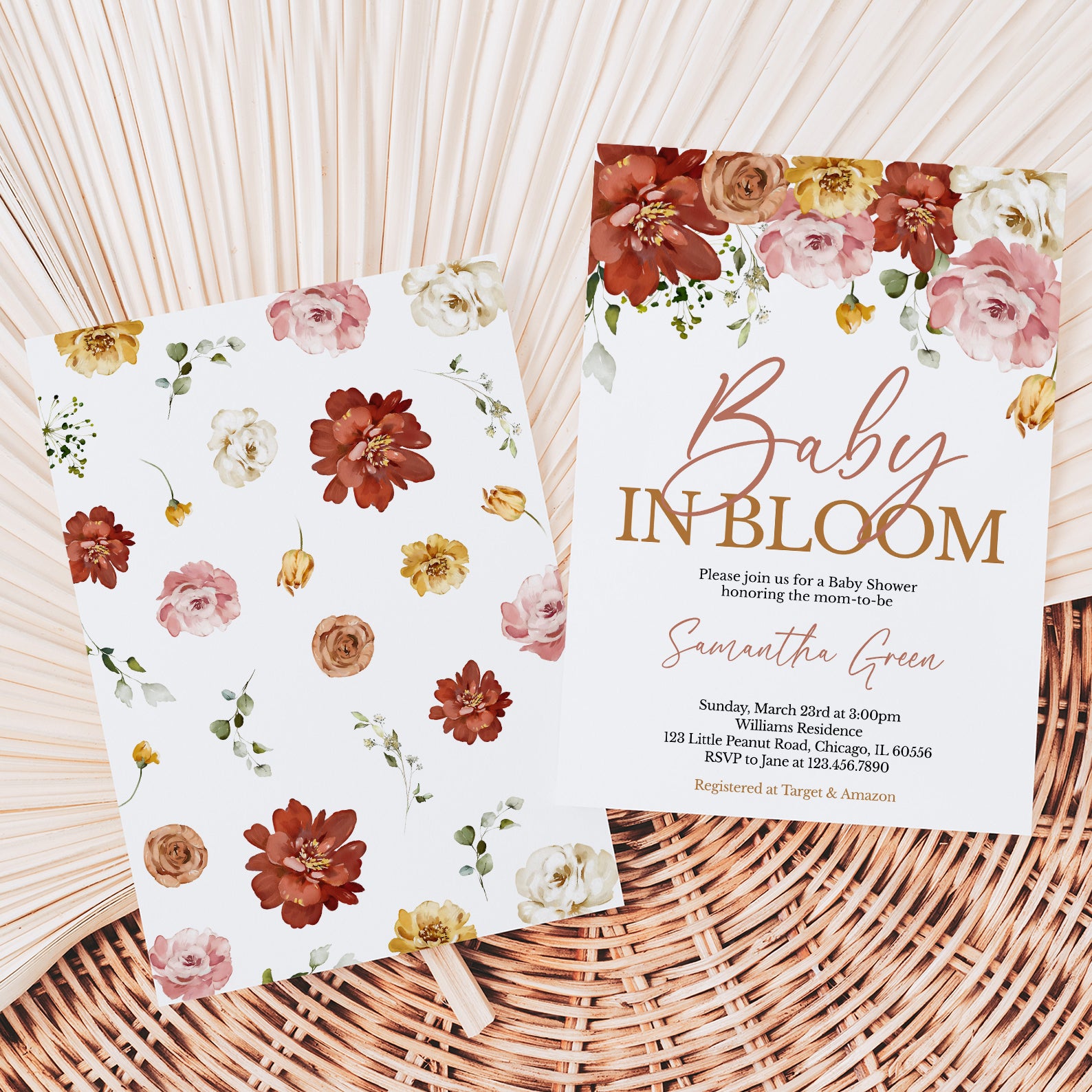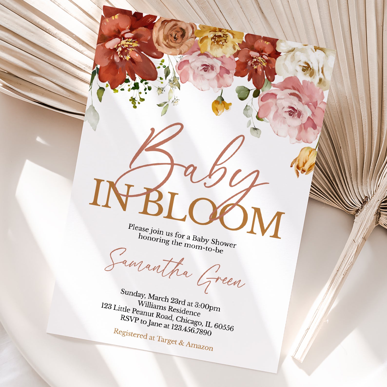 Baby in Bloom Baby Shower Invitation with Watercolor Flowers