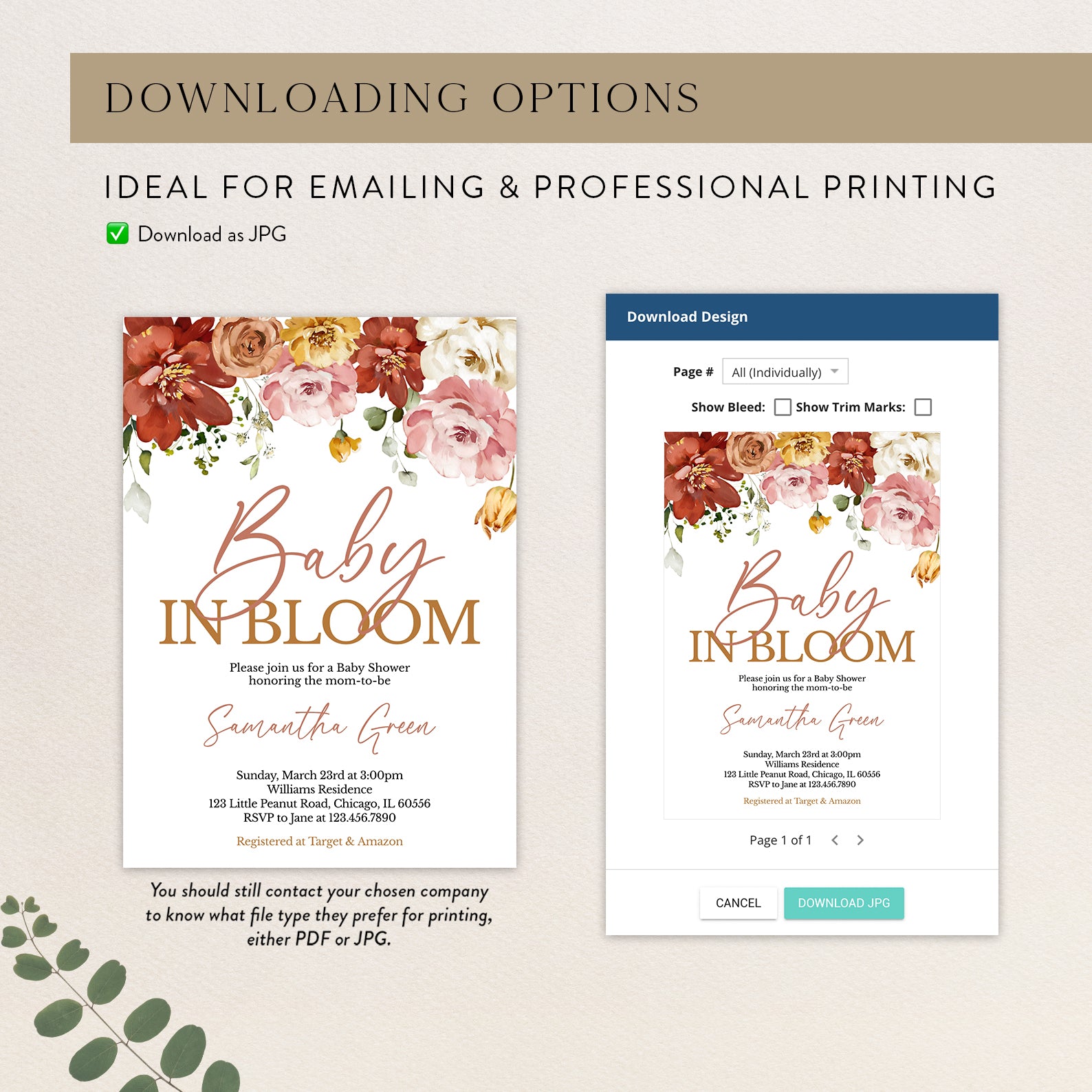 1. Purchase this Baby in Bloom Baby Shower Invitation with Watercolor Flowers template
