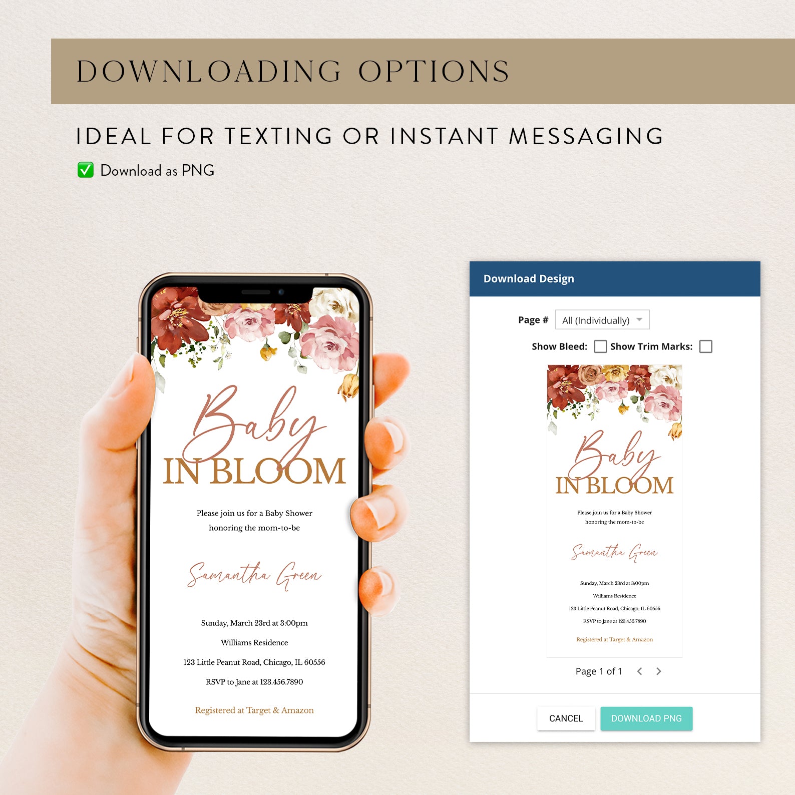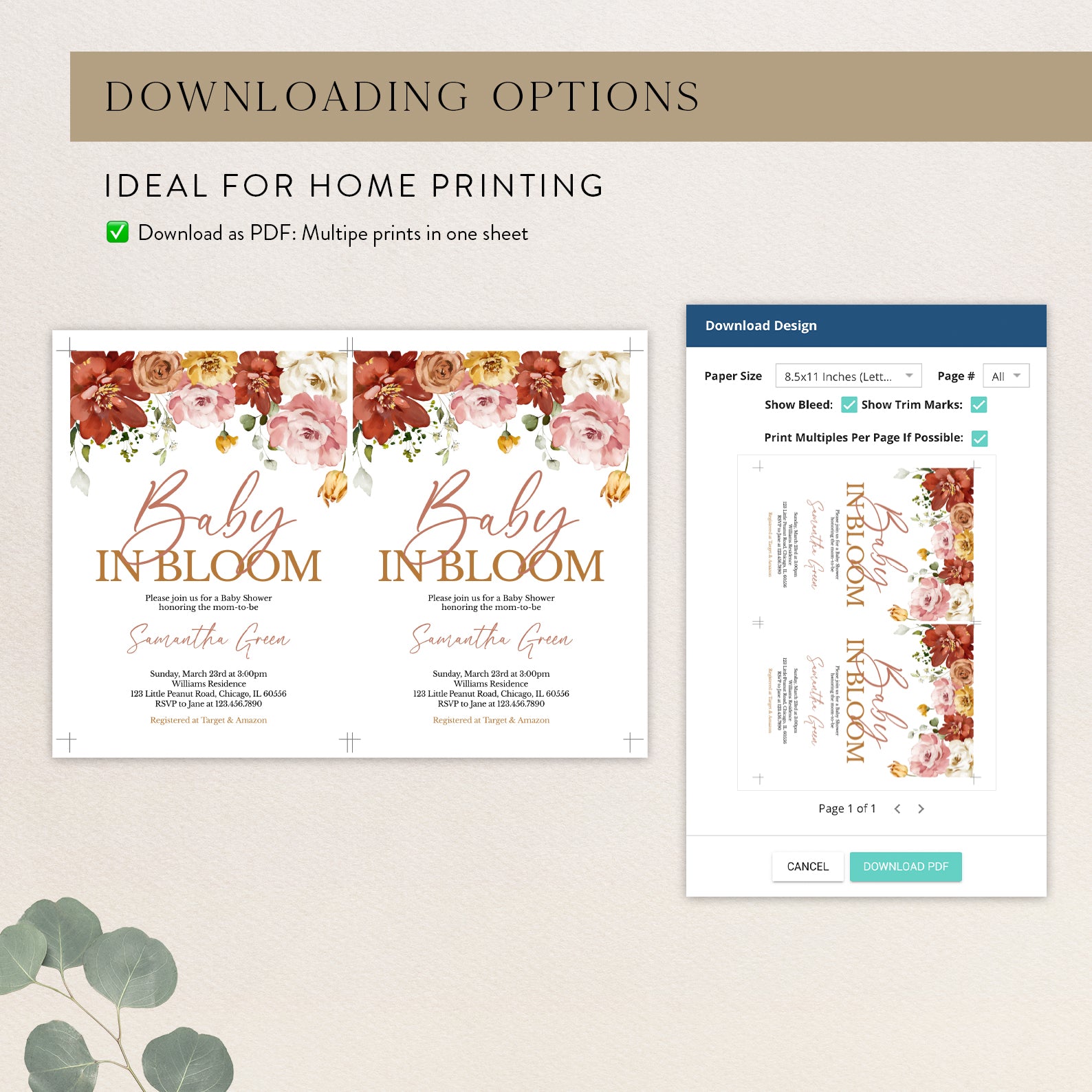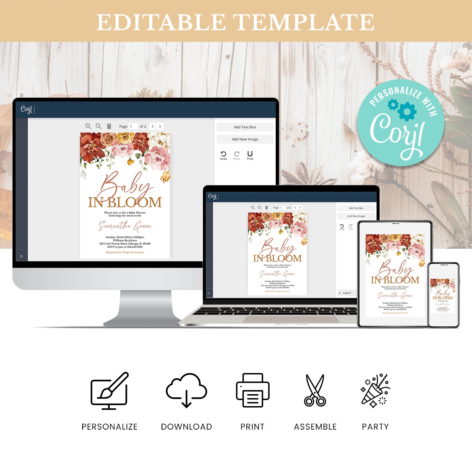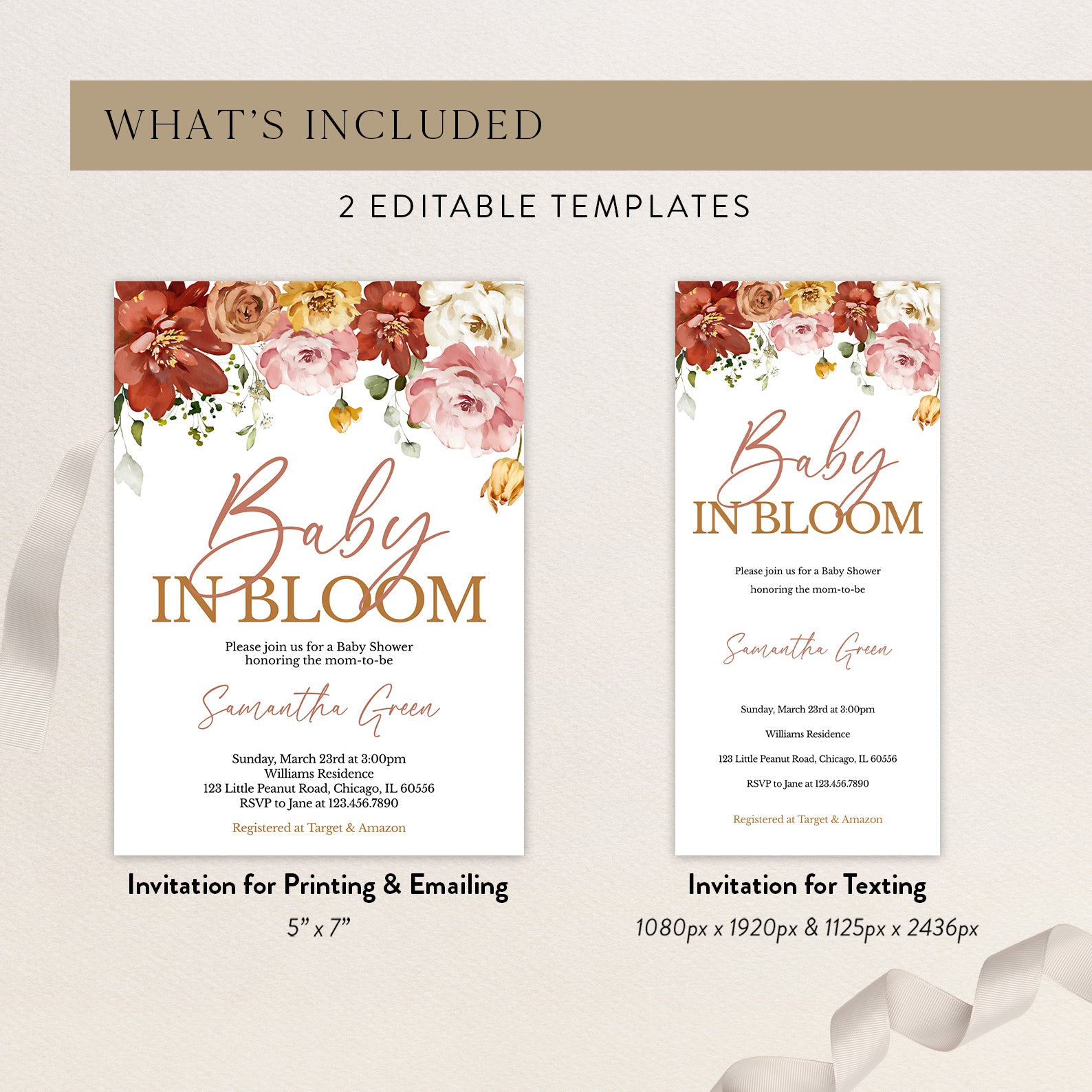 Prepare for your little one’s arrival with our enchanting Fall Baby Shower Digital Invitation. Adorned with delicate watercolor flowers and roses, and highlighted by lush green leaves at the top, this design adds a charming autumnal touch. This charming invitation captures the essence of a blooming garden, making it the perfect choice for a cozy autumn gathering. Effortlessly share the joy of your upcoming celebration with friends and family, ensuring they feel the warmth and love that surrounds this special occasion.