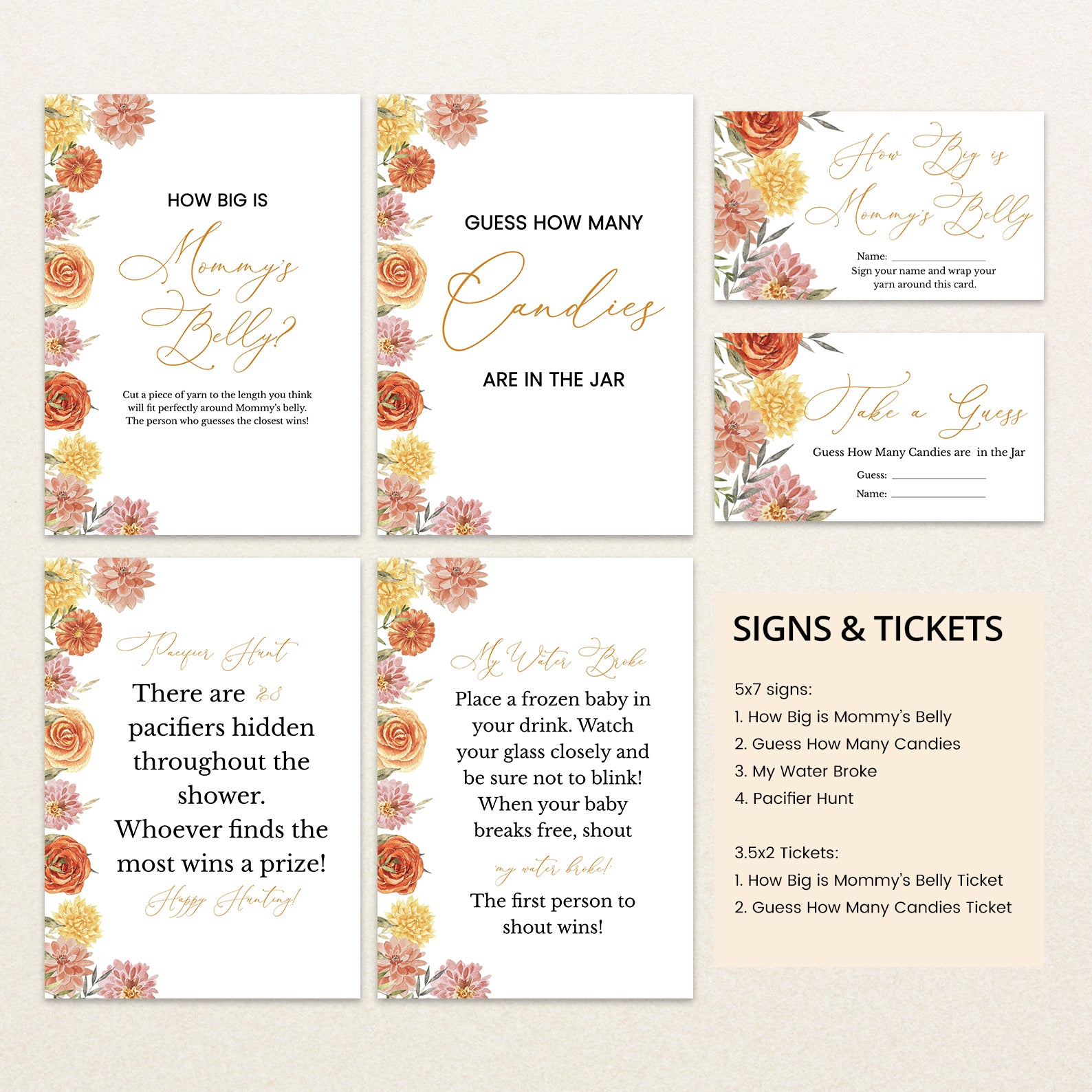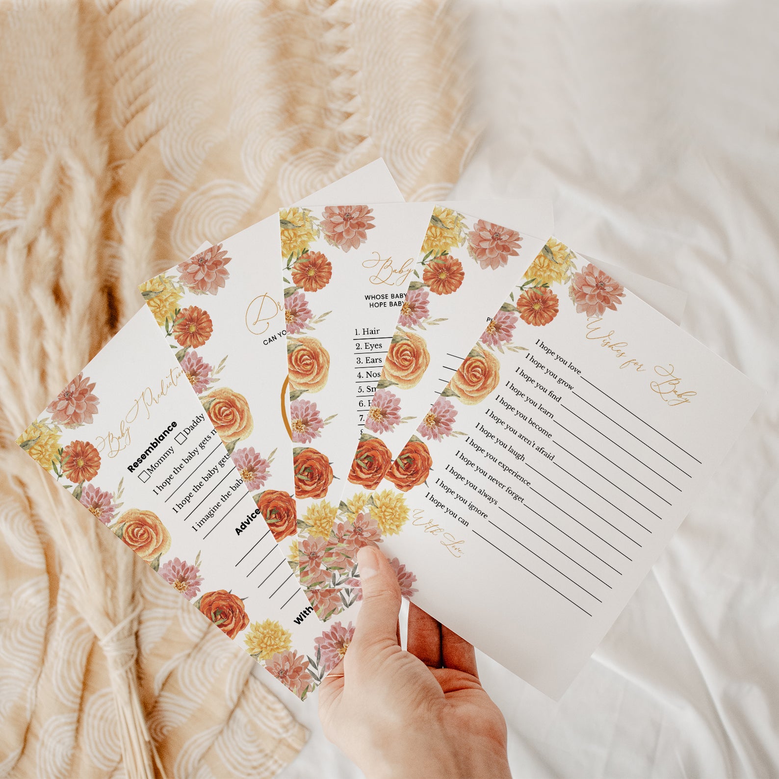 Baby in Bloom Fall Baby Shower Game Bundle with Flowers & Leaves