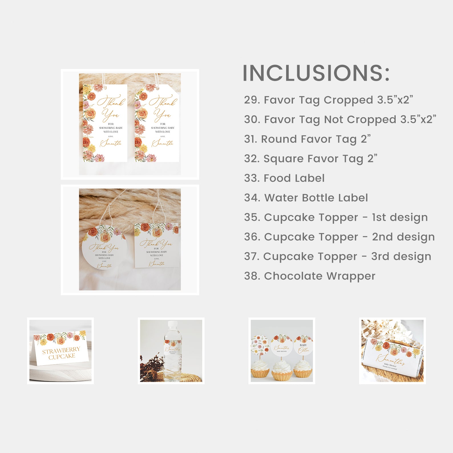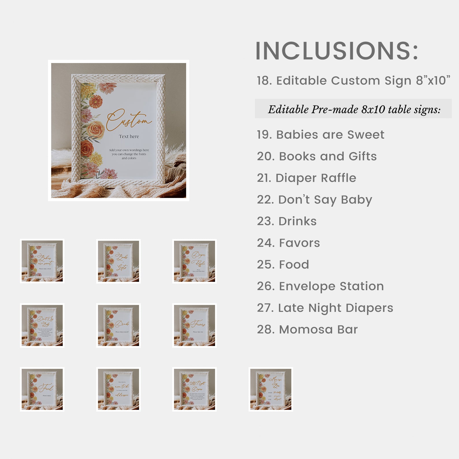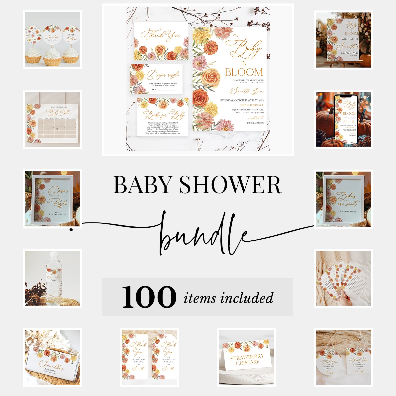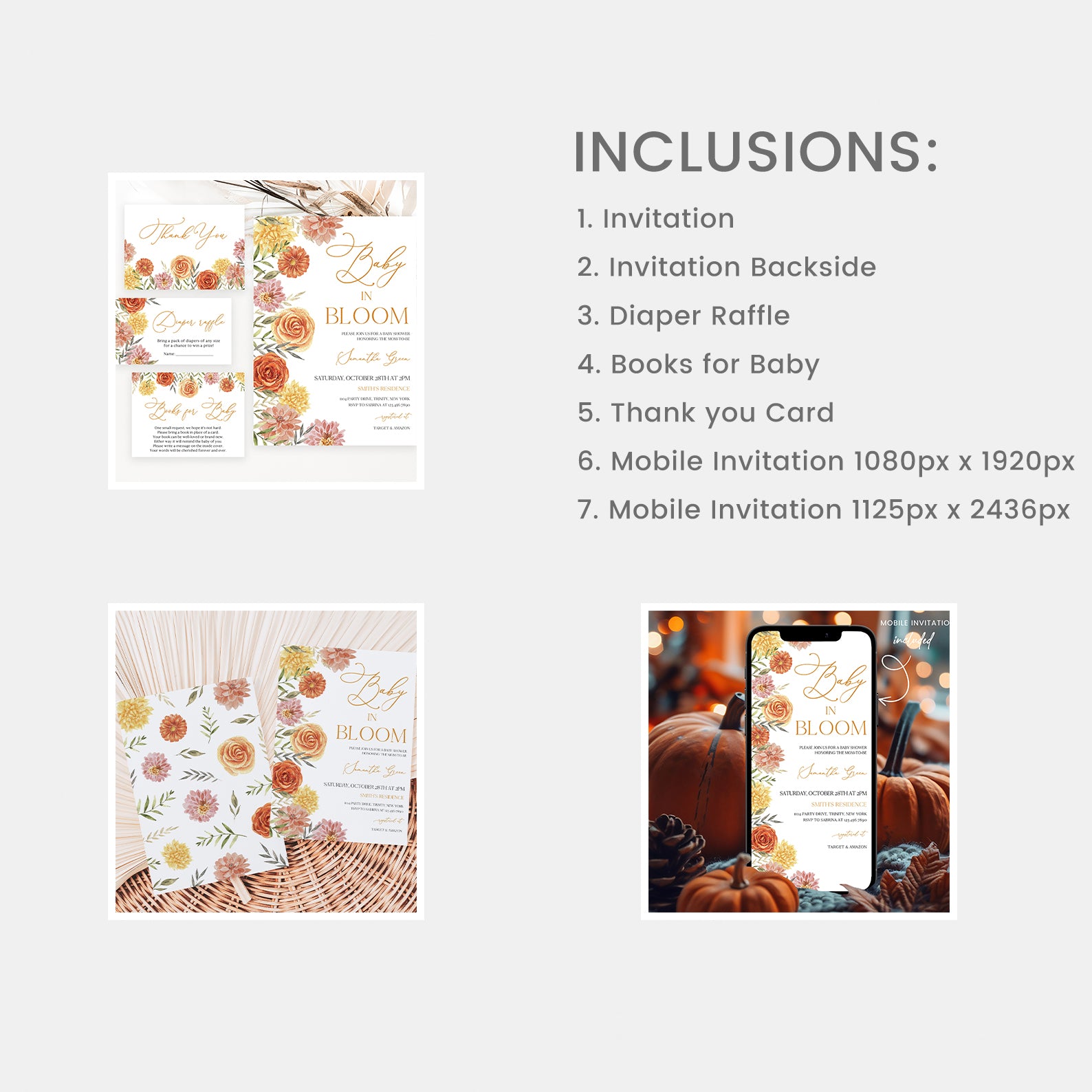 - Purchase this Baby in Bloom Fall Baby Shower Mega Bundle with Flowers & Leaves template