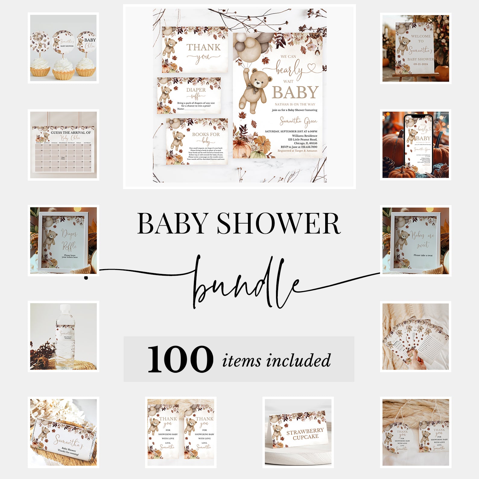 - Purchase this Bearly Wait Baby Shower Digital Mega Bundle with Autumn Flowers template