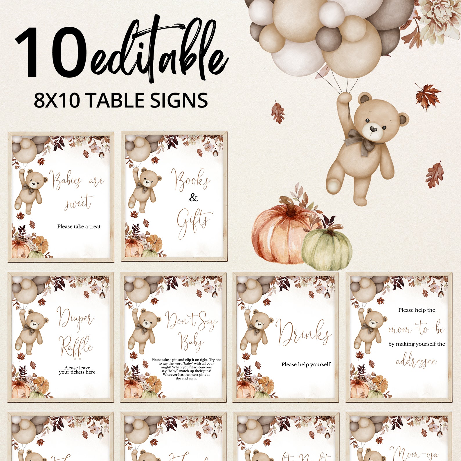 - Purchase this Bearly Wait Baby Shower Digital Table Sign with Autumn Flowers template