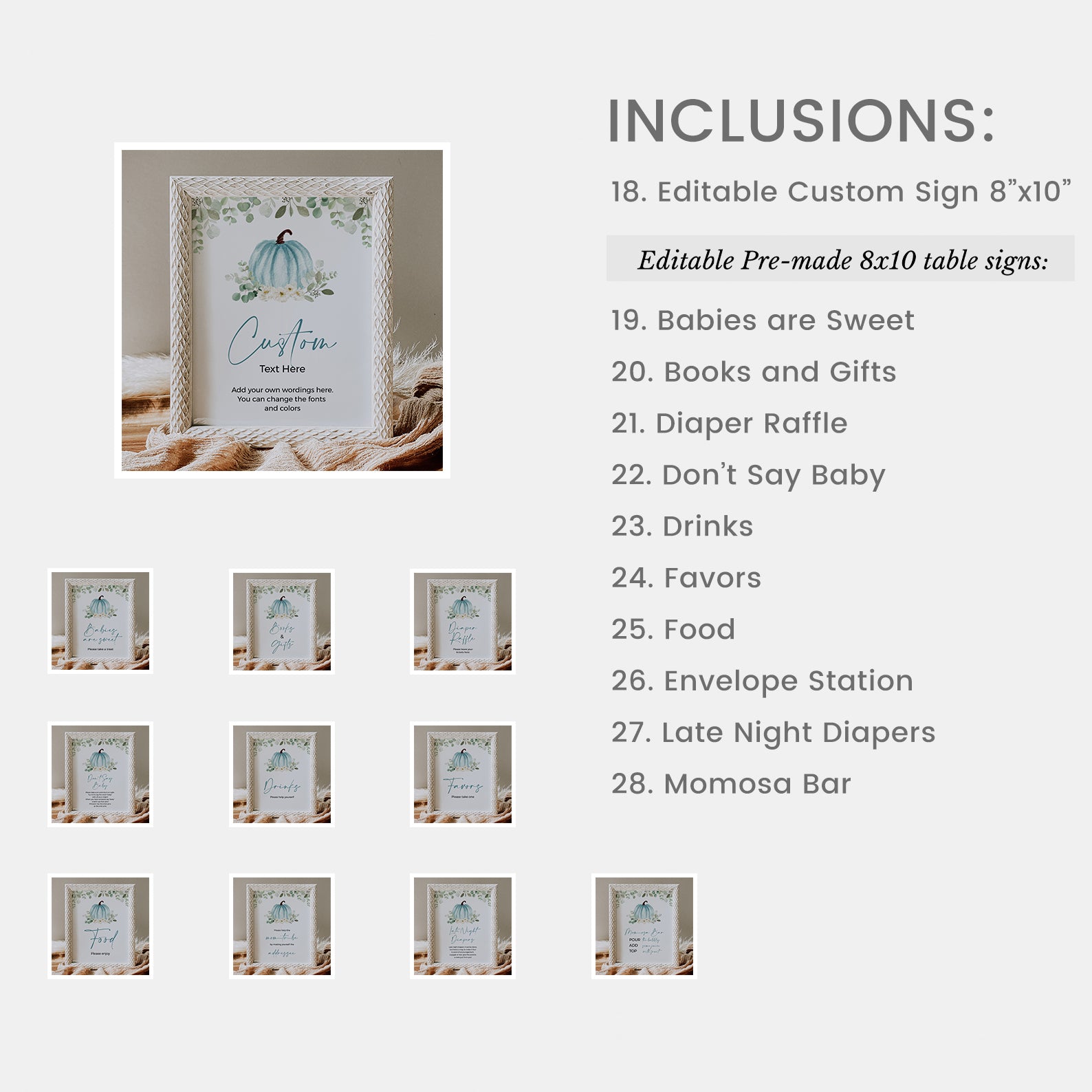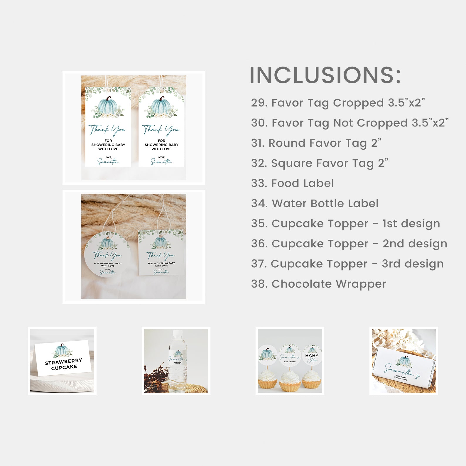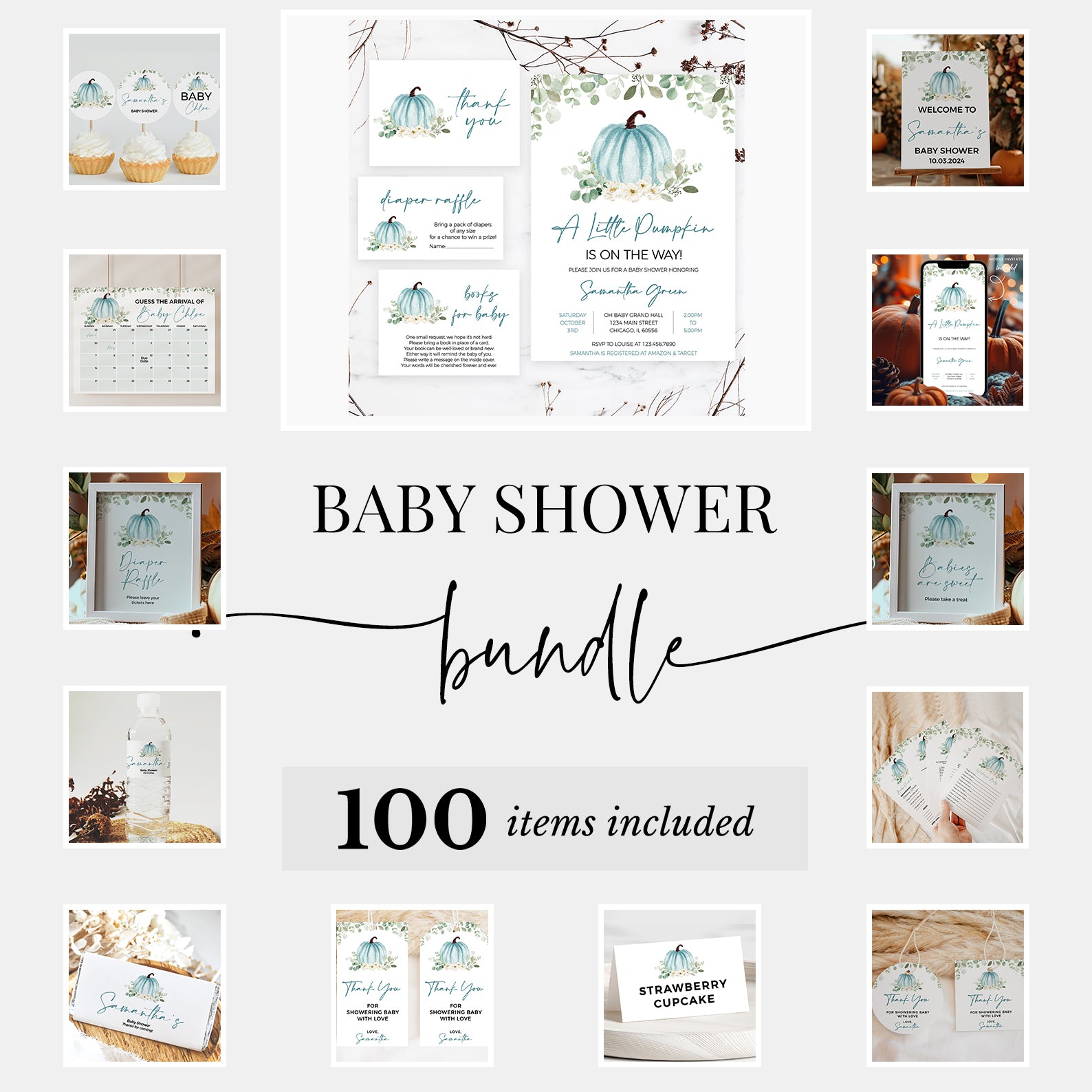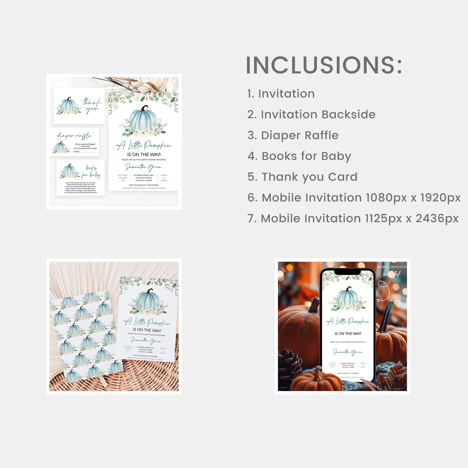 - Purchase this Blue-Green Little Pumpkin Baby Shower Mega Bundle Fall Theme template