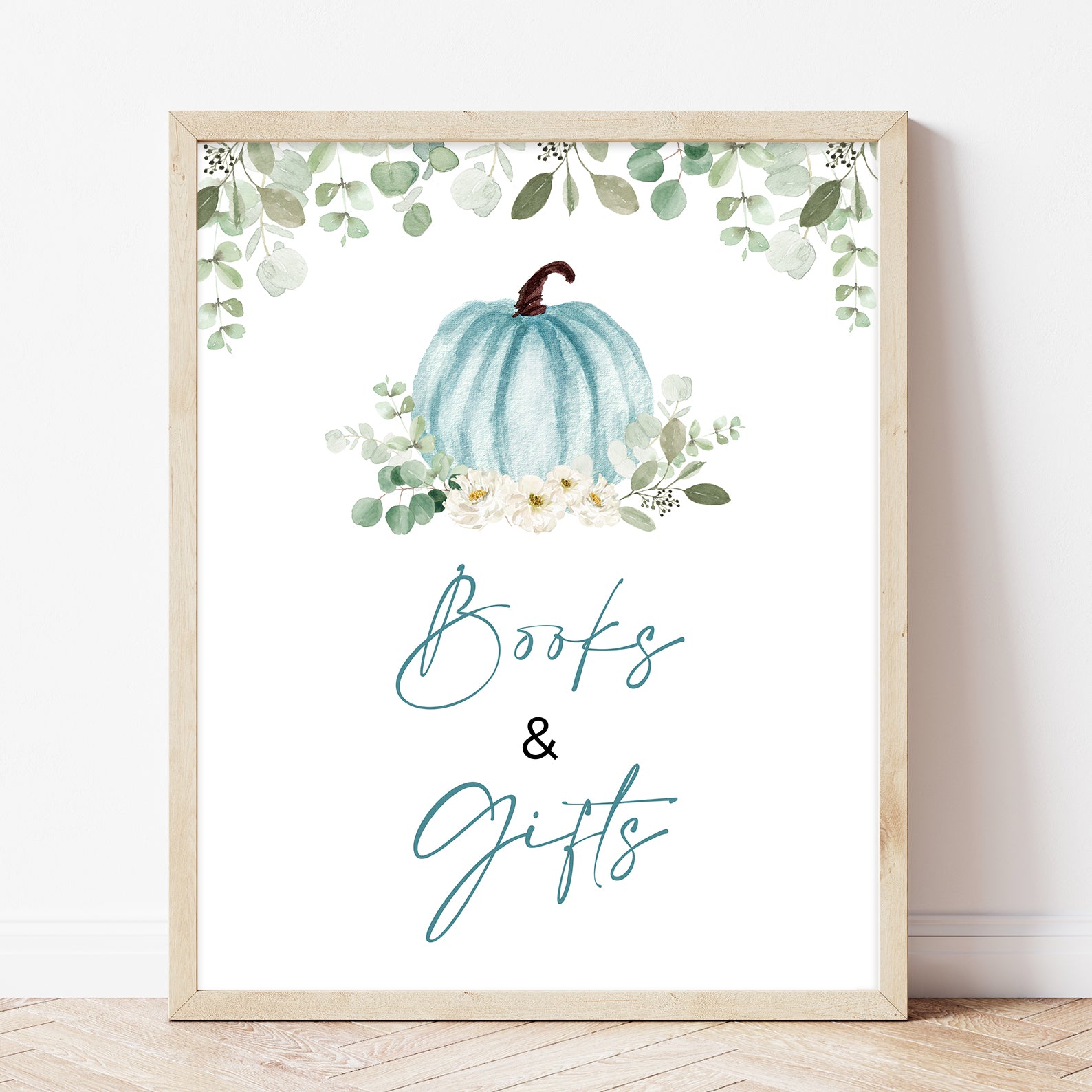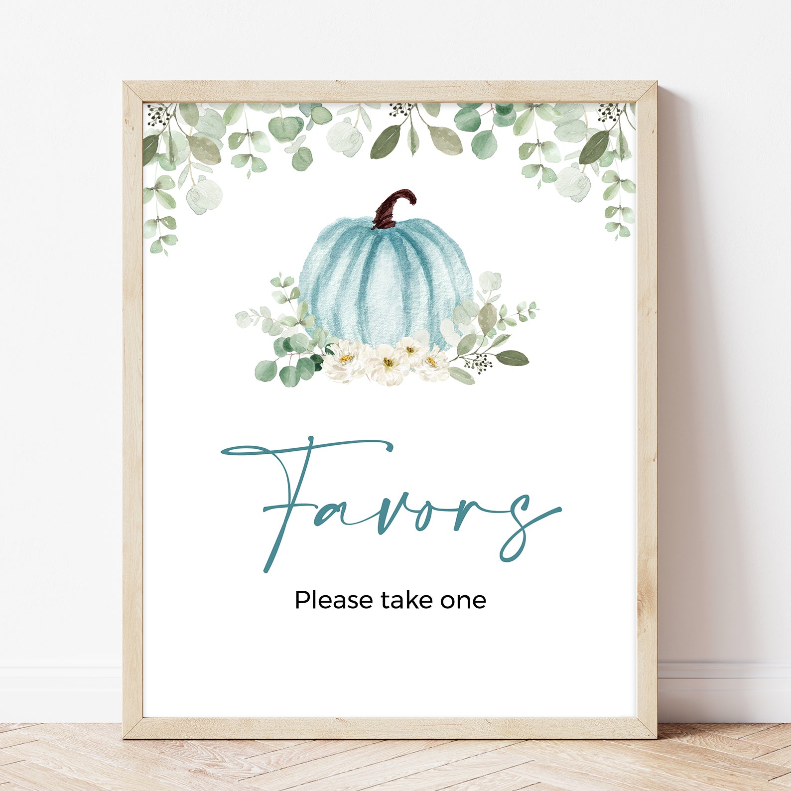 - Purchase this Blue-Green Little Pumpkin Baby Shower Table Sign Fall Theme template