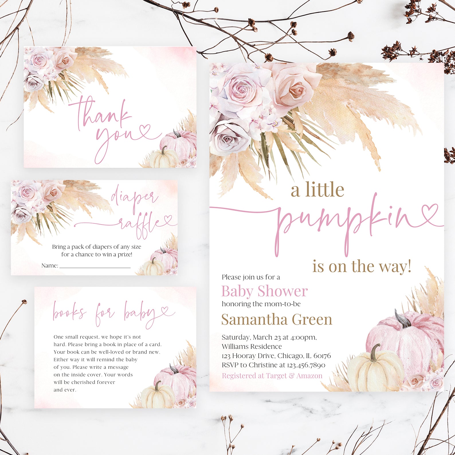 Boho Fall Baby Shower Invite Bundle: A Little Pumpkin with Pink Roses