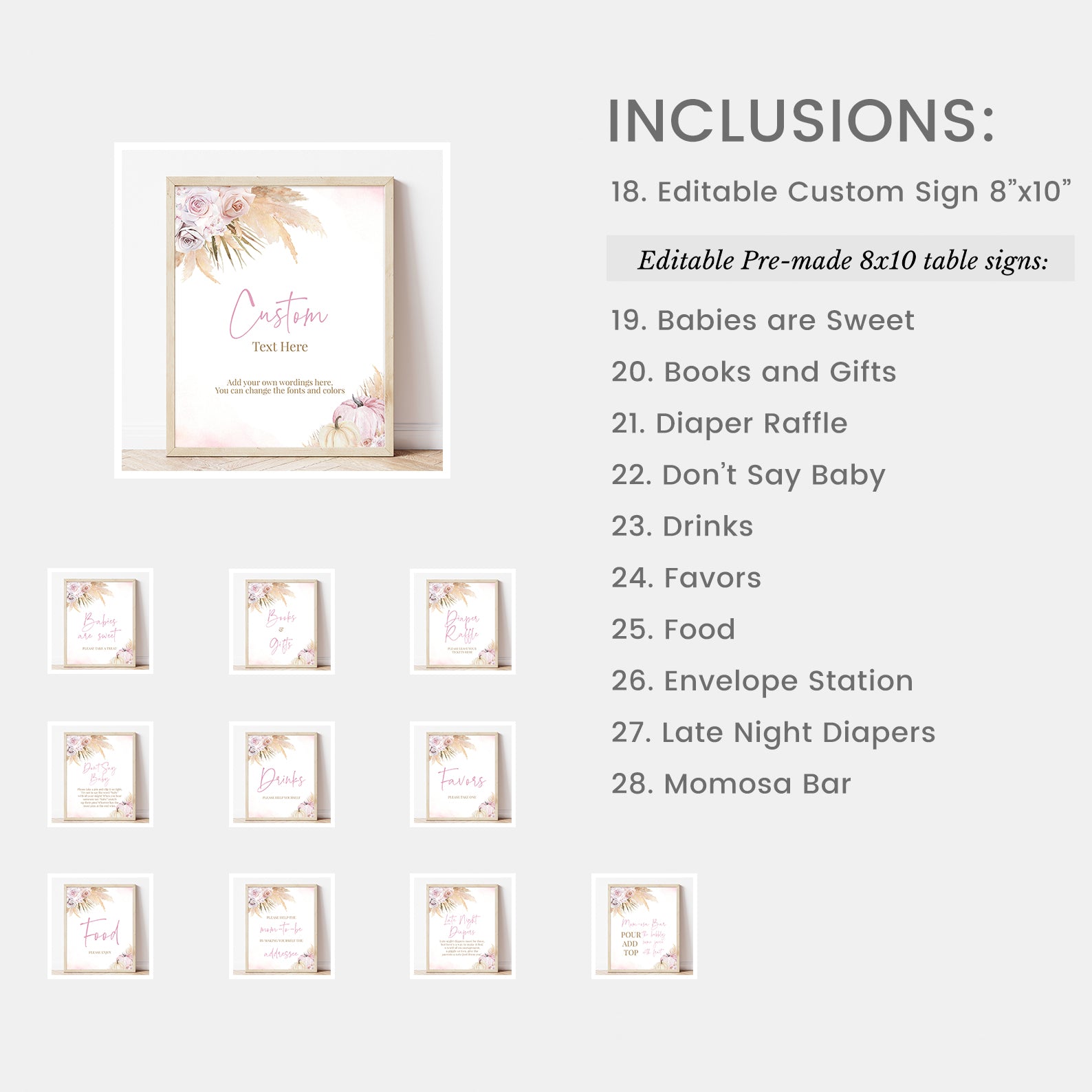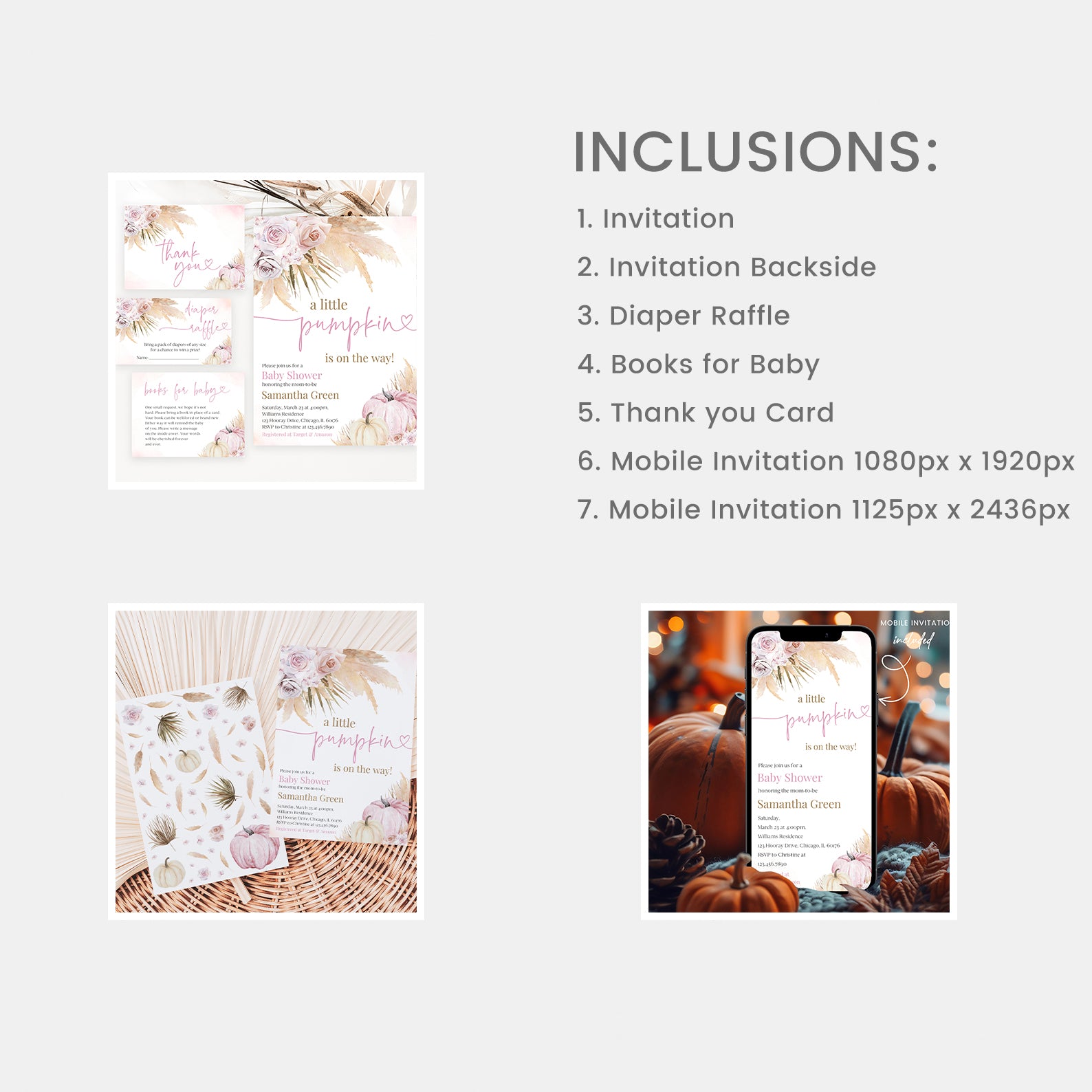 - Purchase this Boho Fall Baby Shower Mega Bundle: A Little Pumpkin with Pink Roses template