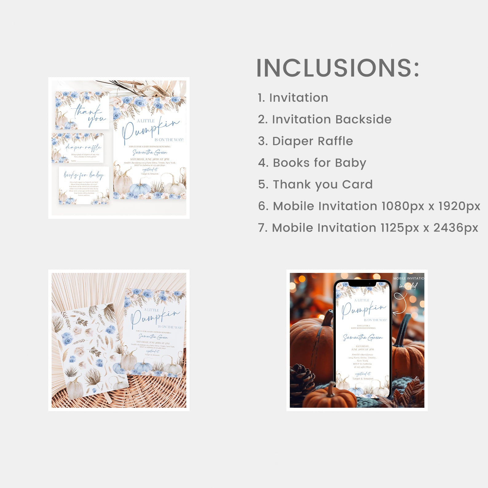 - Purchase this Boho Theme Blue Digital Mega Bundle: A Little Pumpkin on the Way template