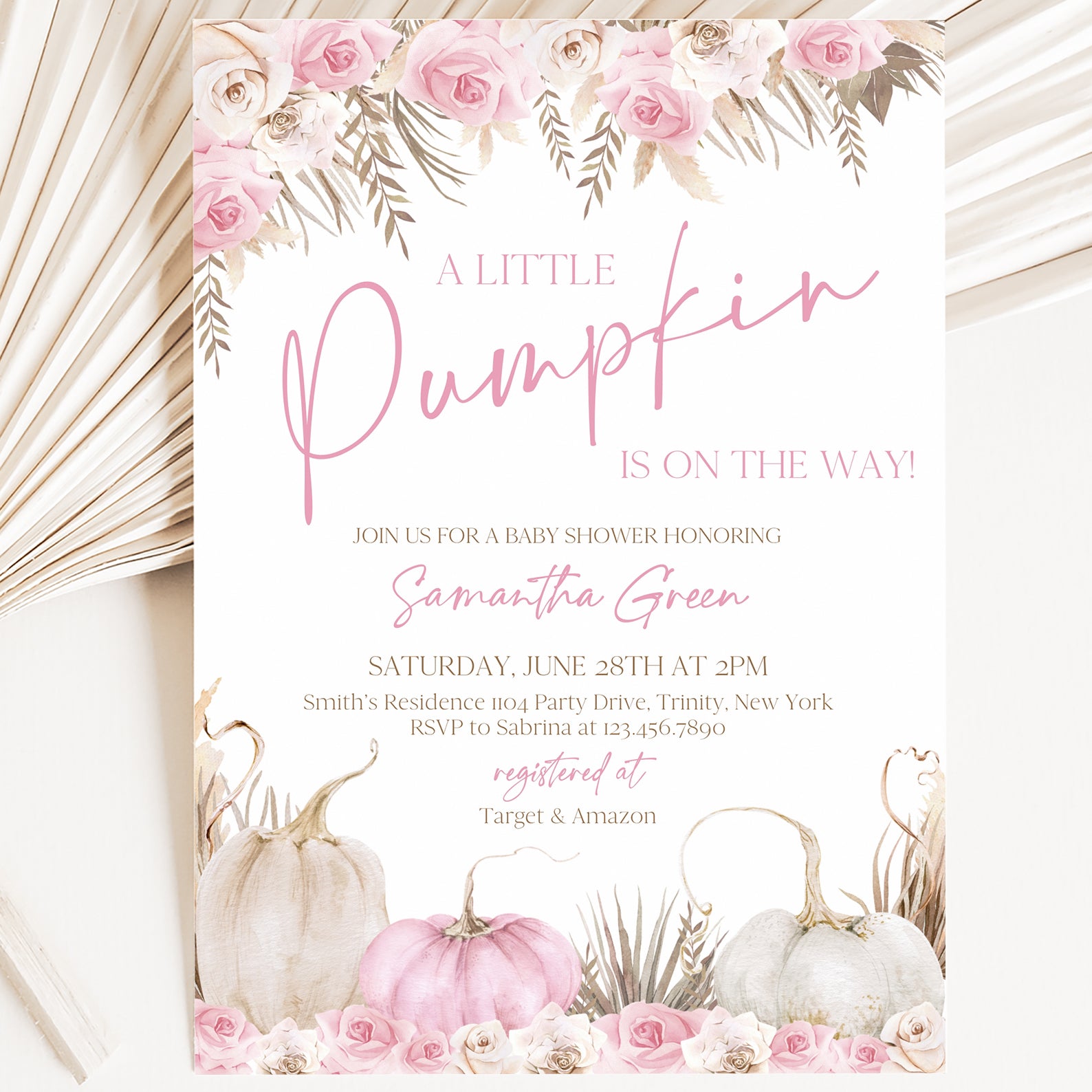 - Purchase this Boho Theme Digital Invitation: A Little Pumpkin on the Way template