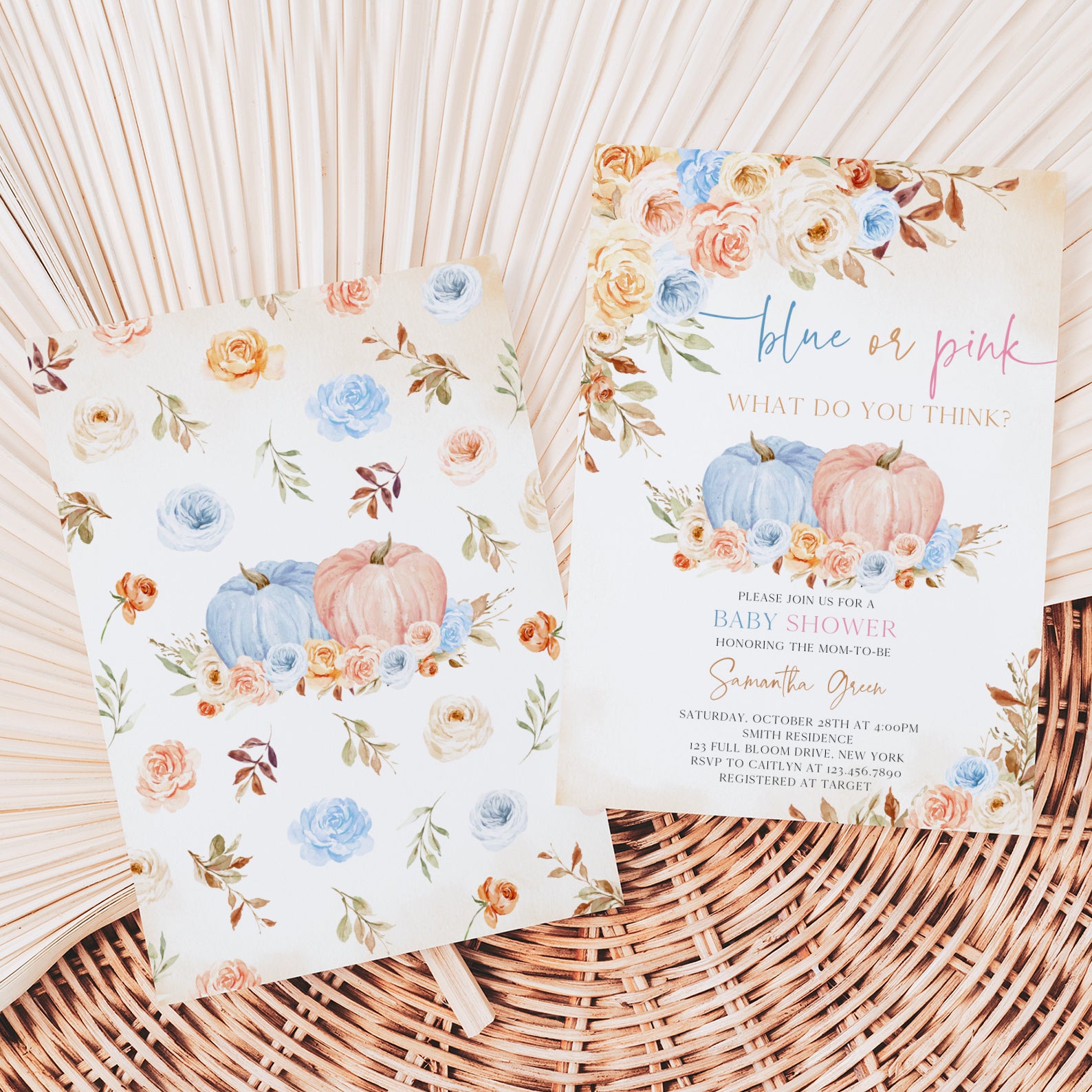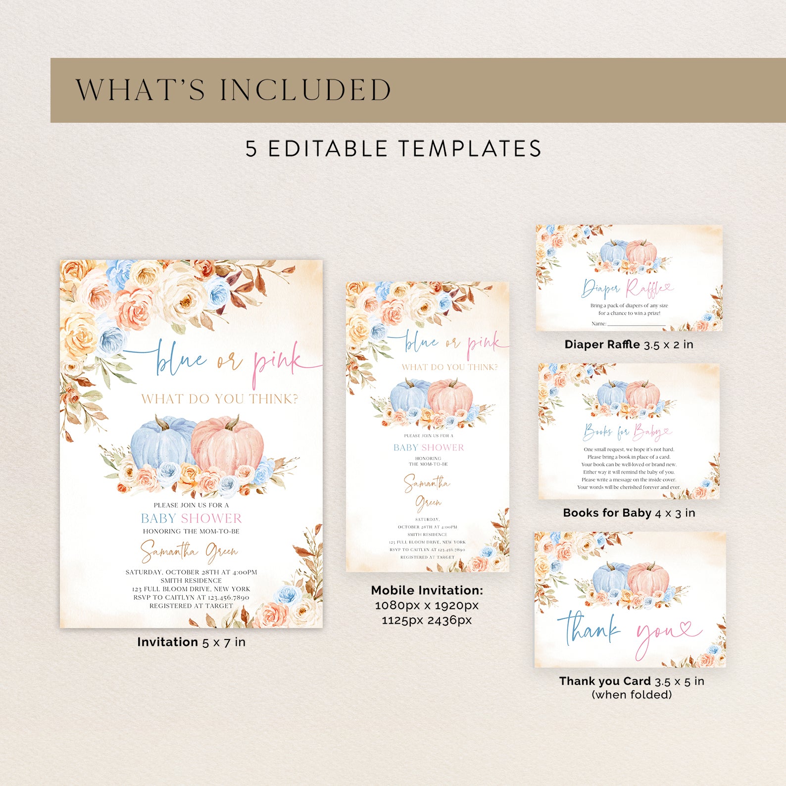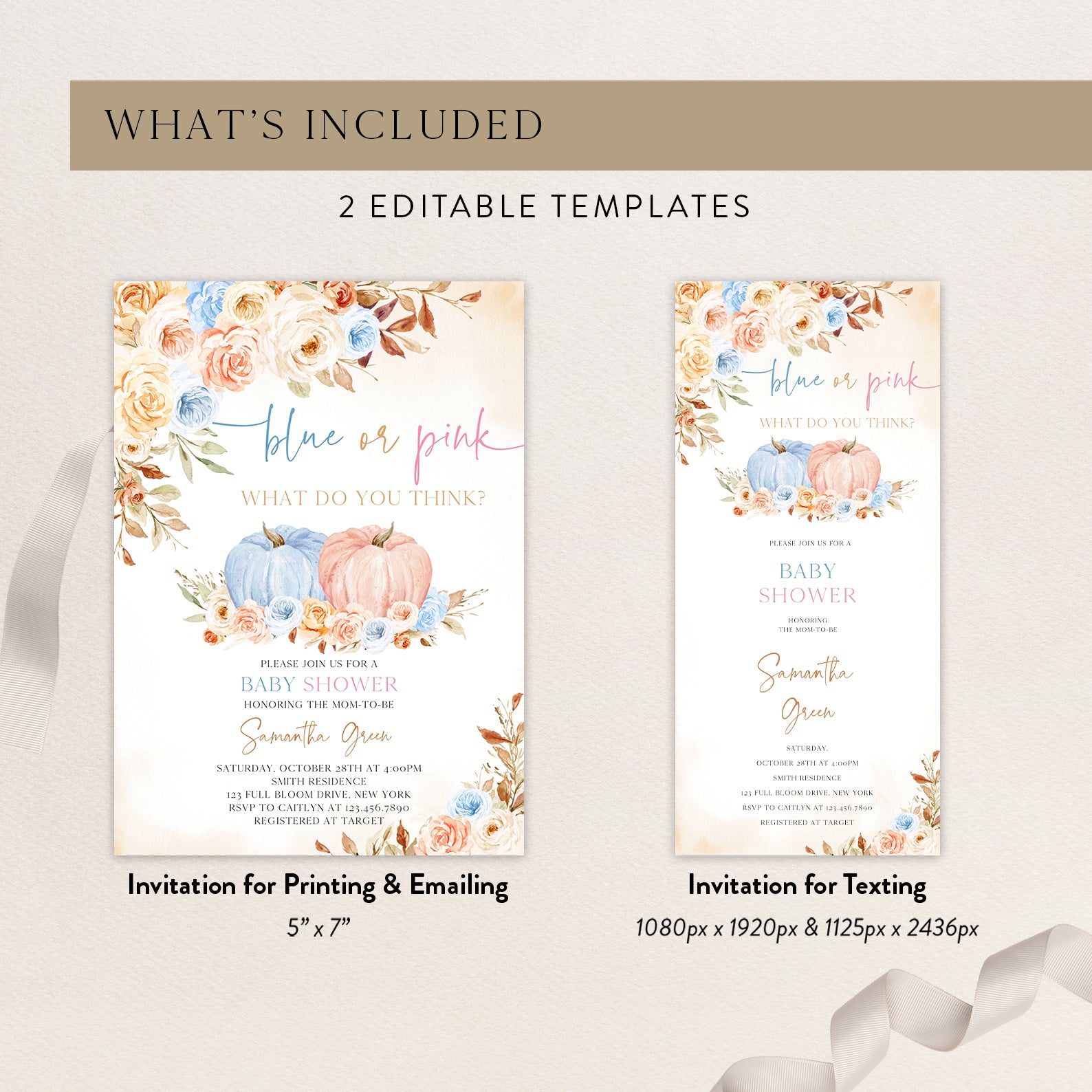 - Purchase this Charming Fall Baby Shower Invitation Bundle with Roses & Pumpkins template