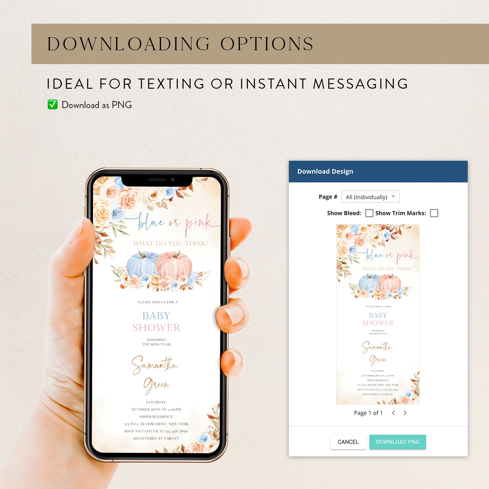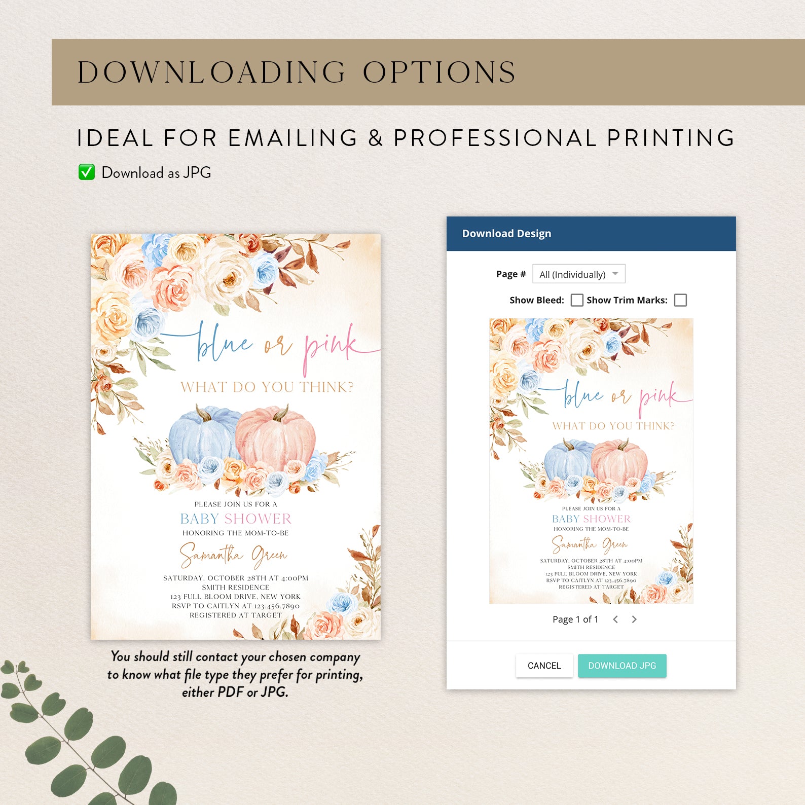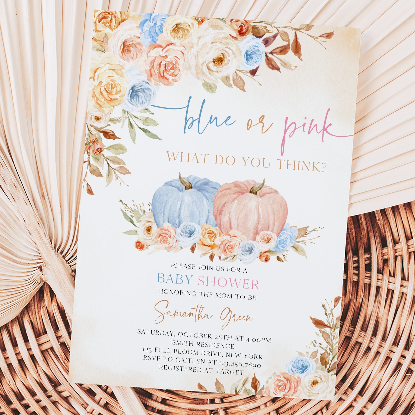 - Purchase this Charming Fall Baby Shower Invitation Bundle with Roses & Pumpkins template