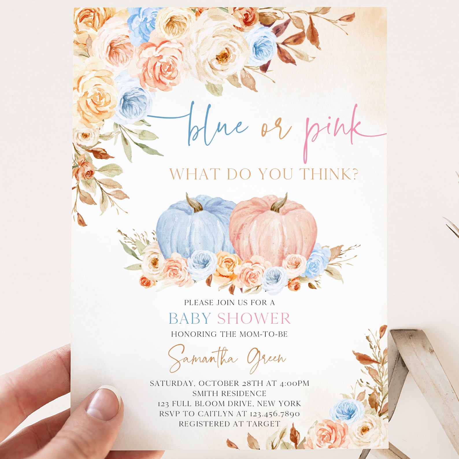- Purchase this Charming Fall Baby Shower Invitation with Roses & Pumpkins template