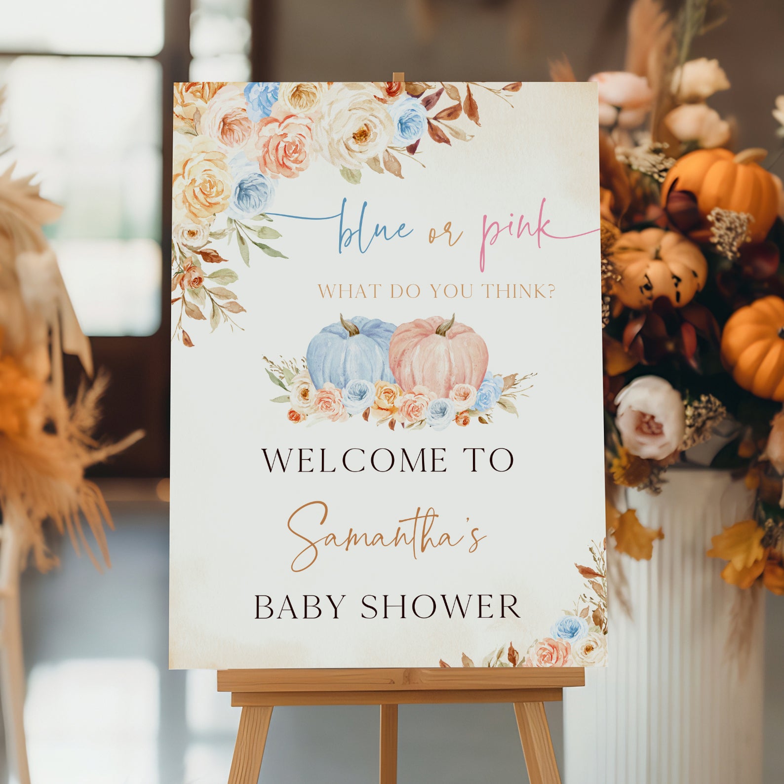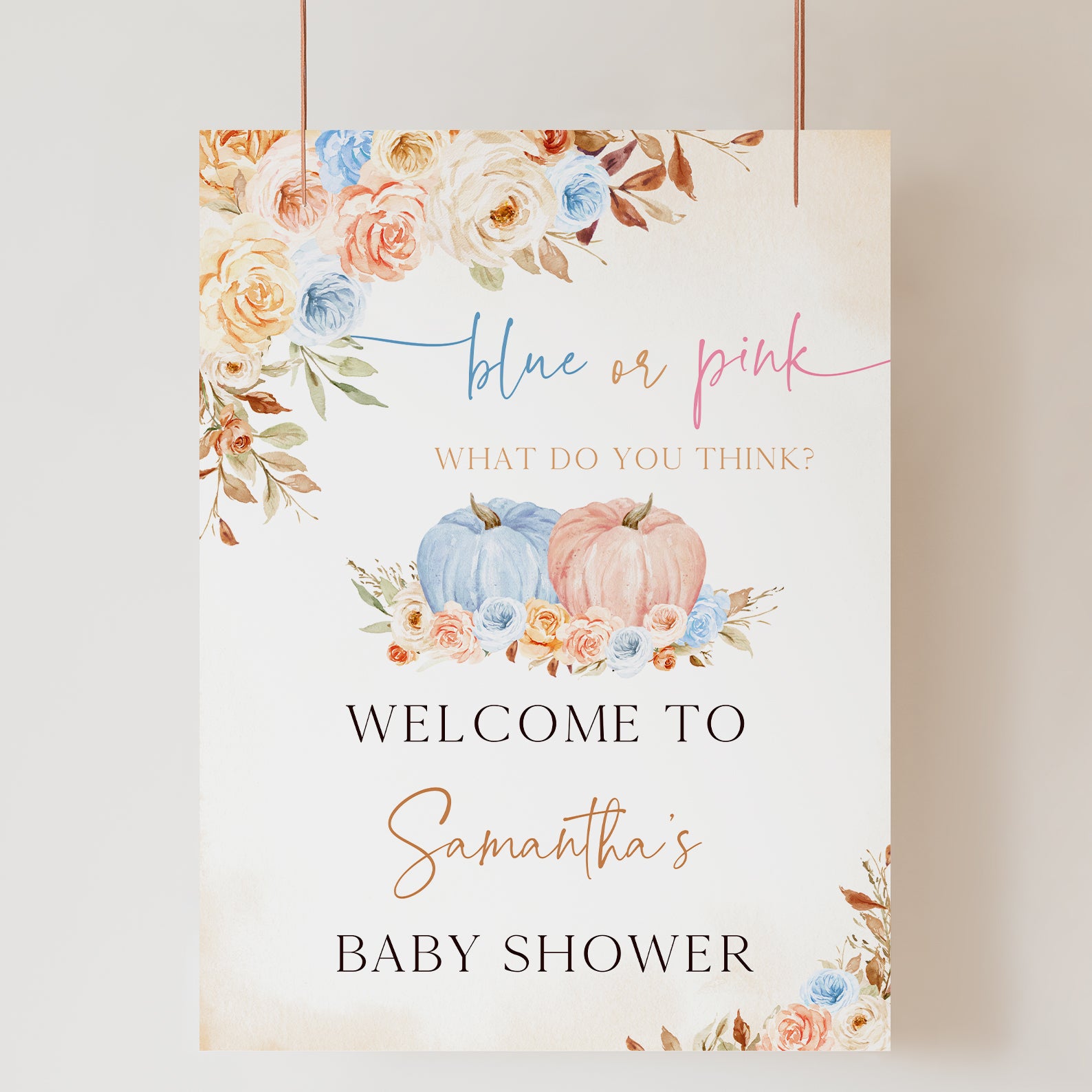 - Purchase this Charming Fall Baby Shower Welcome Sign with Roses & Pumpkins template