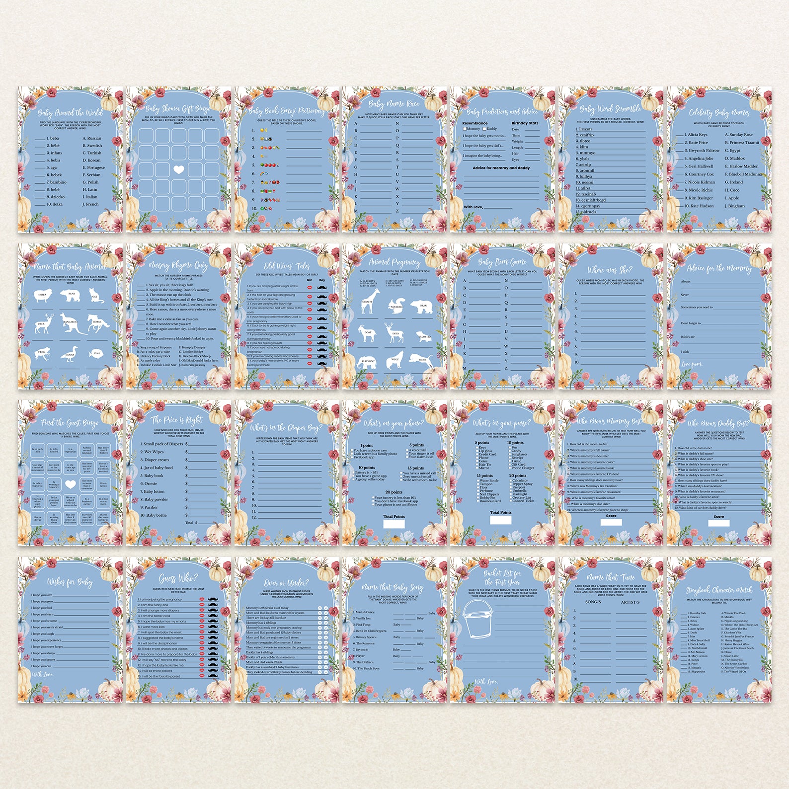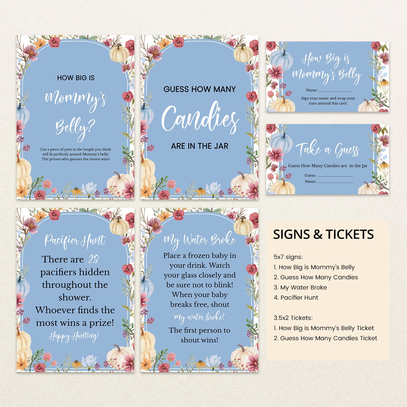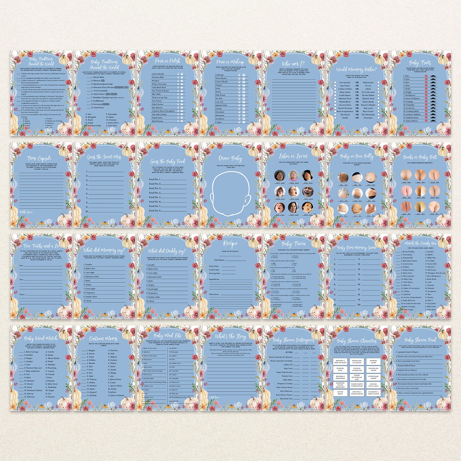 Fall Baby Shower Blue Game Bundle: Pumpkin & Wildflowers Arch