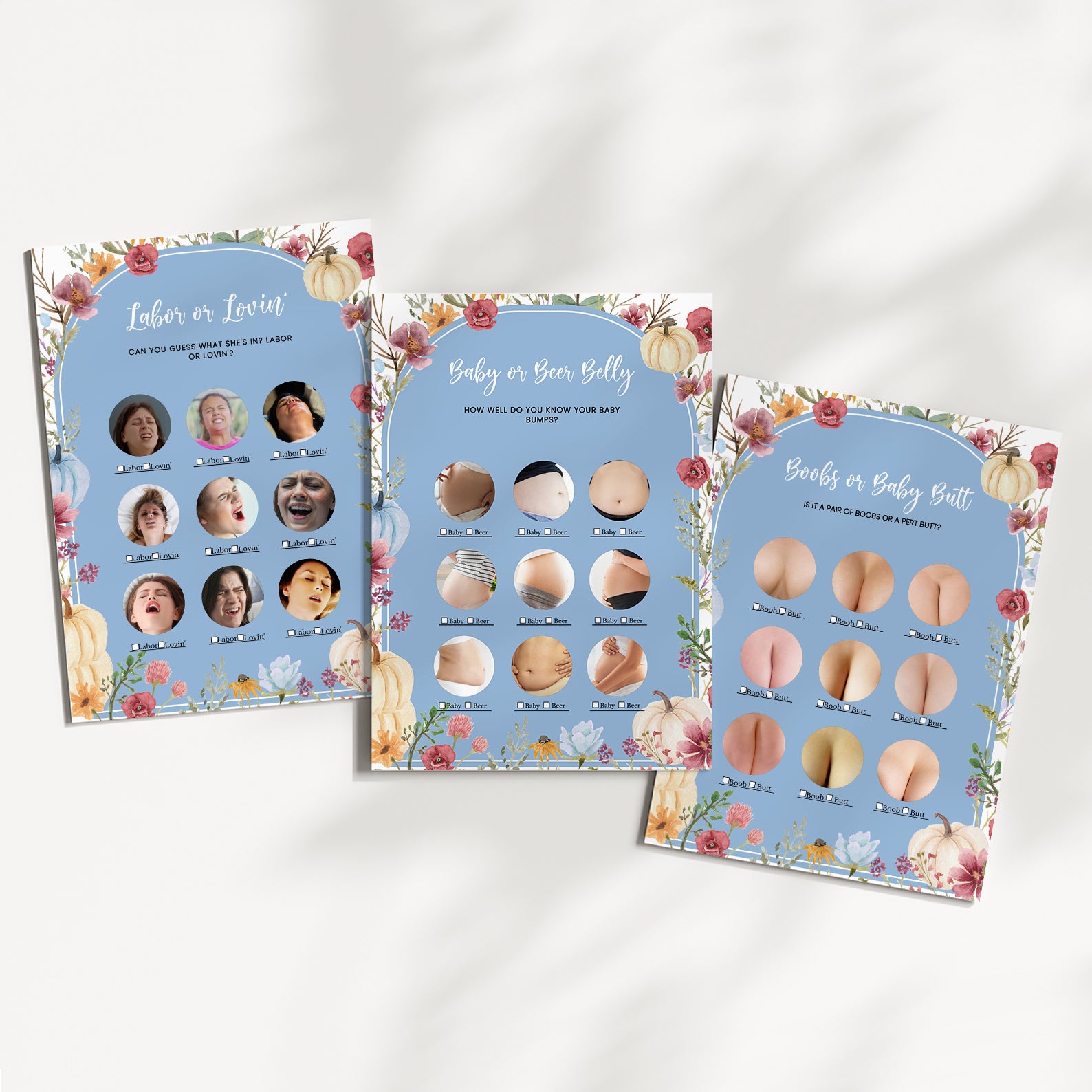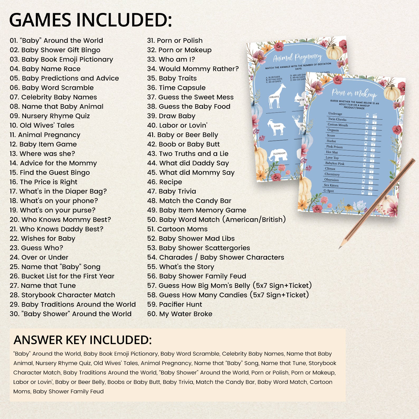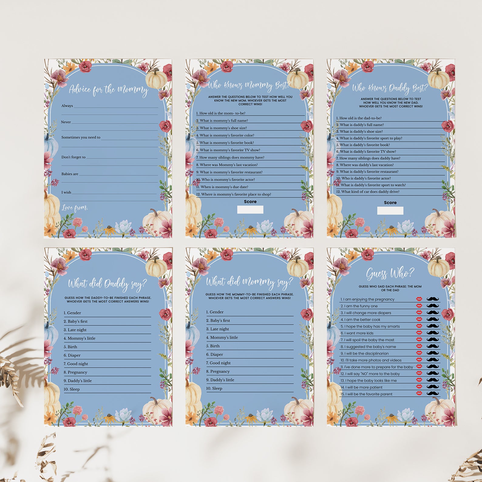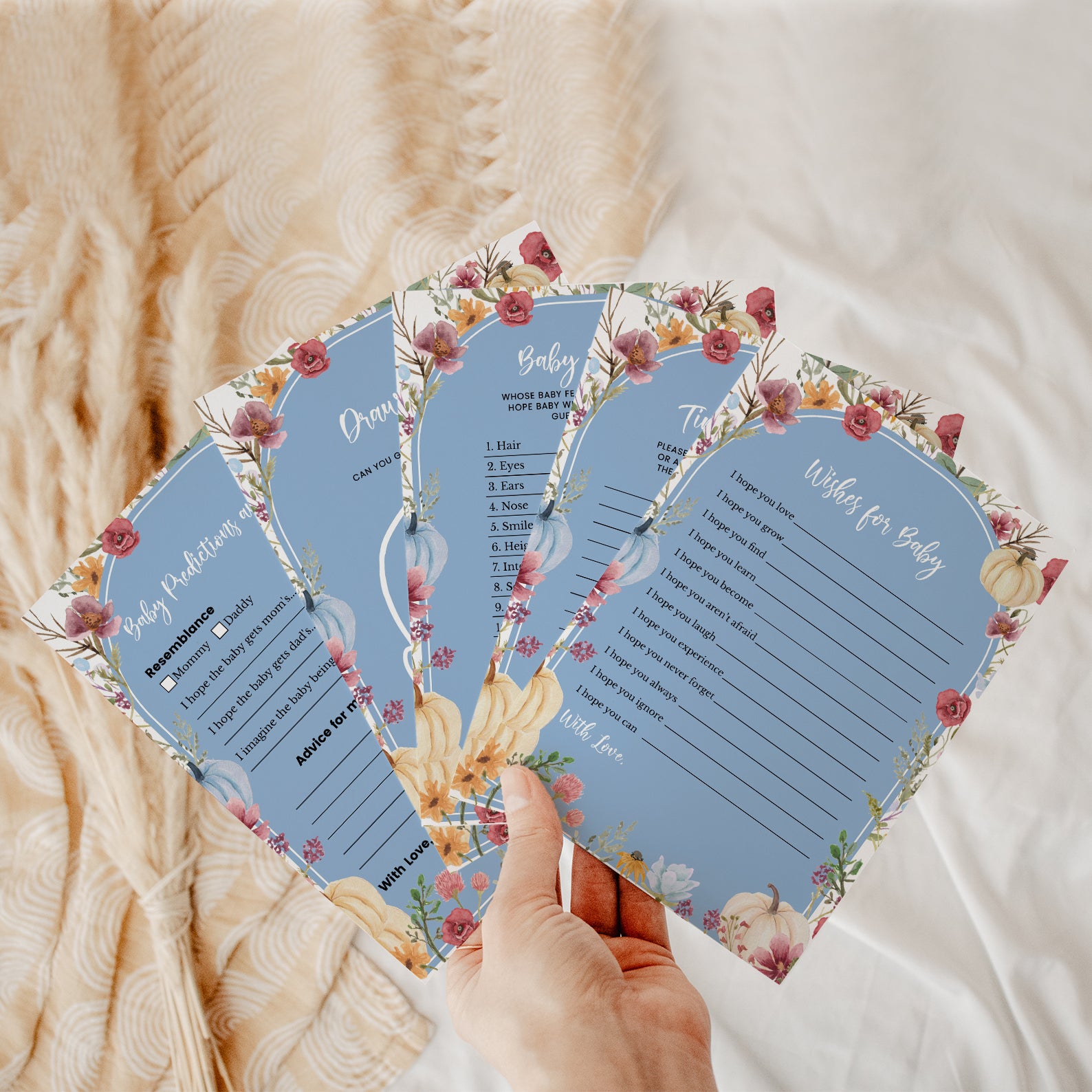 Fall Baby Shower Blue Game Bundle: Pumpkin & Wildflowers Arch