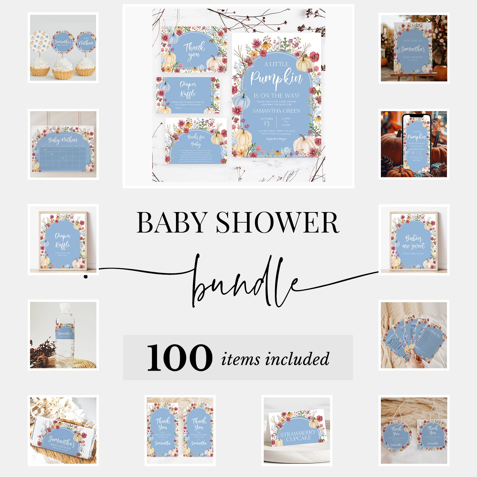Fall Baby Shower Blue Mega Bundle: Pumpkin & Wildflowers Arch