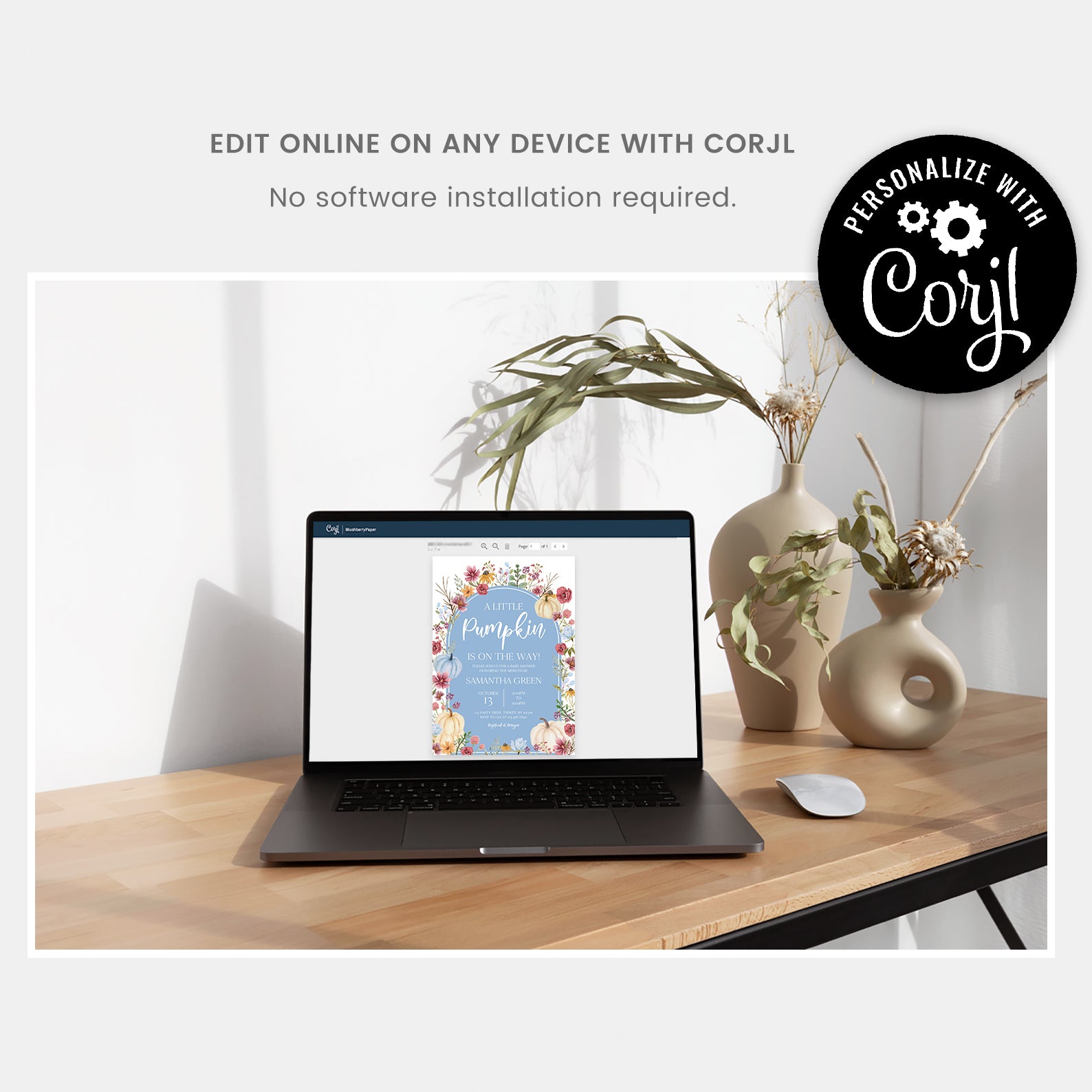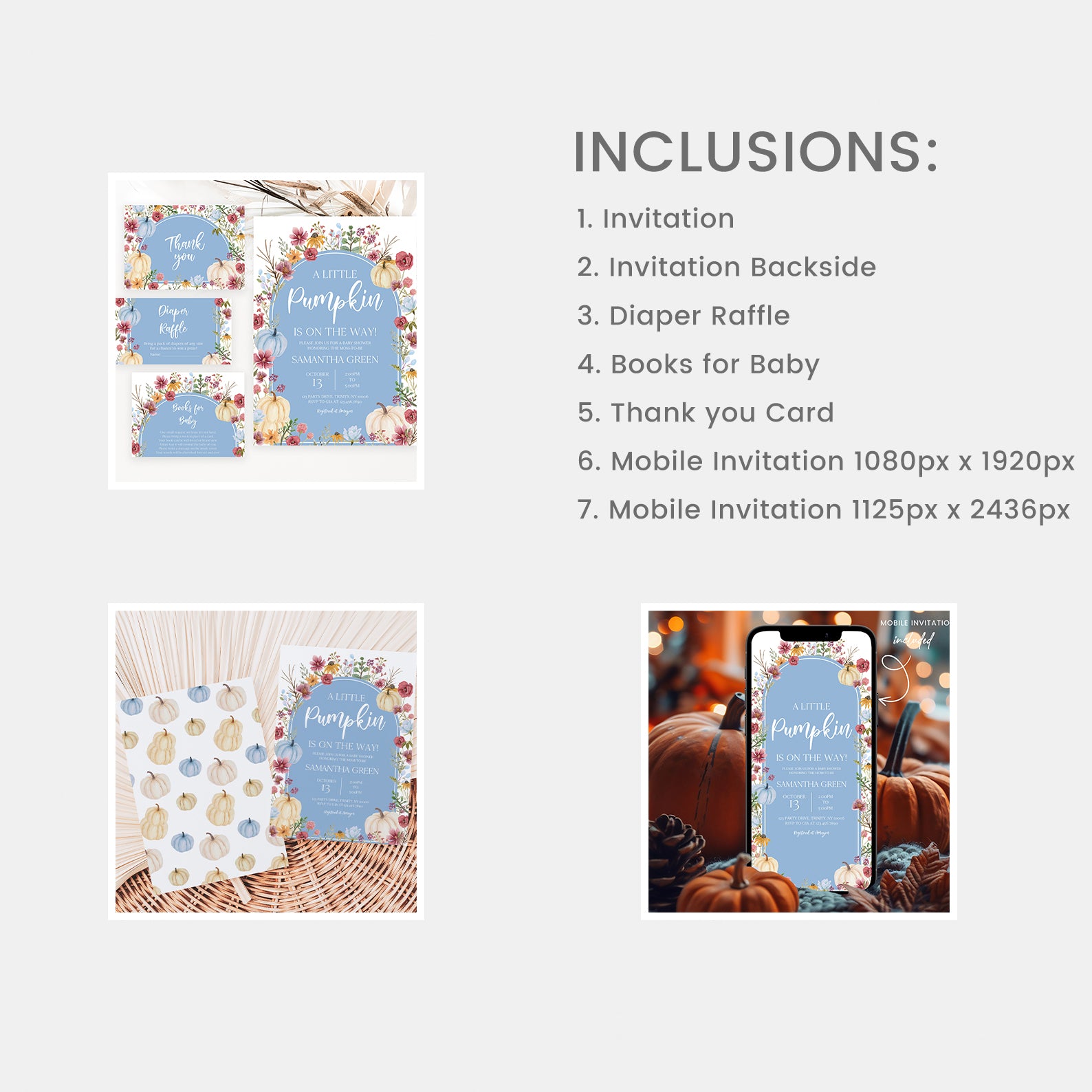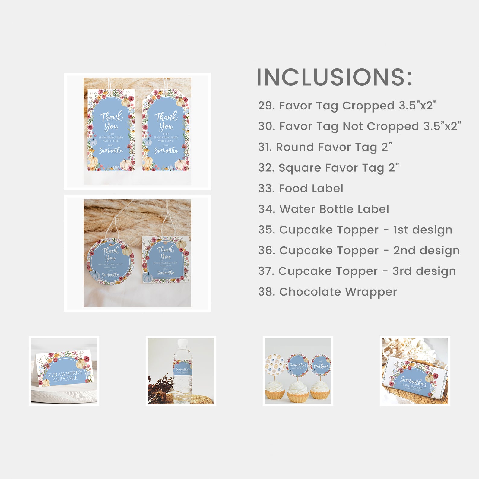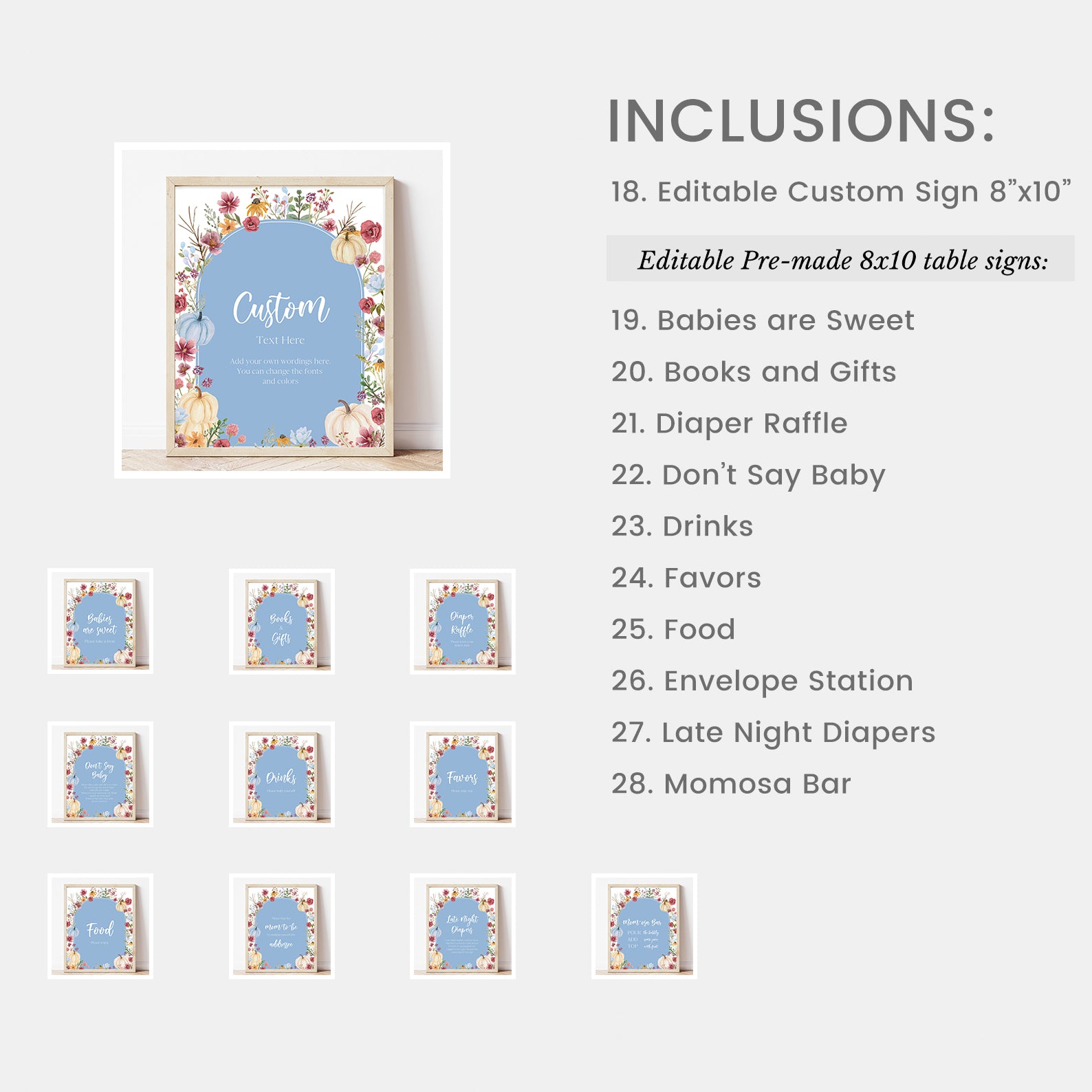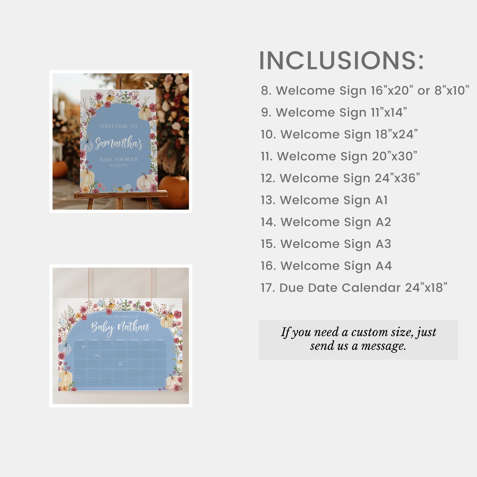 - Purchase this Fall Baby Shower Blue Mega Bundle: Pumpkin & Wildflowers Arch template