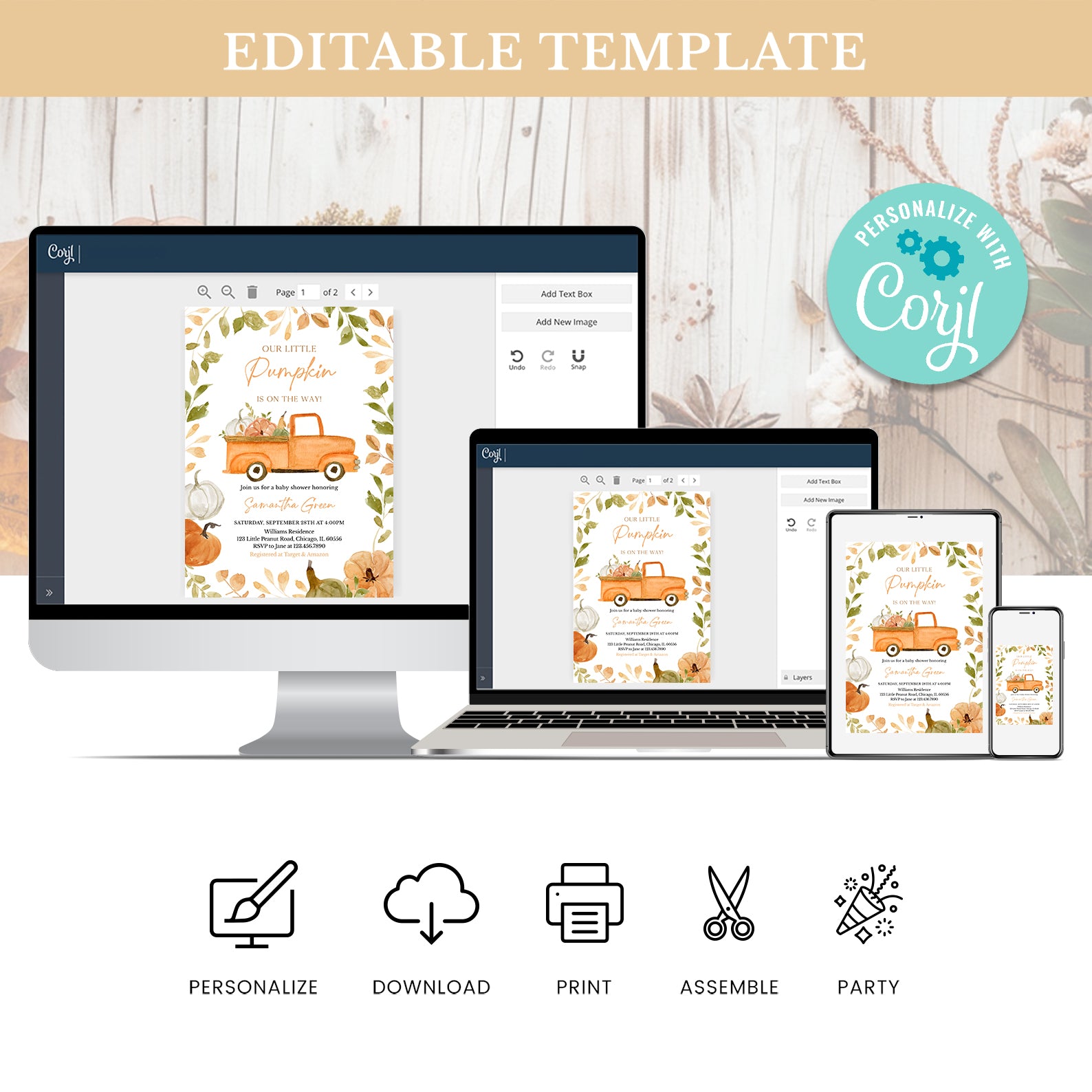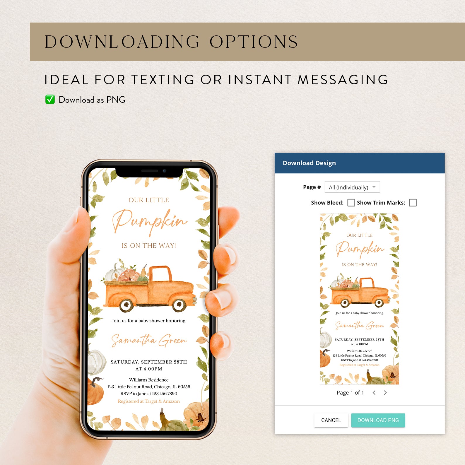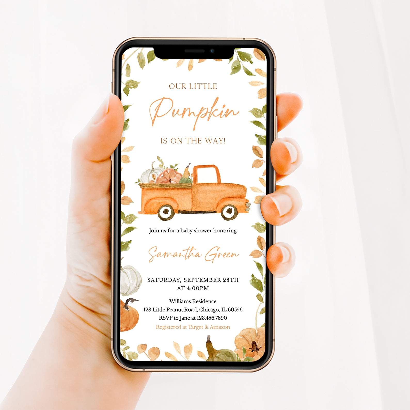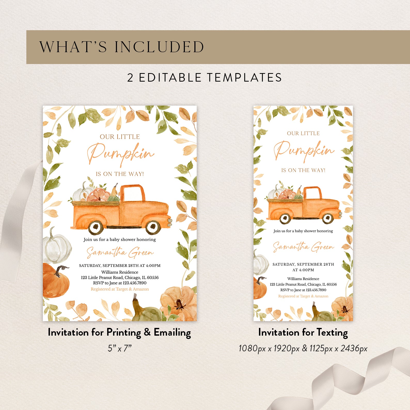 - Purchase this Fall Baby Shower Digital Invite Bundle: Little Pumpkin & Truck template