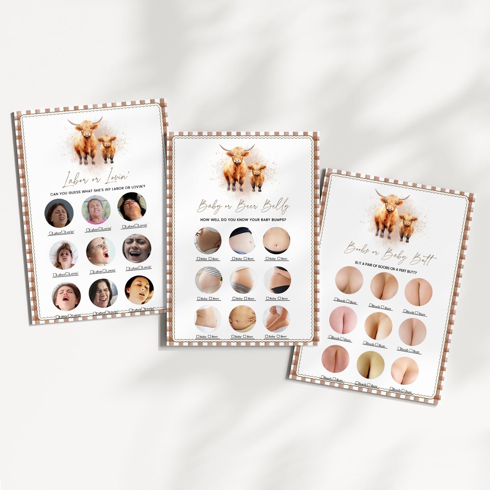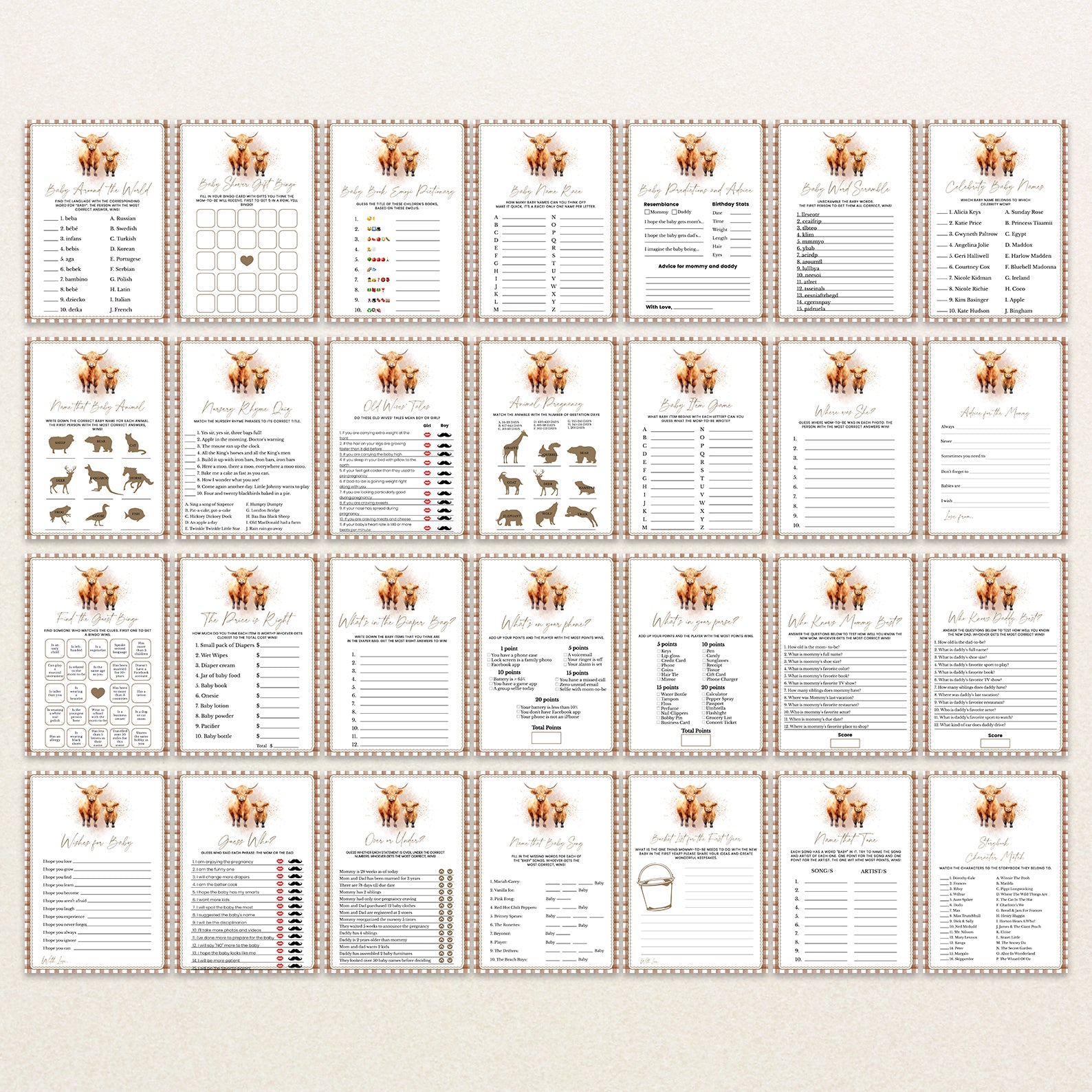 Fall Baby Shower Game Bundle: Highland Cows & Brown Plaid