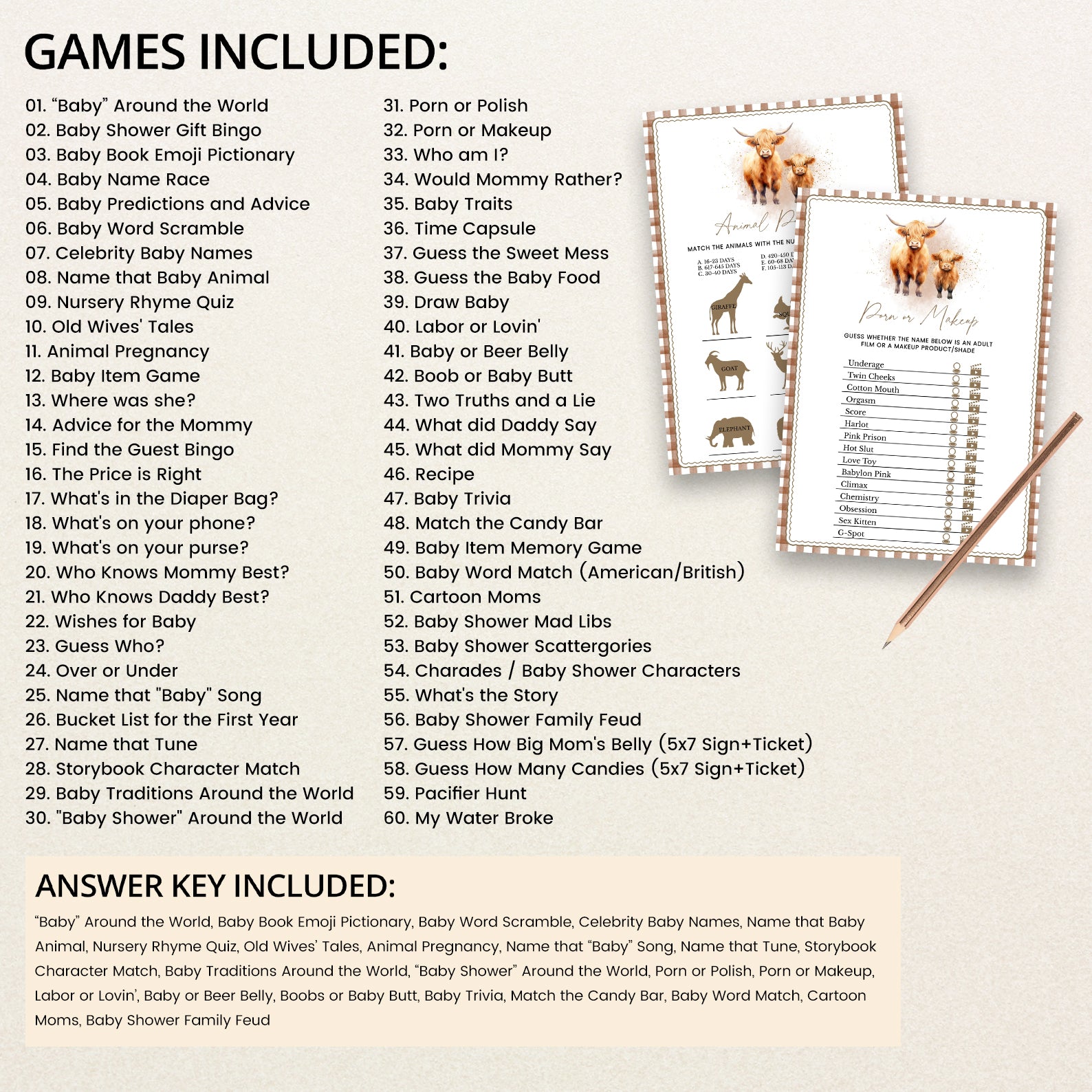 - Purchase this Fall Baby Shower Game Bundle: Highland Cows & Brown Plaid template