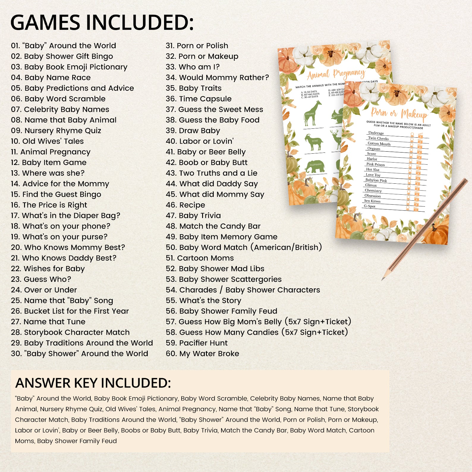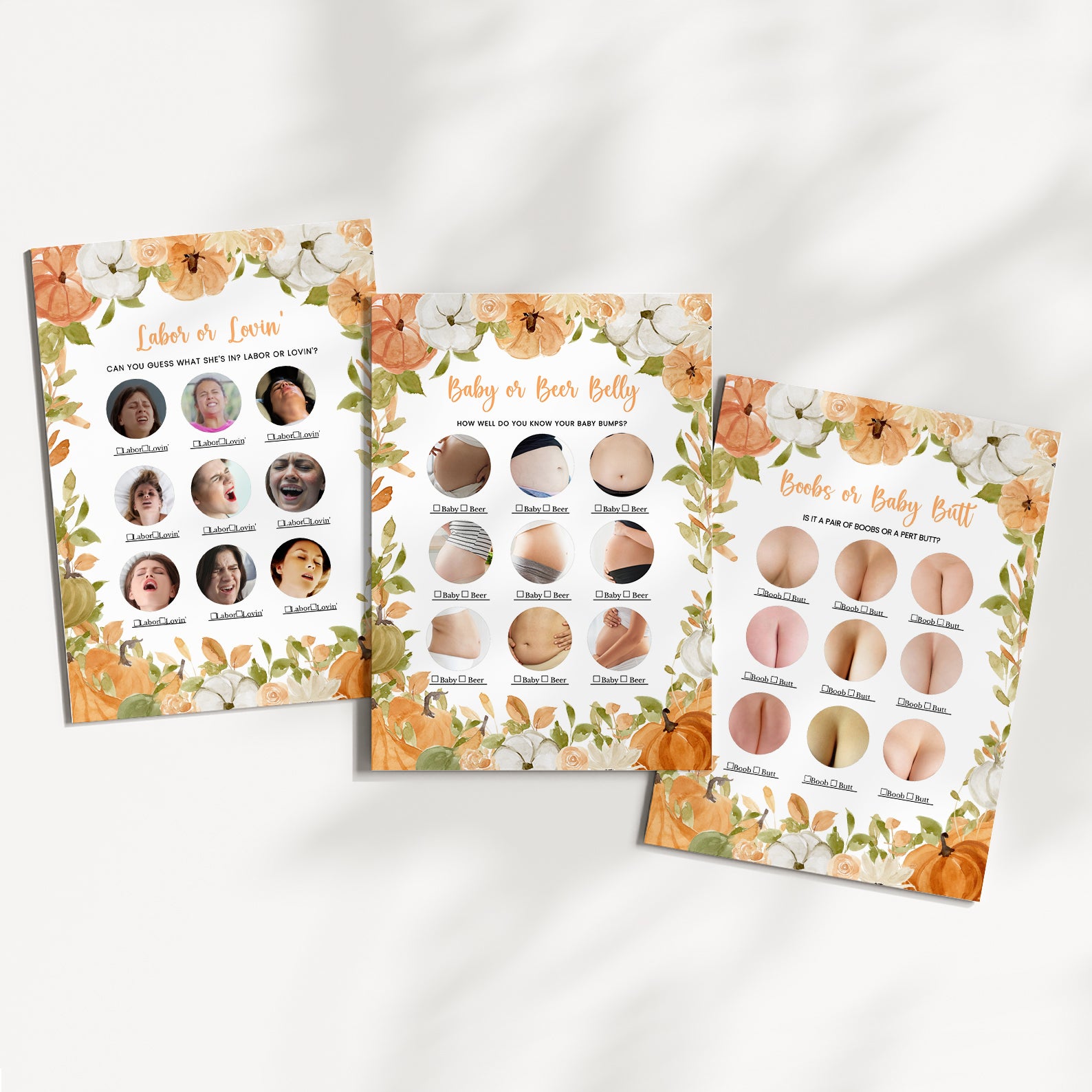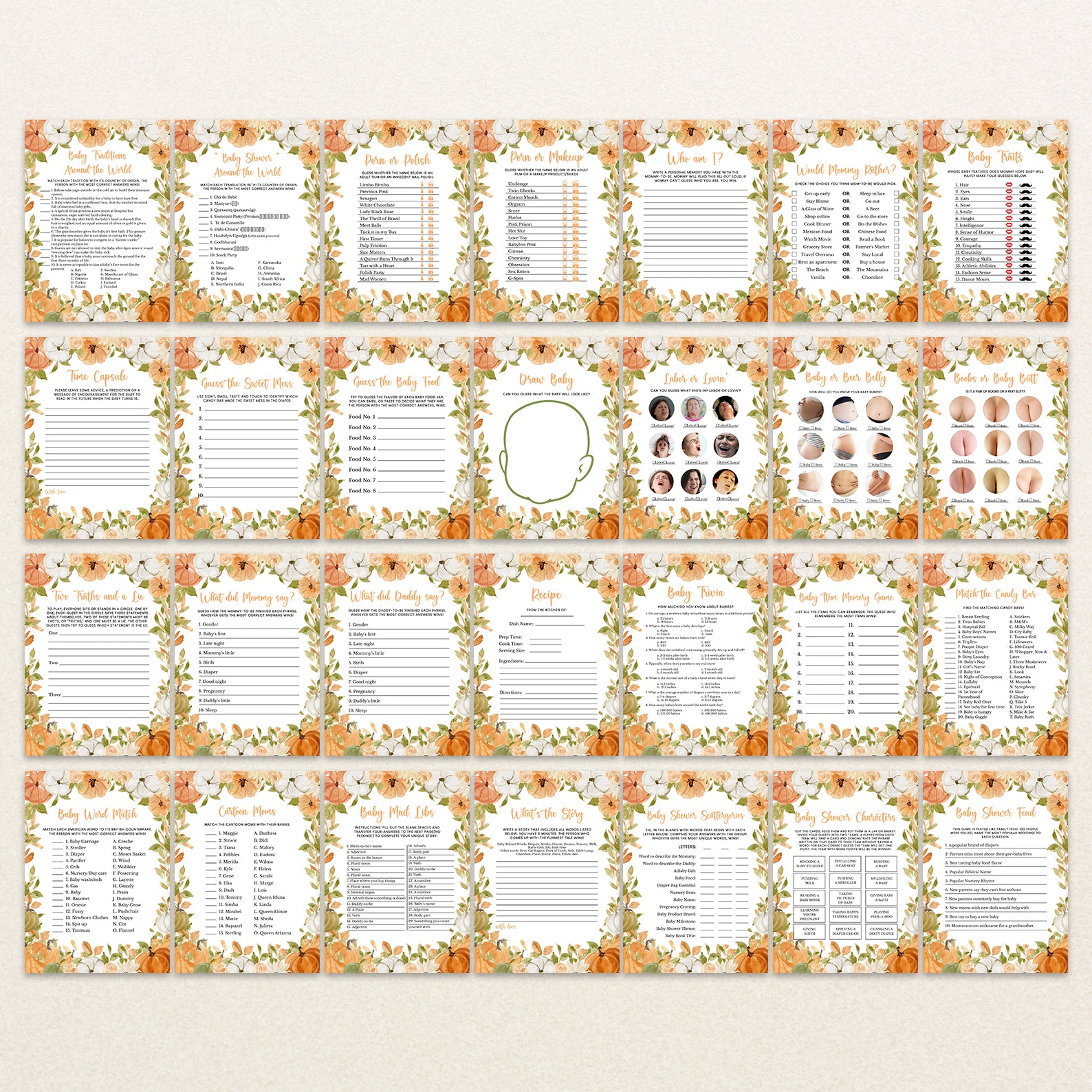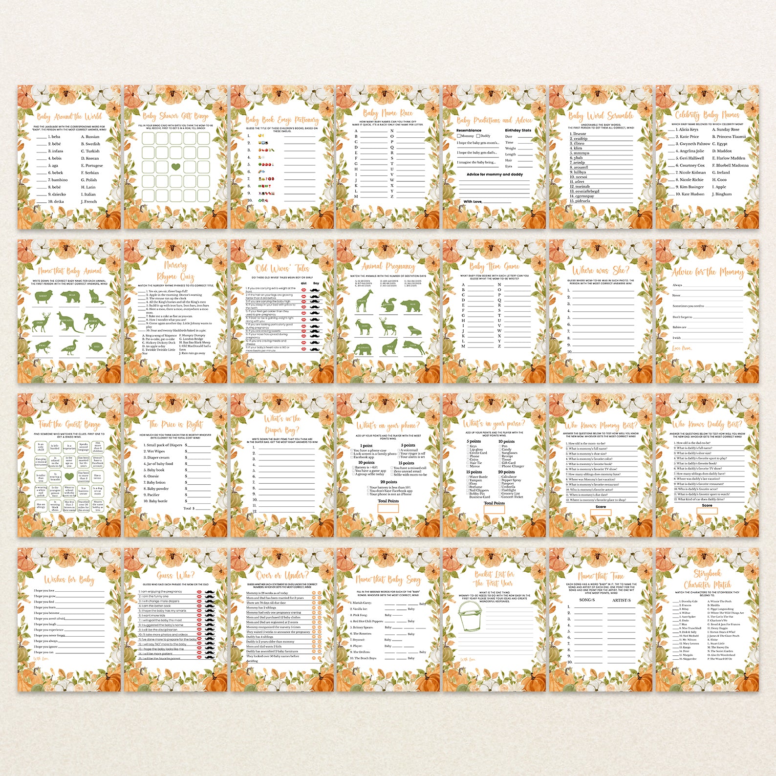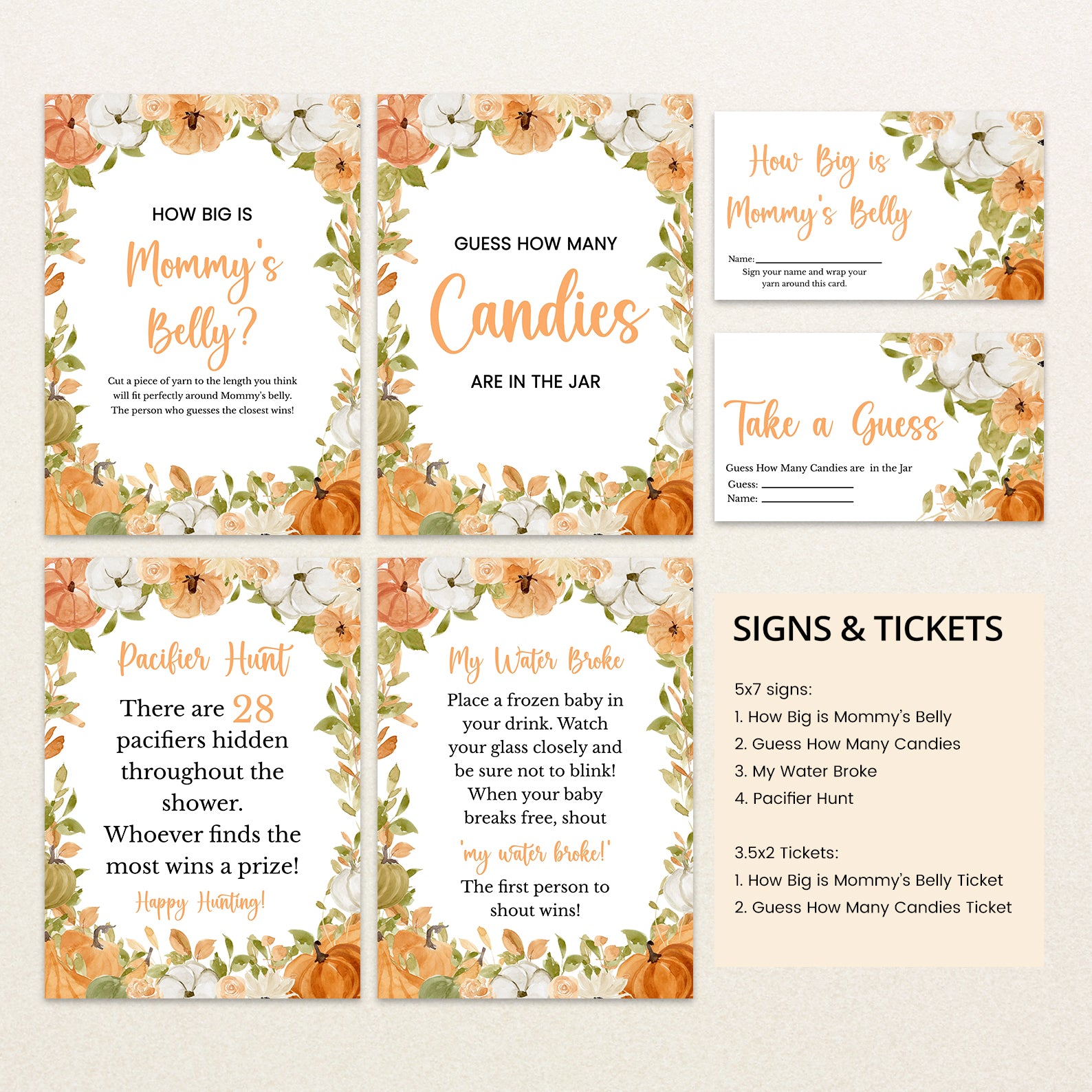 Fall Baby Shower Game Bundle: Little Pumpkin with Pumpkin Border