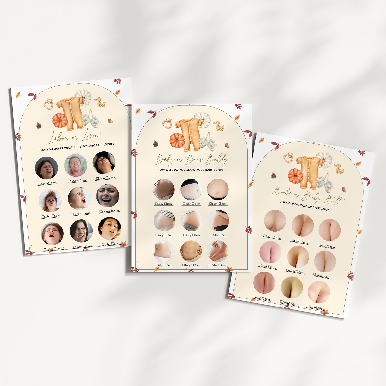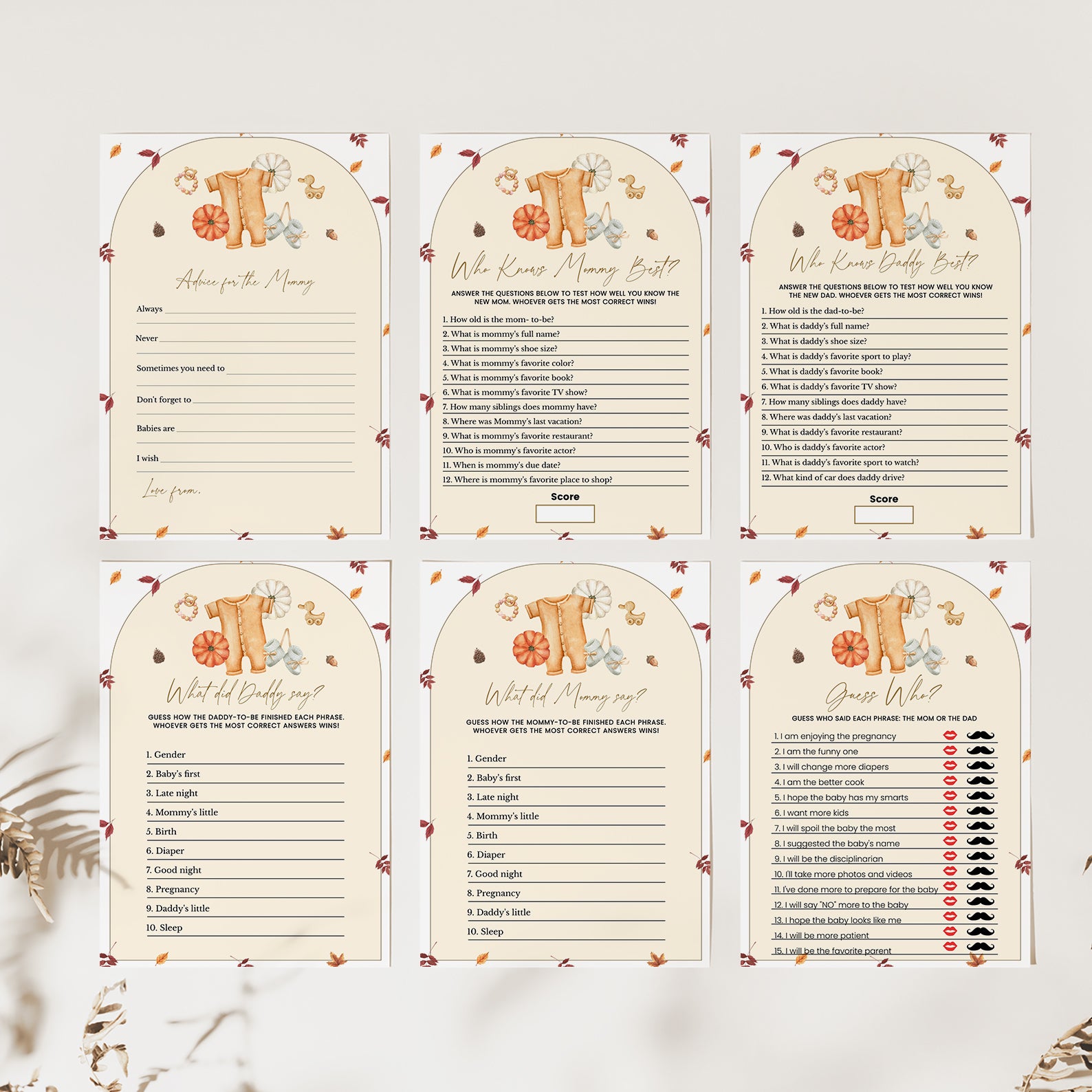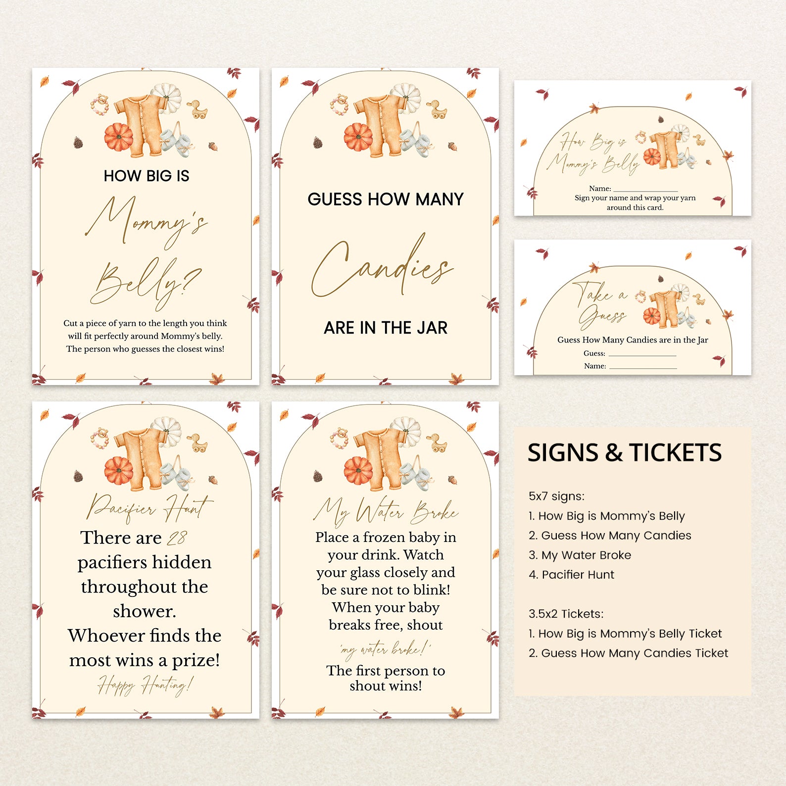 - Purchase this Fall Baby Shower Game Bundle: Orange Baby Suit & Pumpkins template