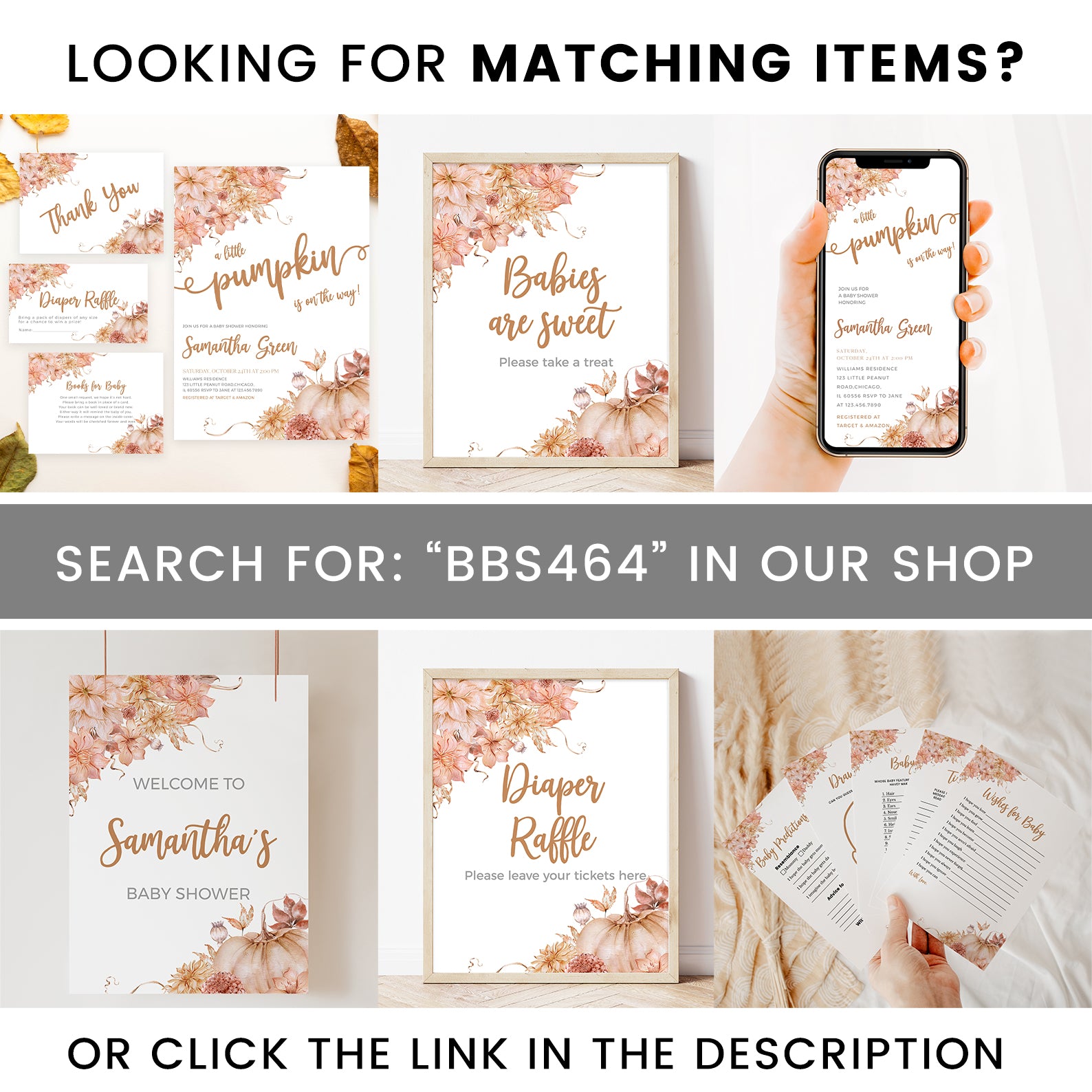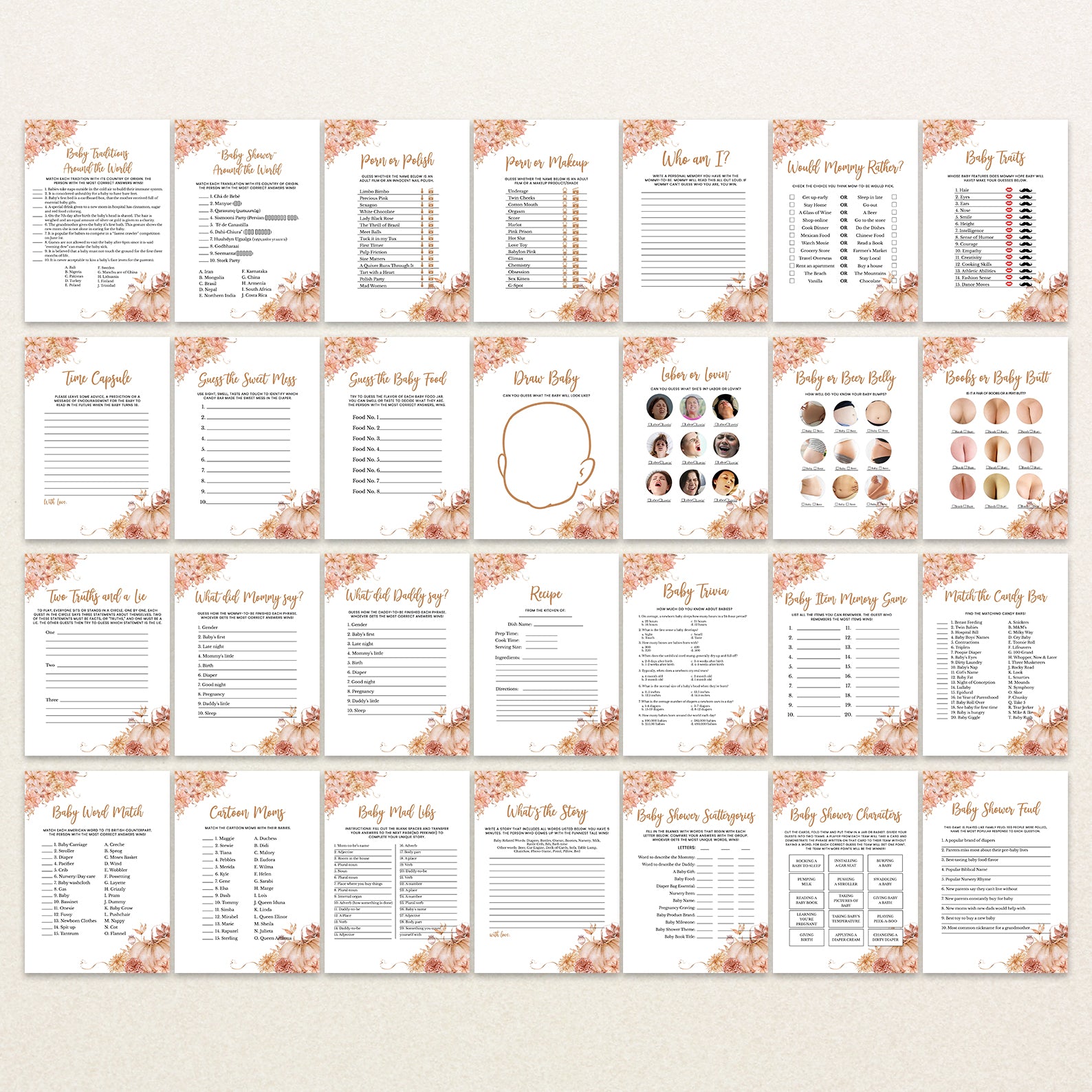 - Purchase this Fall Baby Shower Game Bundle: Pumpkin with Floral Border Design template