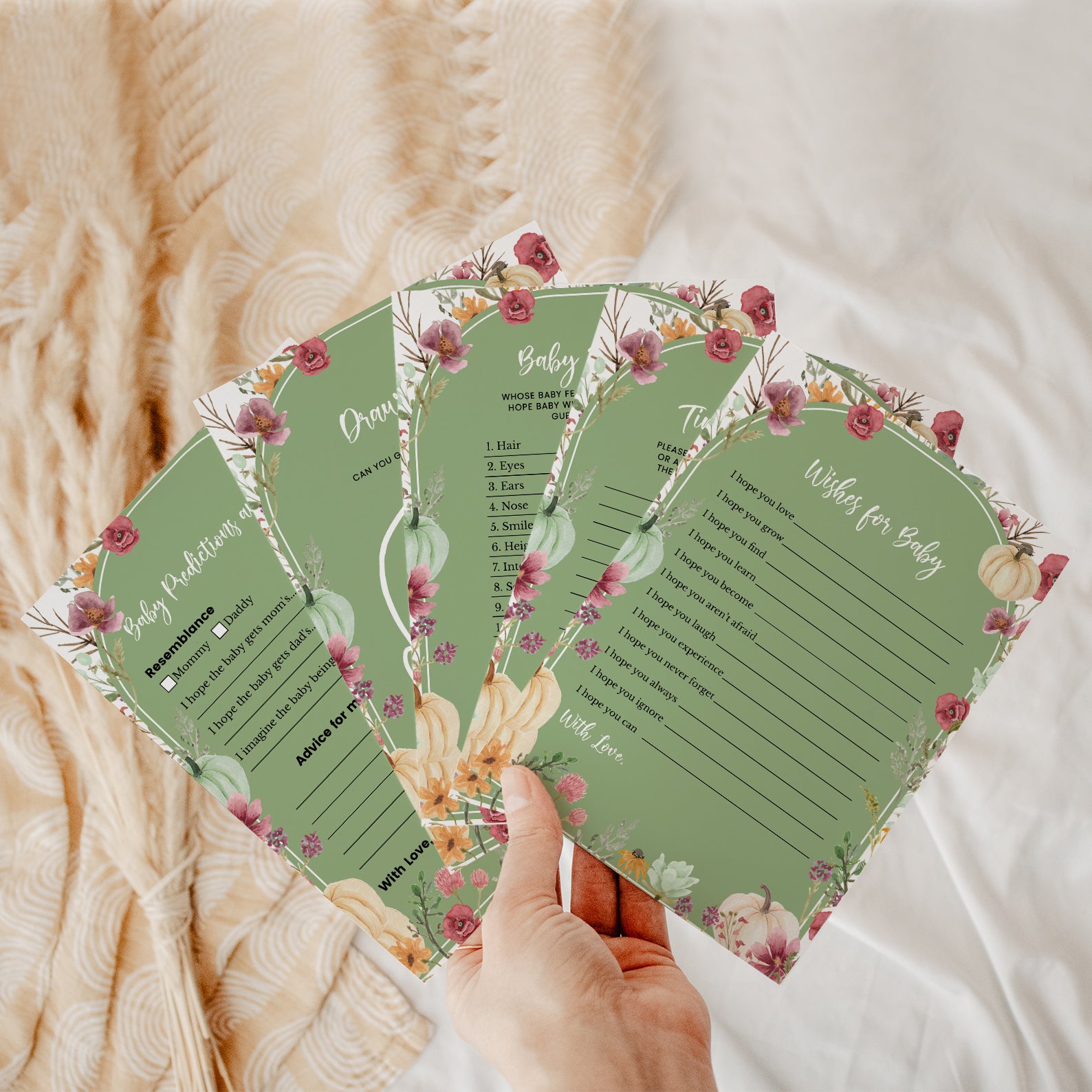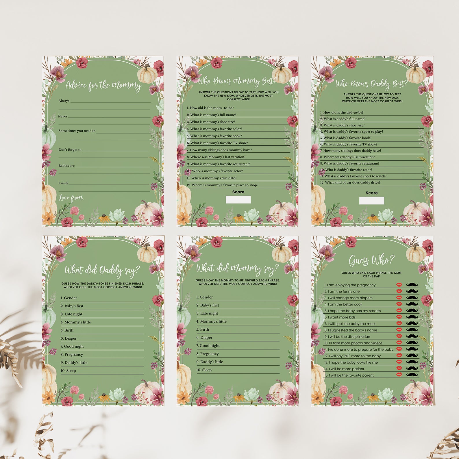 - Purchase this Fall Baby Shower Green Game Bundle: Pumpkin & Wildflowers Arch template